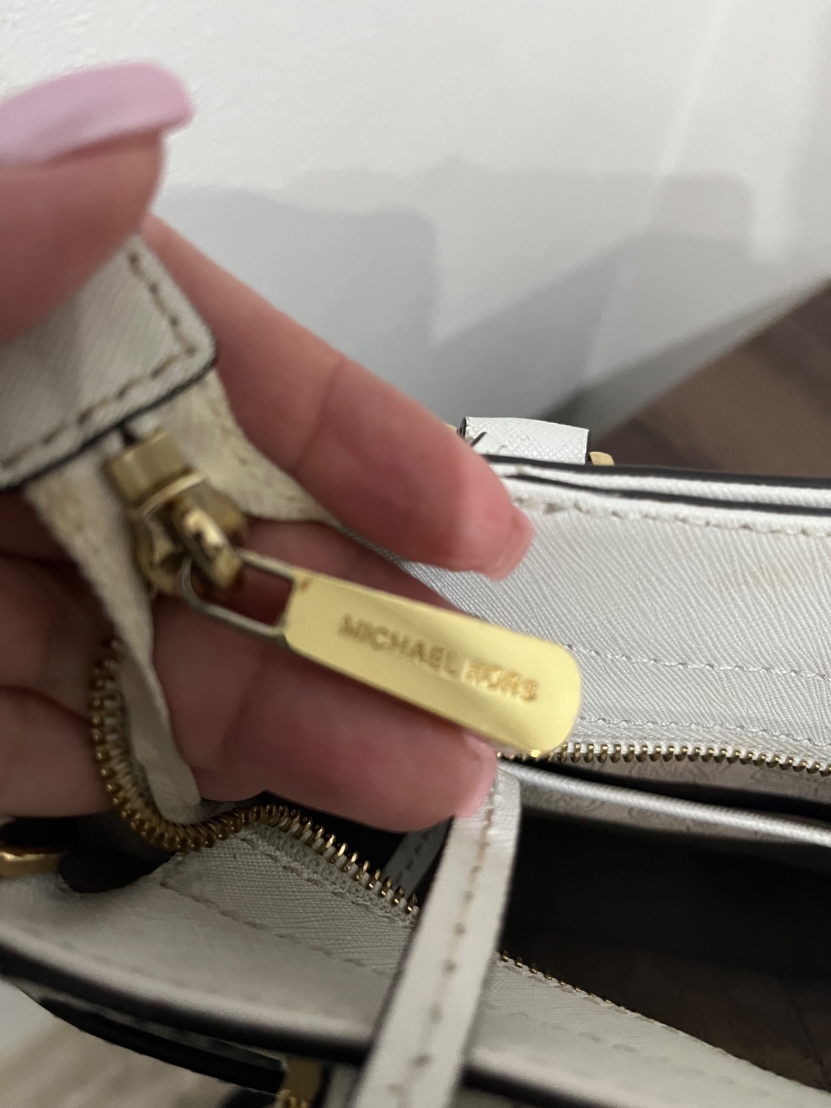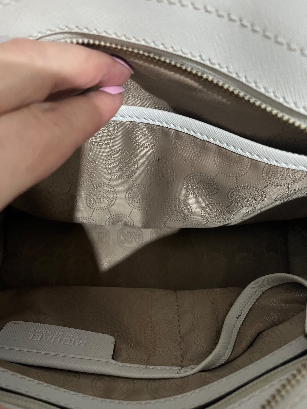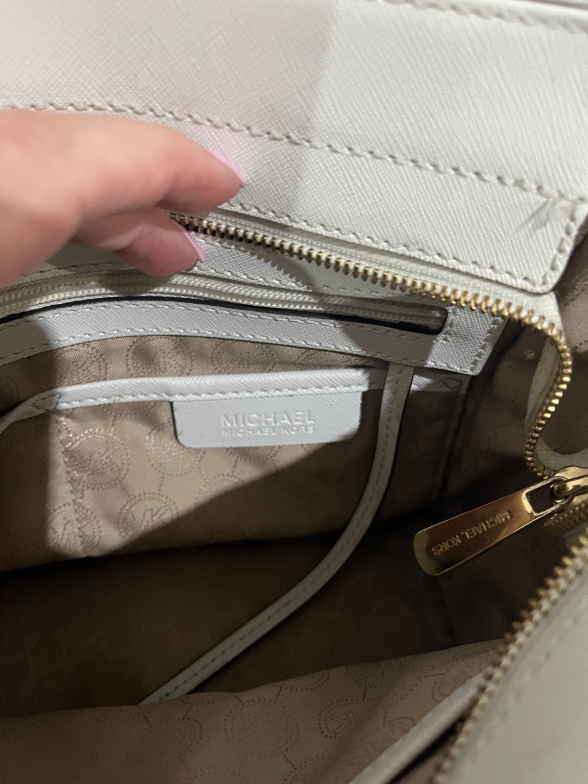 Predam nosenu michael kors kabelku, striedanu s 10 dalsimi.Nosenie vidno na rucku, ale pri noseni nevidno. Zo spodu a vnutro ma zaspinenie.Farba je taka spinavobiela.