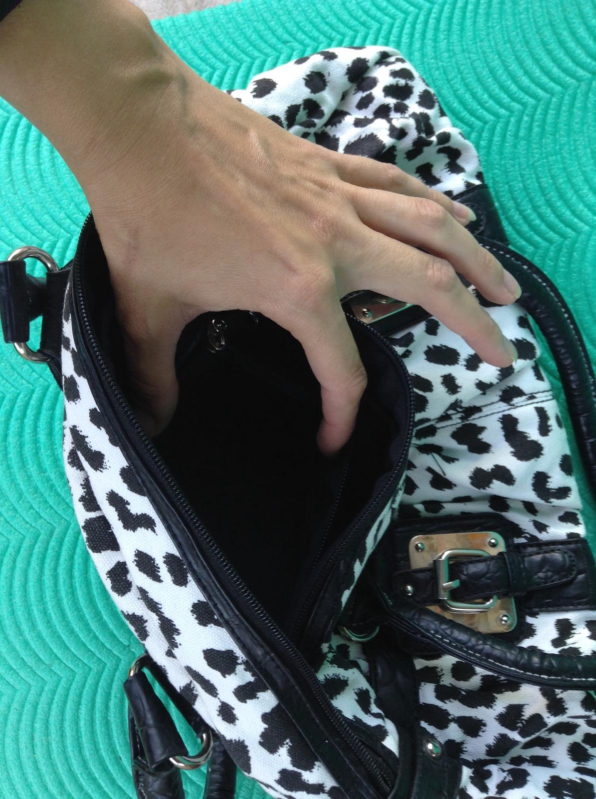 Kabelka ciernobiela lykova použitá dvakrat