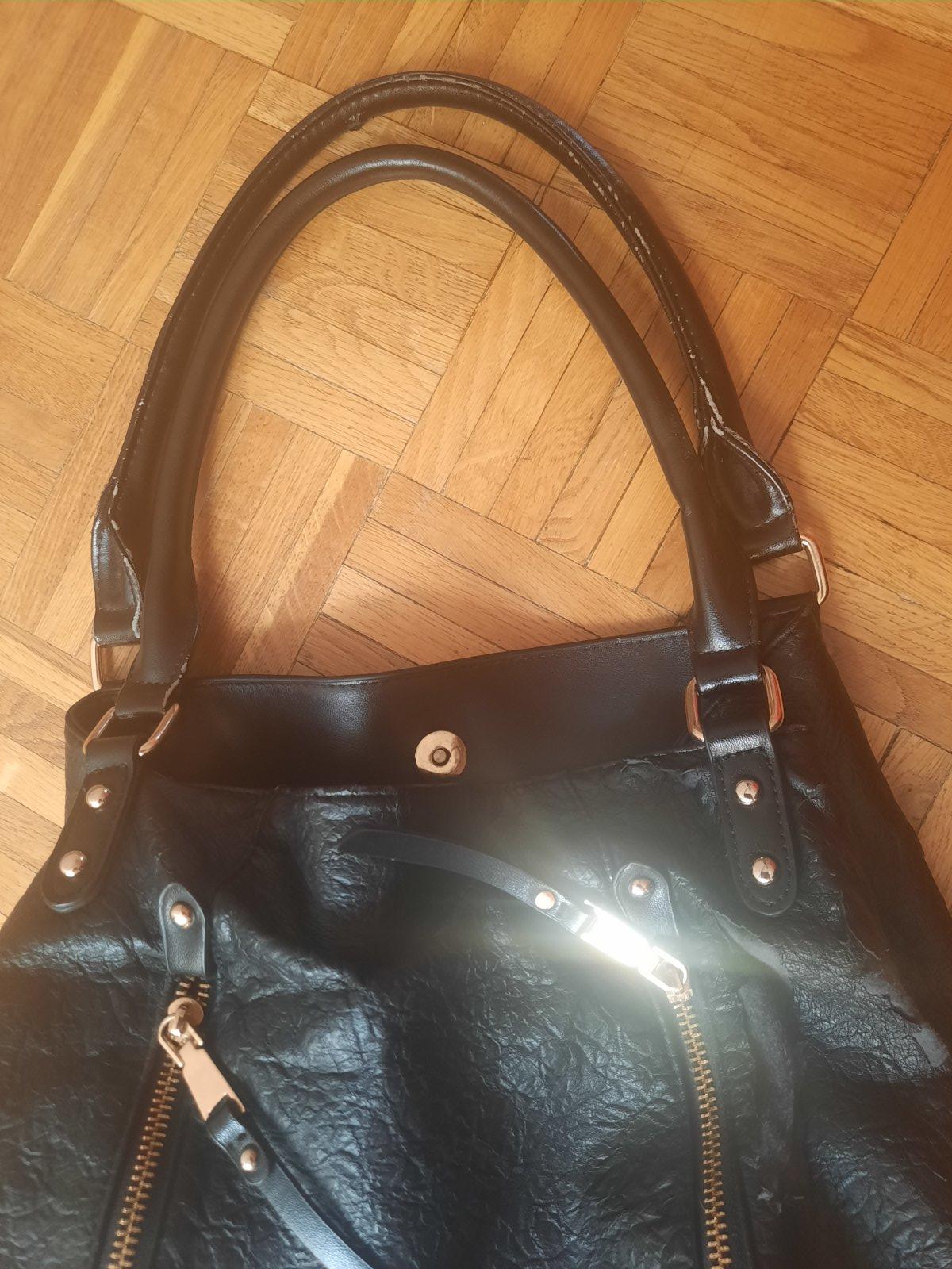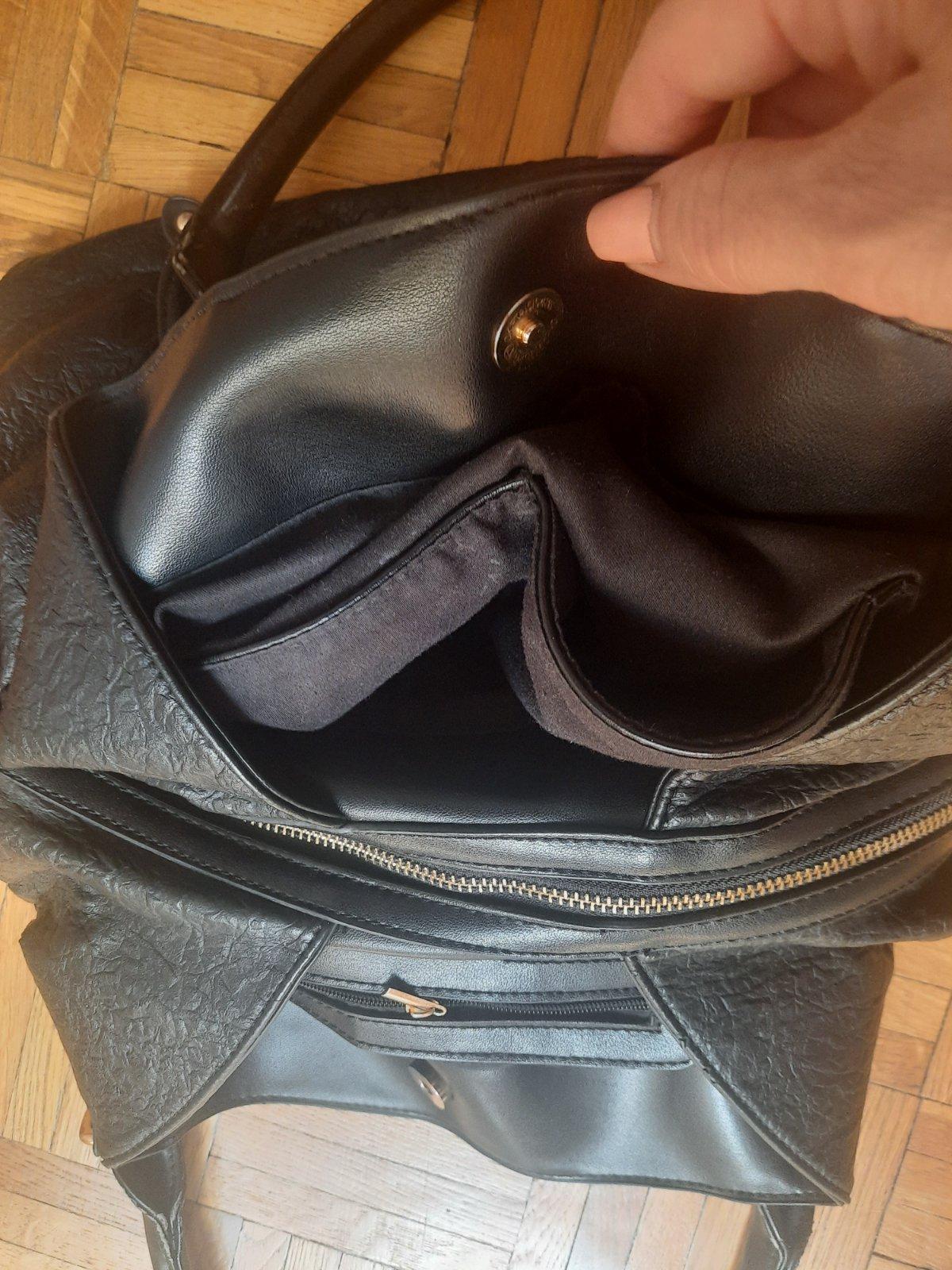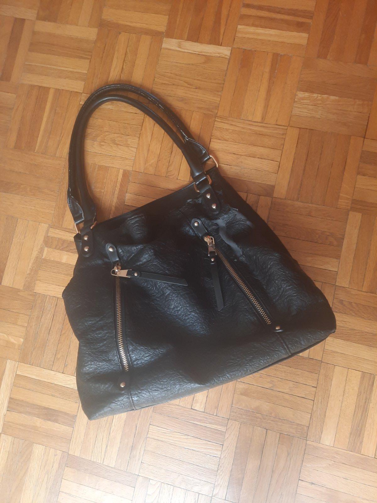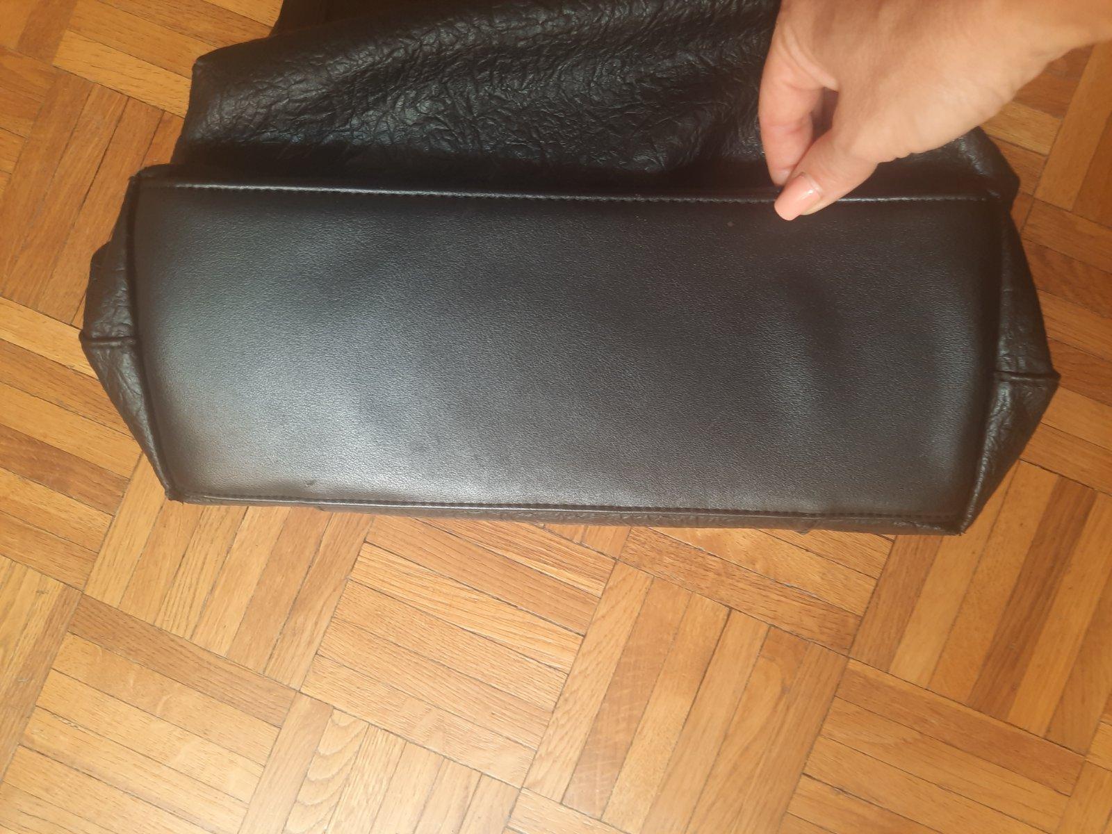 Predám čiernu dámsku kabelku s 3 väčšími úložnými priestormi. Zapína sa na nit + ten stredný priečinok na zips. Vo vnútri sú ešte 2 menšie vačkt na kľúče a mobil, z druhej strany na doklady. Zvonka sú ďalšie 2 menšie na zips. Má olúpanie na 2 miestach, iné poškodenie nemá. Kúpené bolo v CCC obchode.