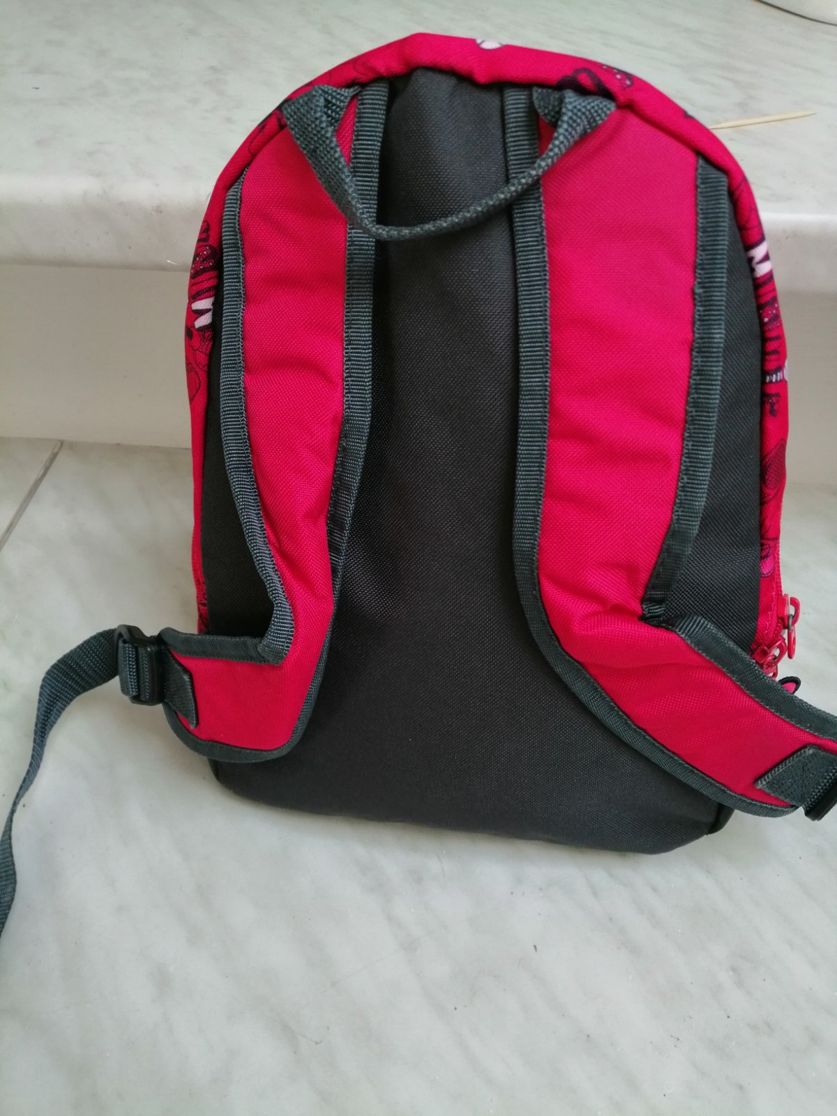 Ruksak vzorovany, ruzovo červeny pre dievčatka, sirka je 23 cm, hlbka, 10 cm a vyška je 30 cm,