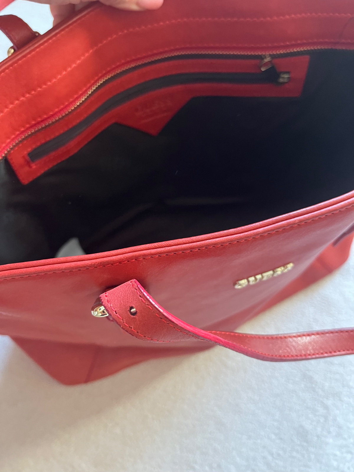 Originál. Mala som ju iba raz. Ako nová, bez poškodení. Umelá koža, lesklý povrch. Bordová farba. RO: šírka 34,5 cm, výška 25 cm, dno 15 cm. Váha 880 g.