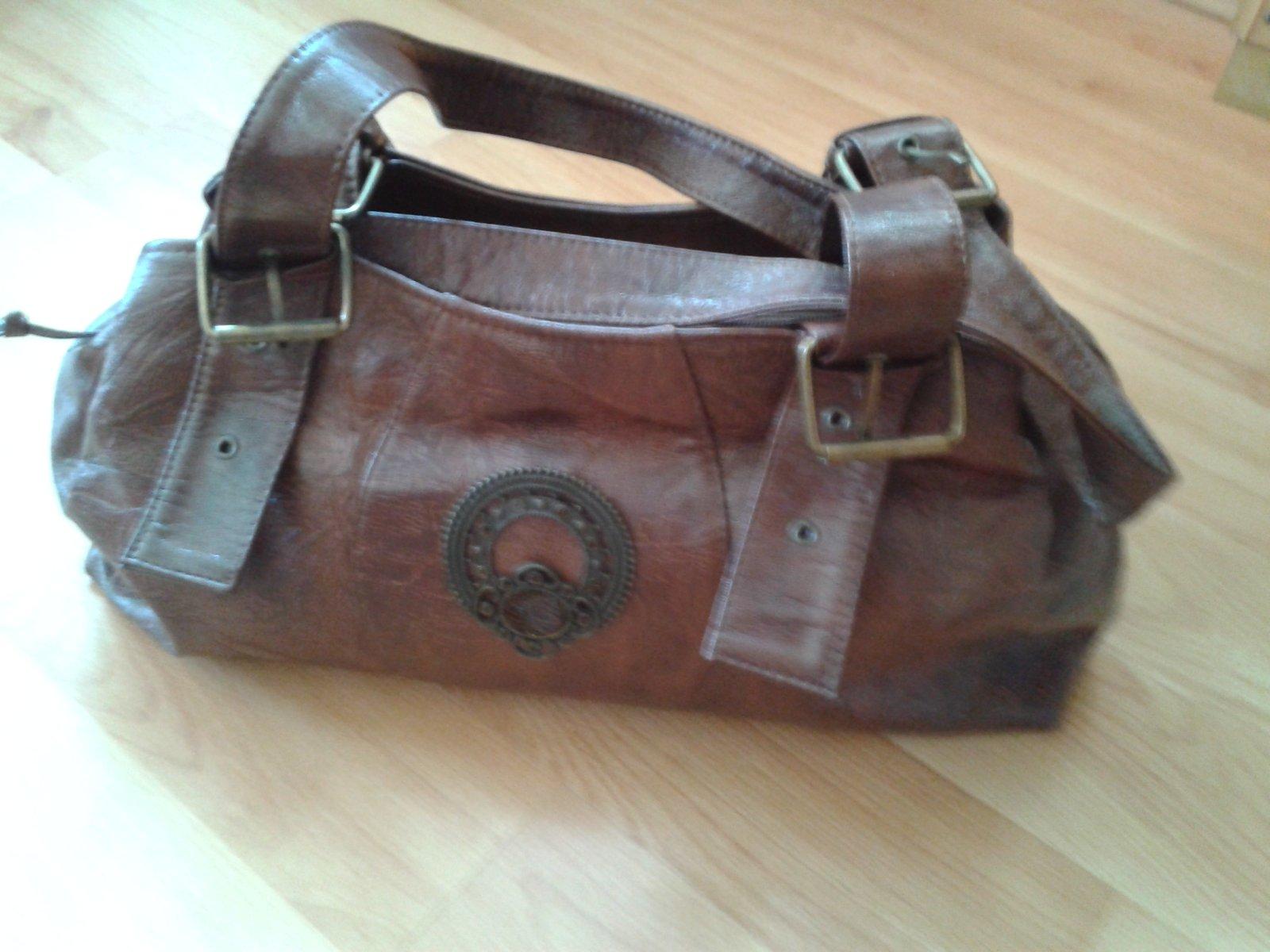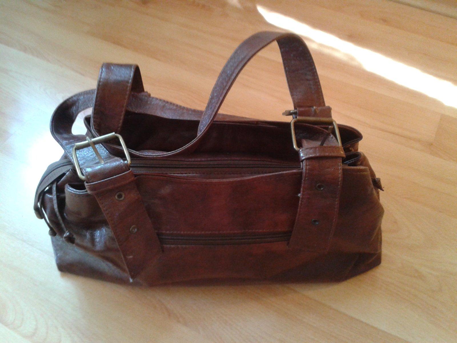 Predam krasnu hnedu kabelku. V predu pekna aplikacia. Zapinanie na zips. V strede vo vnutri priehradka so zipsom a na boku este jedna. Taktiez zips aj zvonku vzadu. Obdlznikovy tvar. Bez poskodeni. Asi 3x pouzita.
