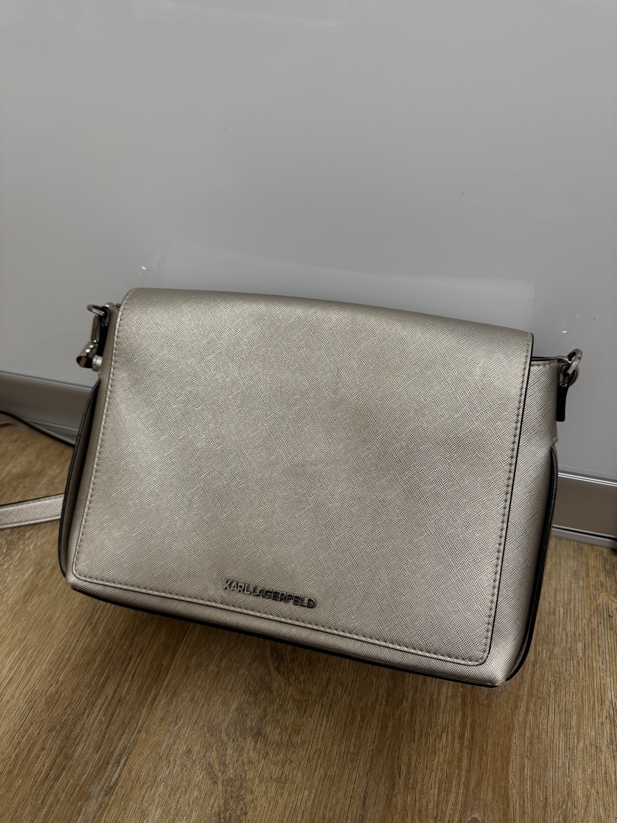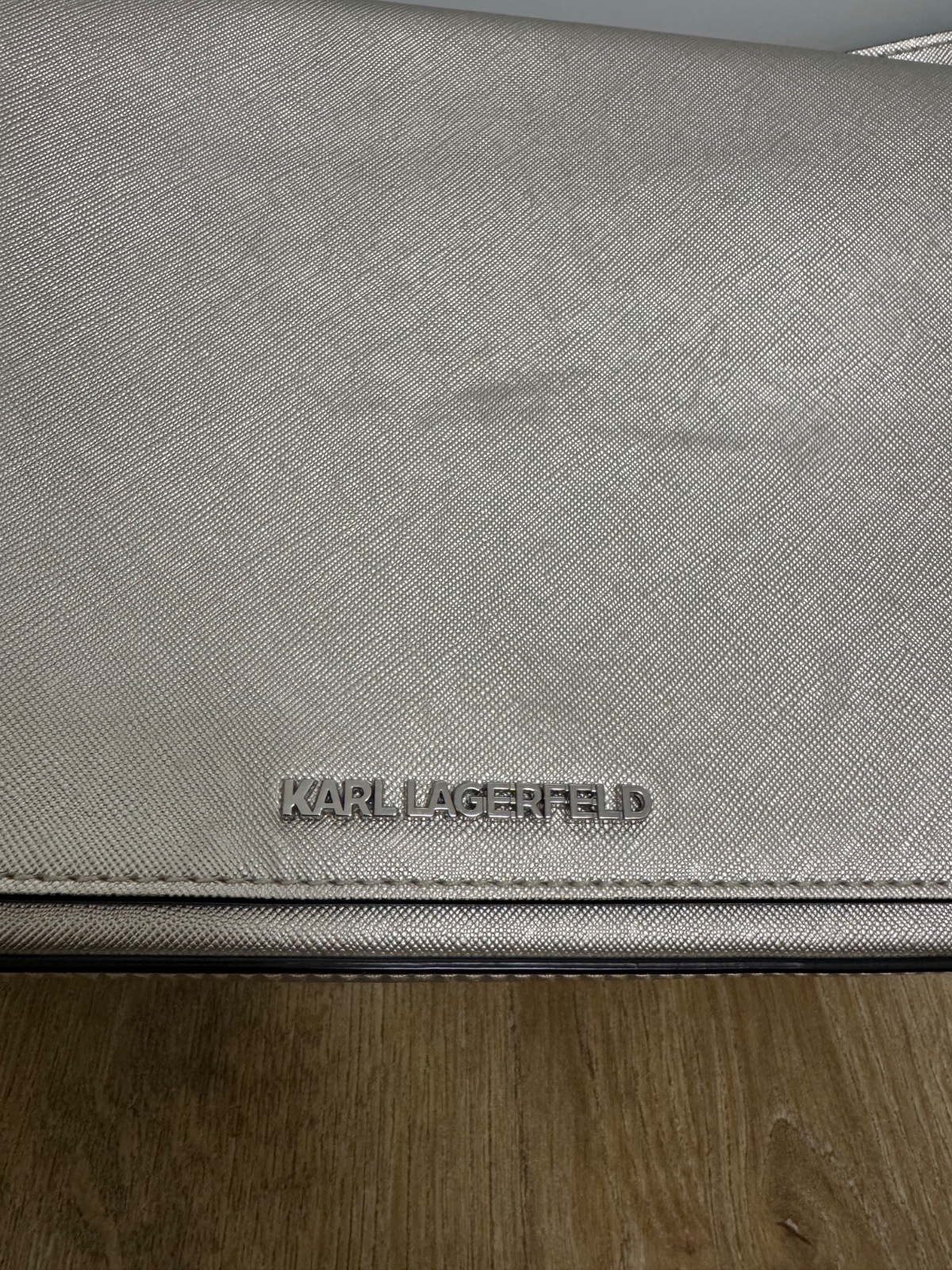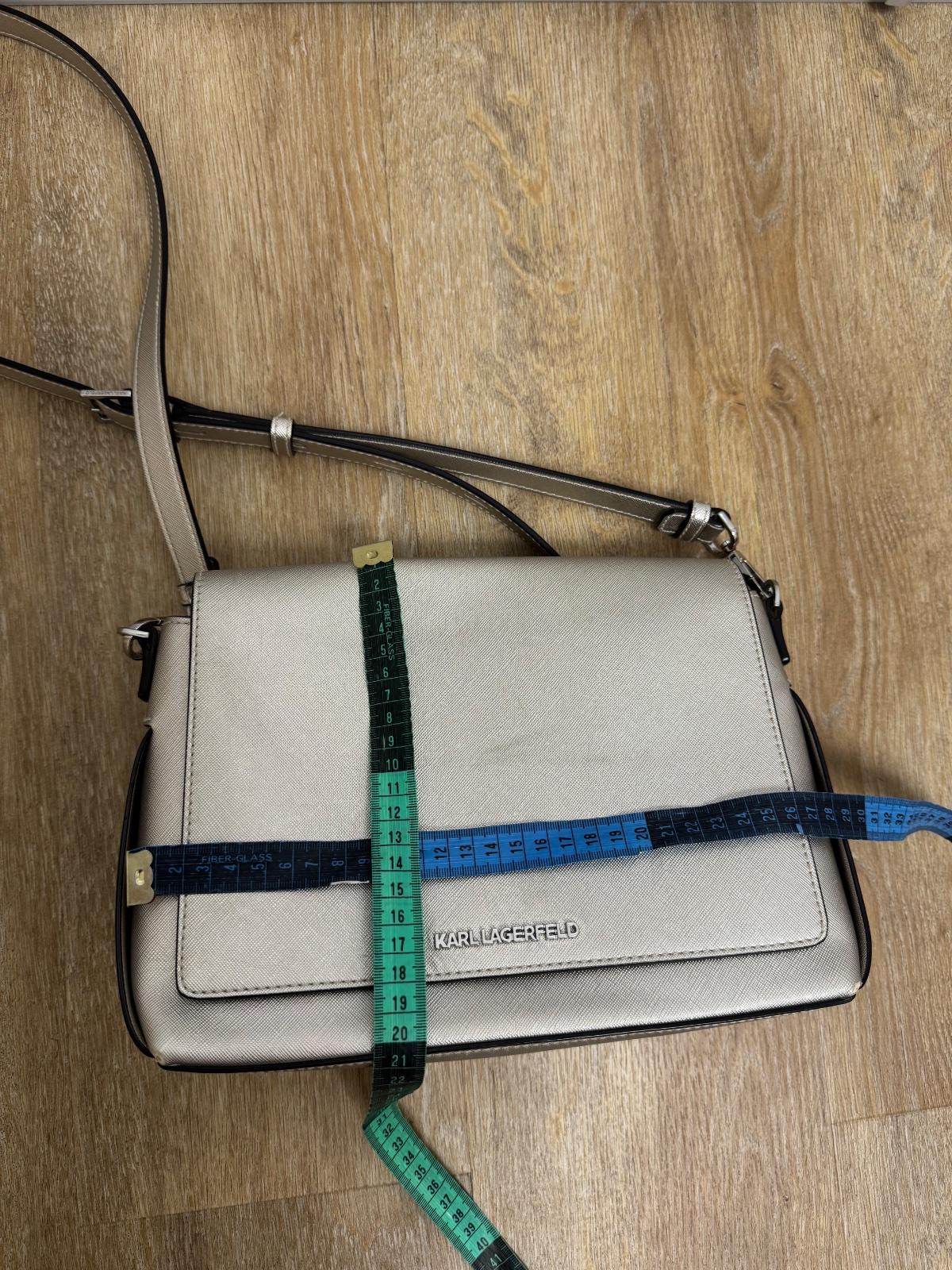 Ponúkam krásnu zlatú kabelku originál Karl Lagerfeld. Veľkosť je uvedená na foto. Je v málo nosenom stave, ale má drobné akoby šuchance no vidno to len pri nejakom svetle, tomu sa nedá vyhnúť..:) Stav som sa snažila detailne nafotiť. Myslím, že ešte urobí veľa radosti. PC vysoká. Poštovné podľa taríf.