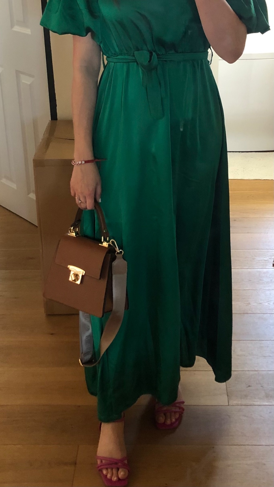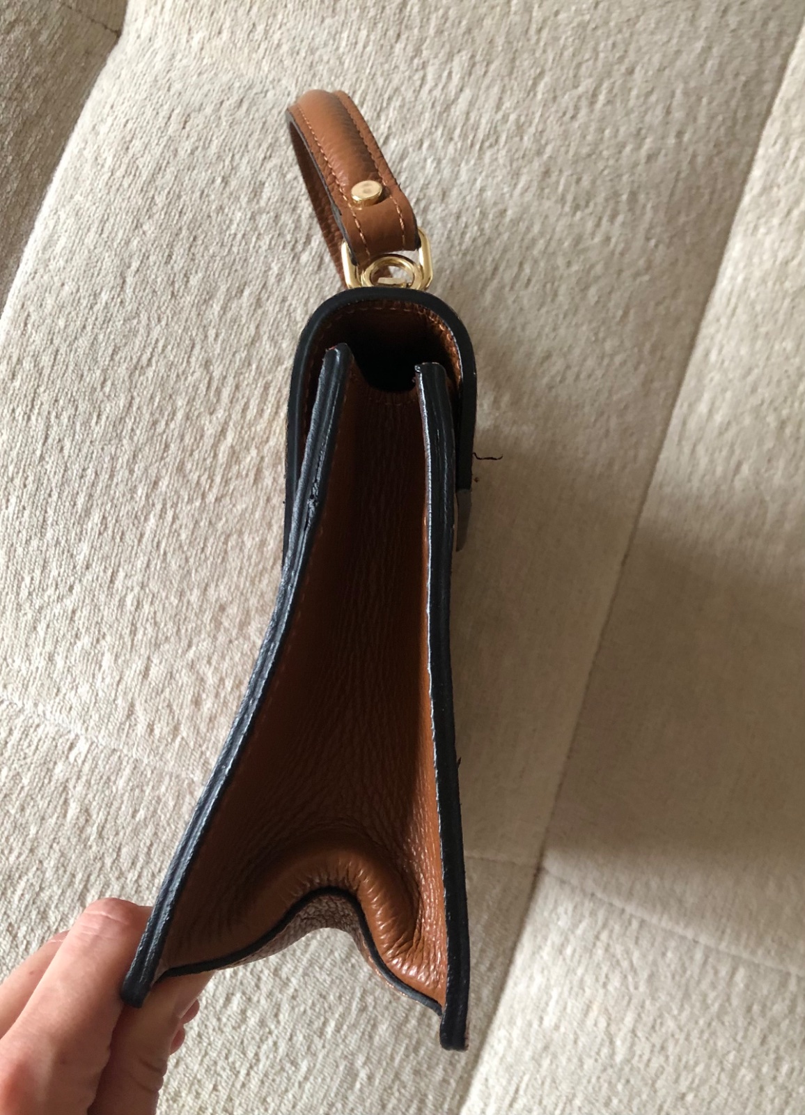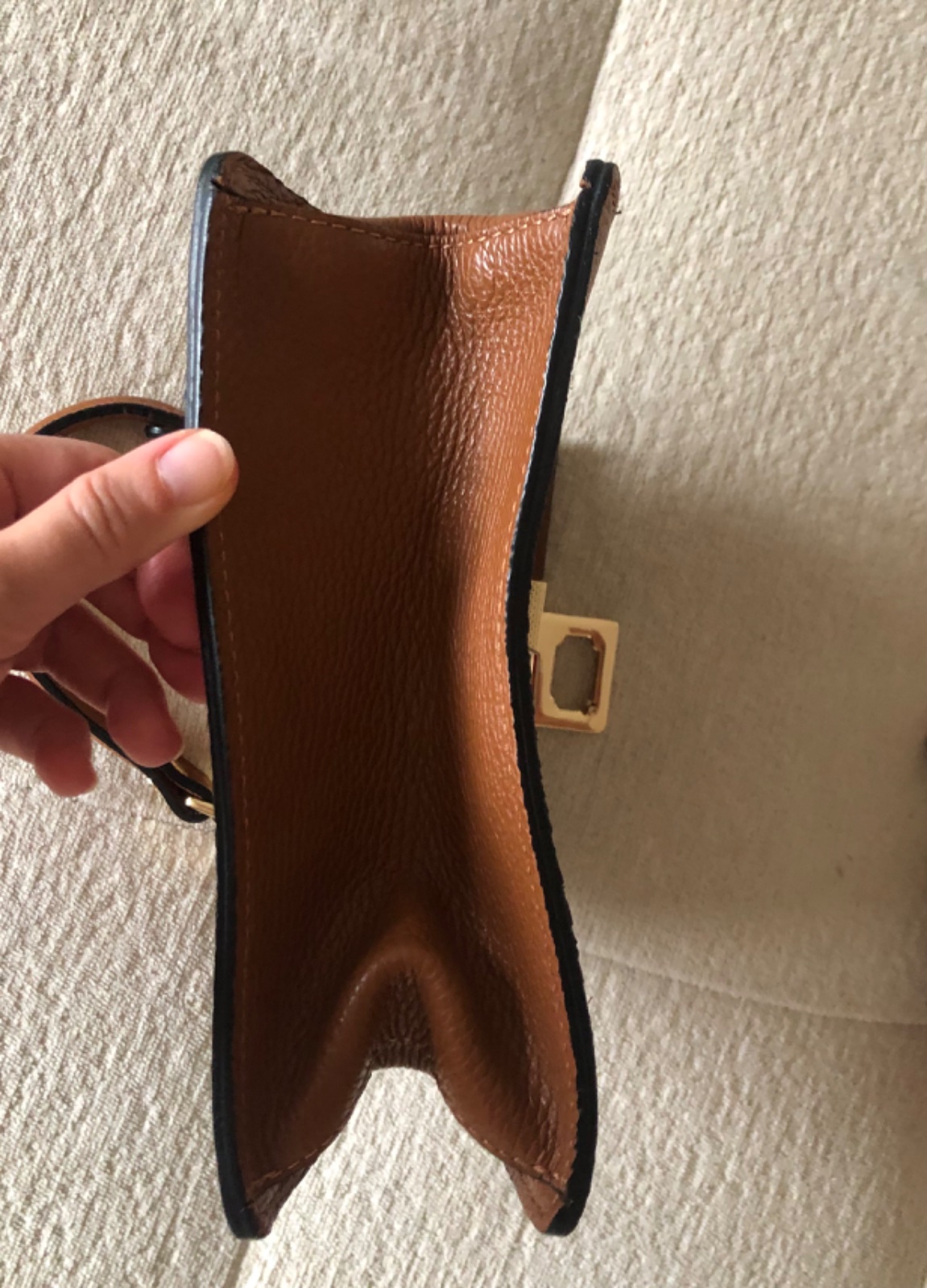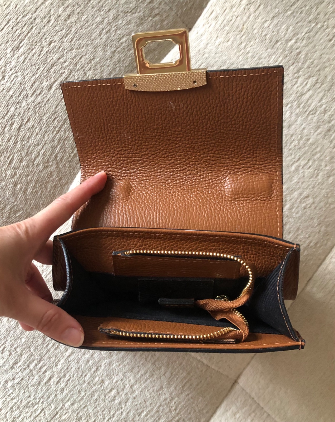 - párkrát nosená hnedá kožená kabelka