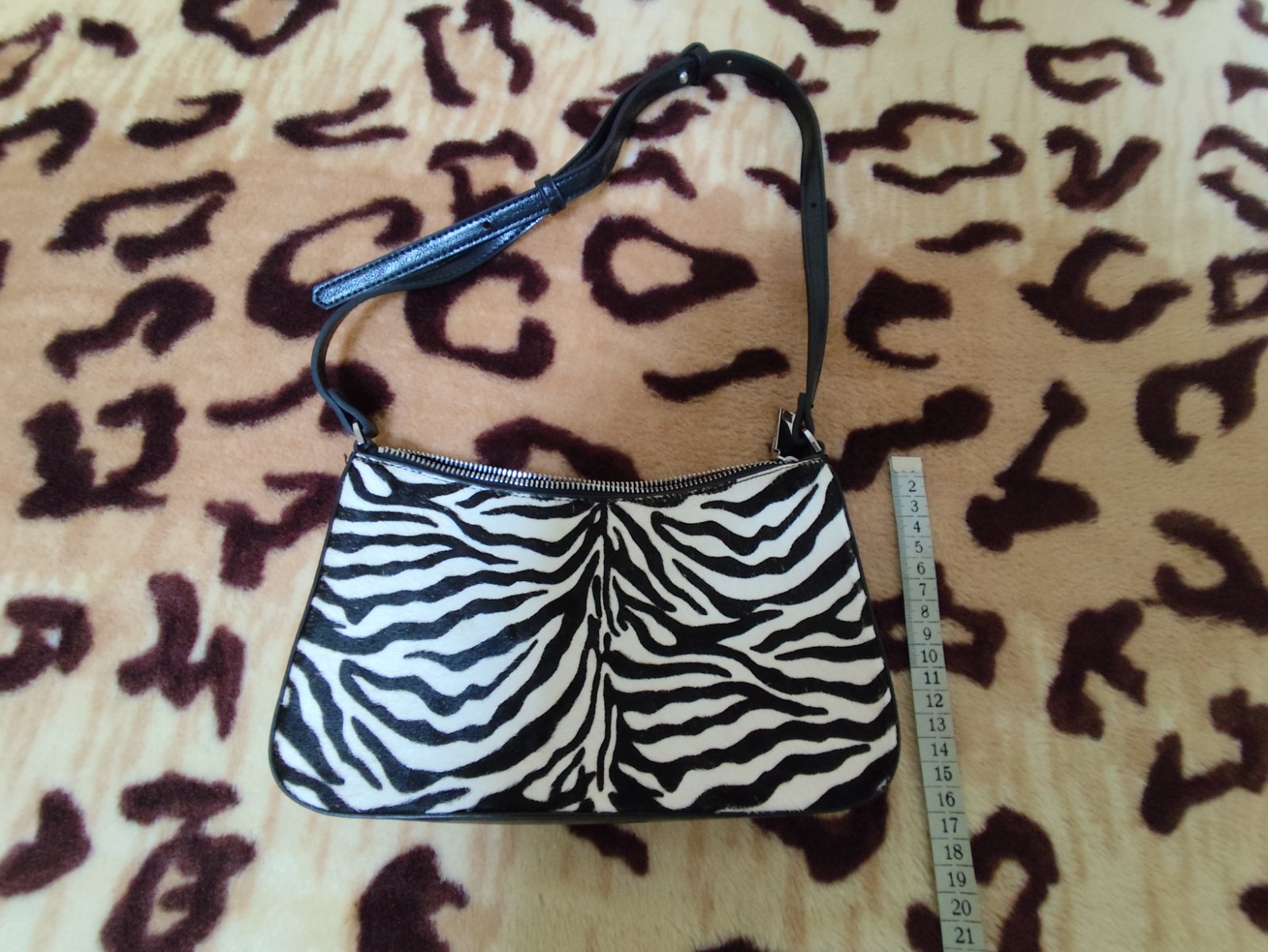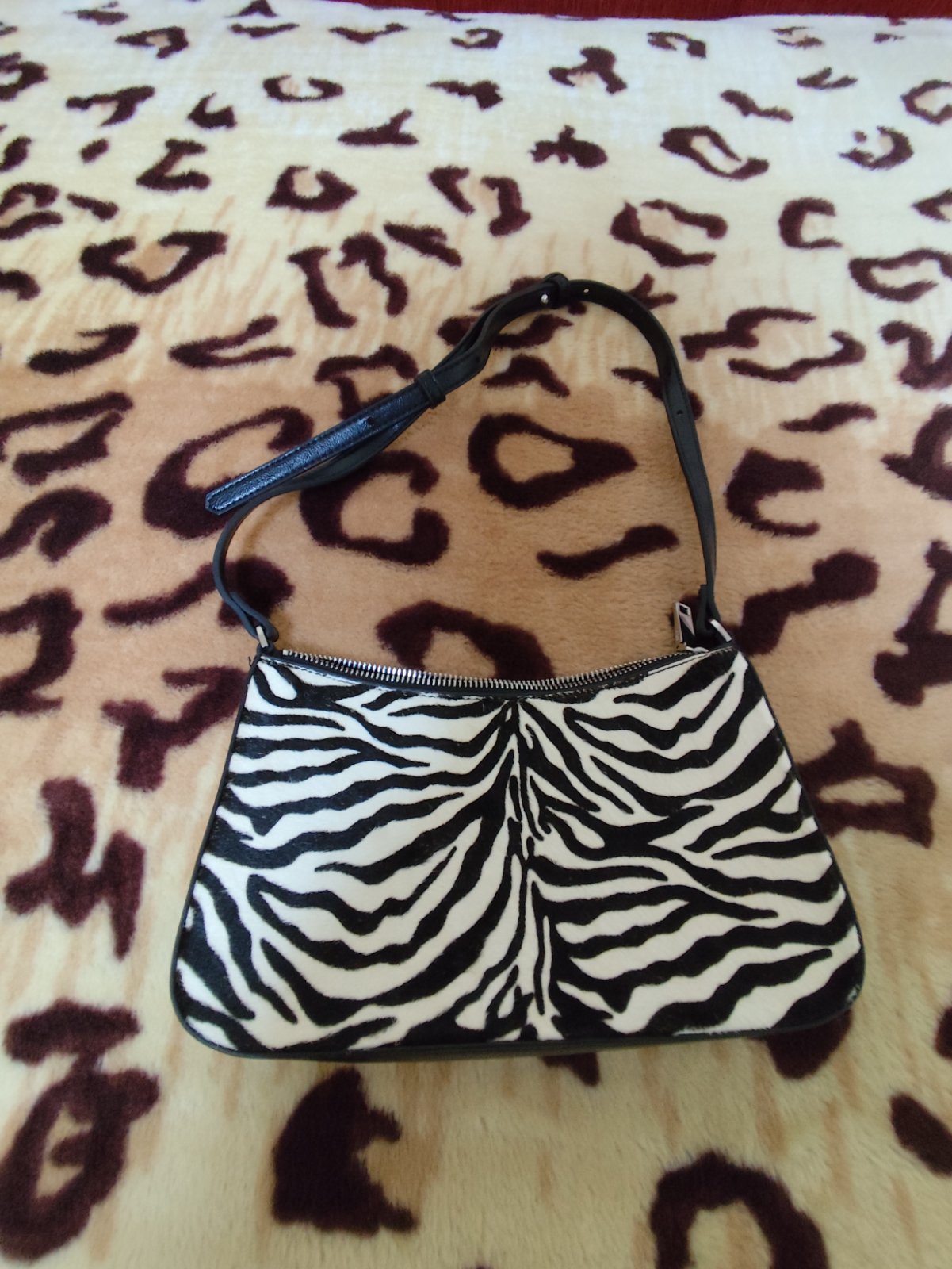 Mango zebrová kabelka, textilný povrch, len 2x použitá