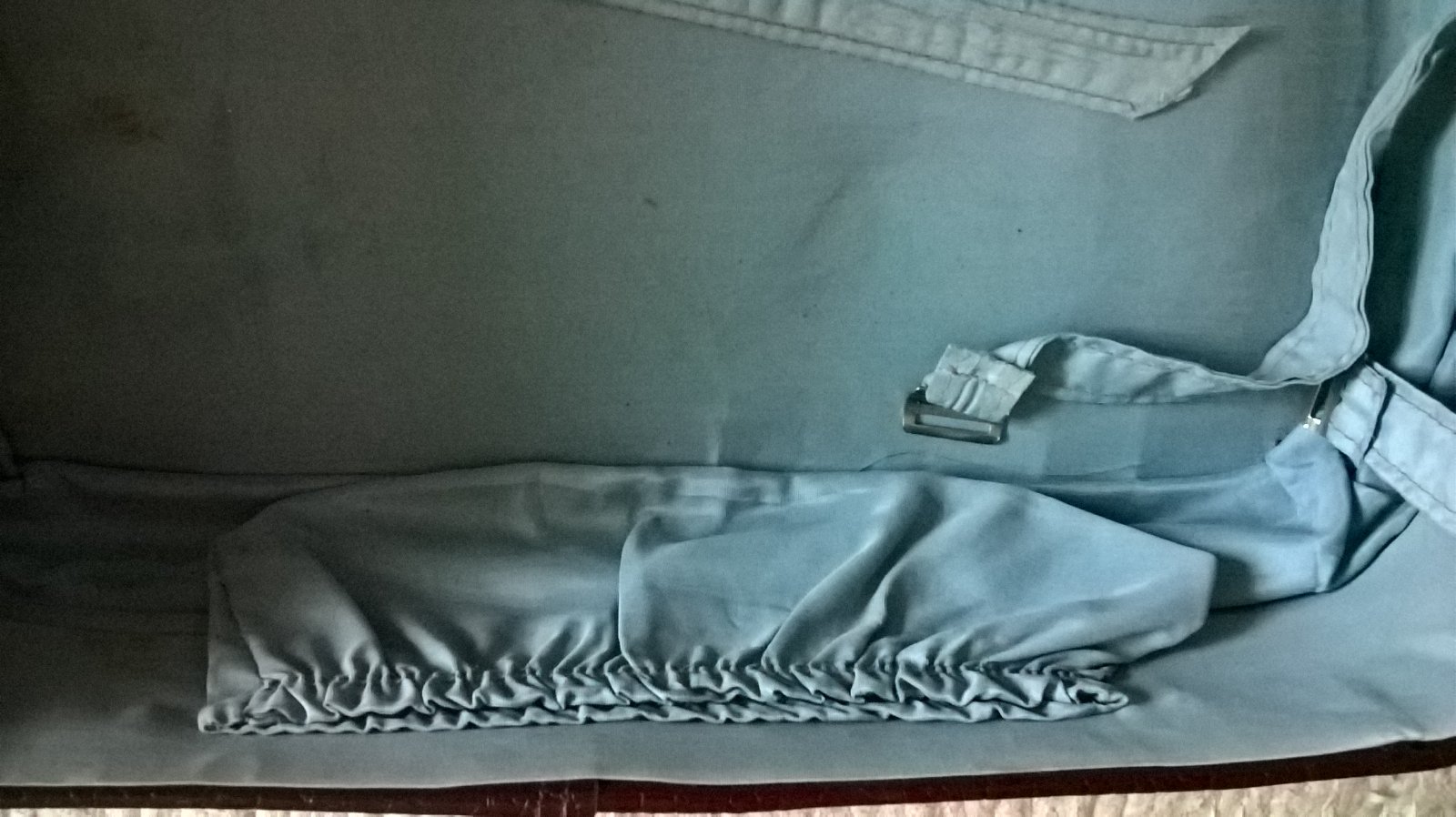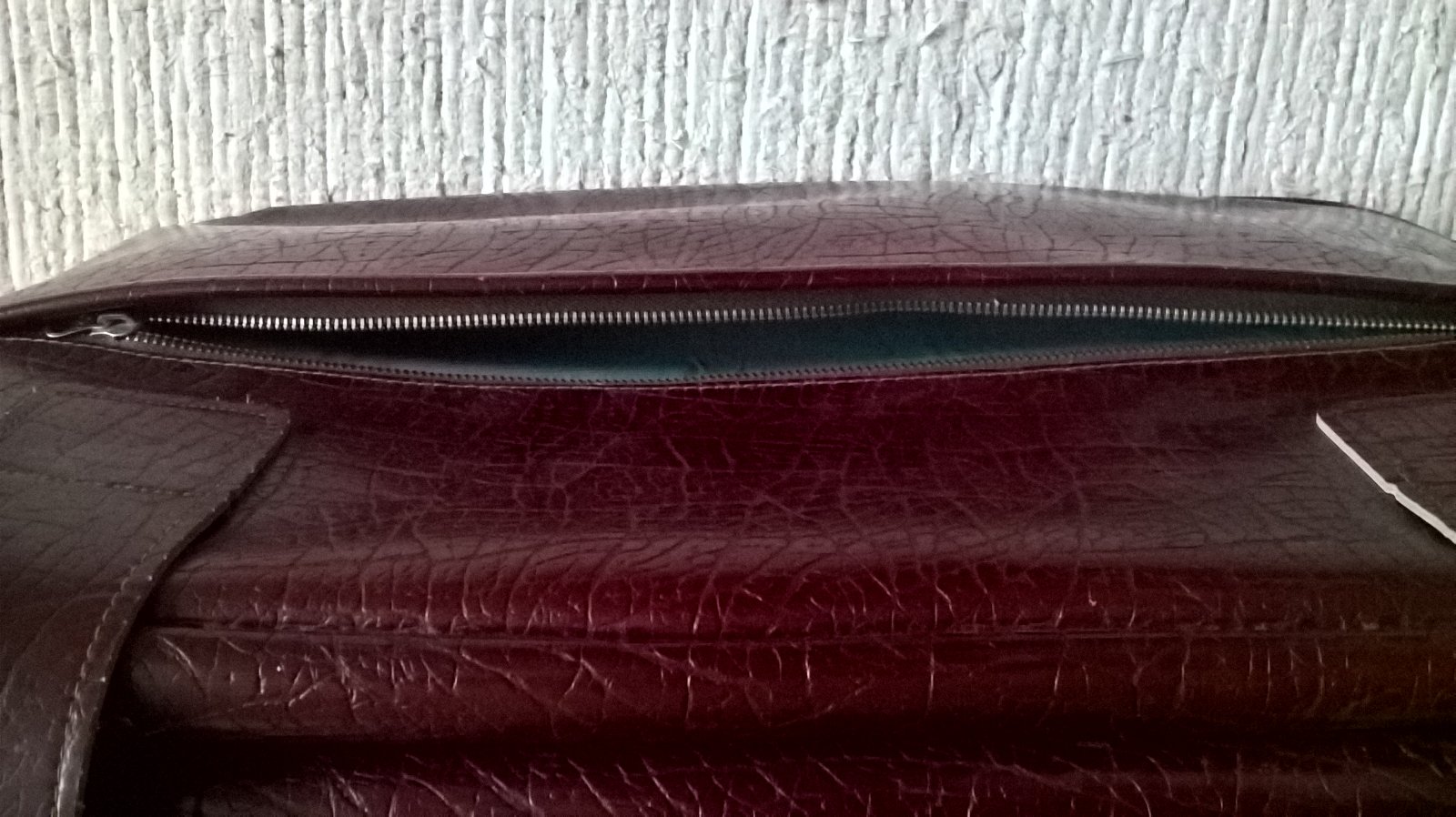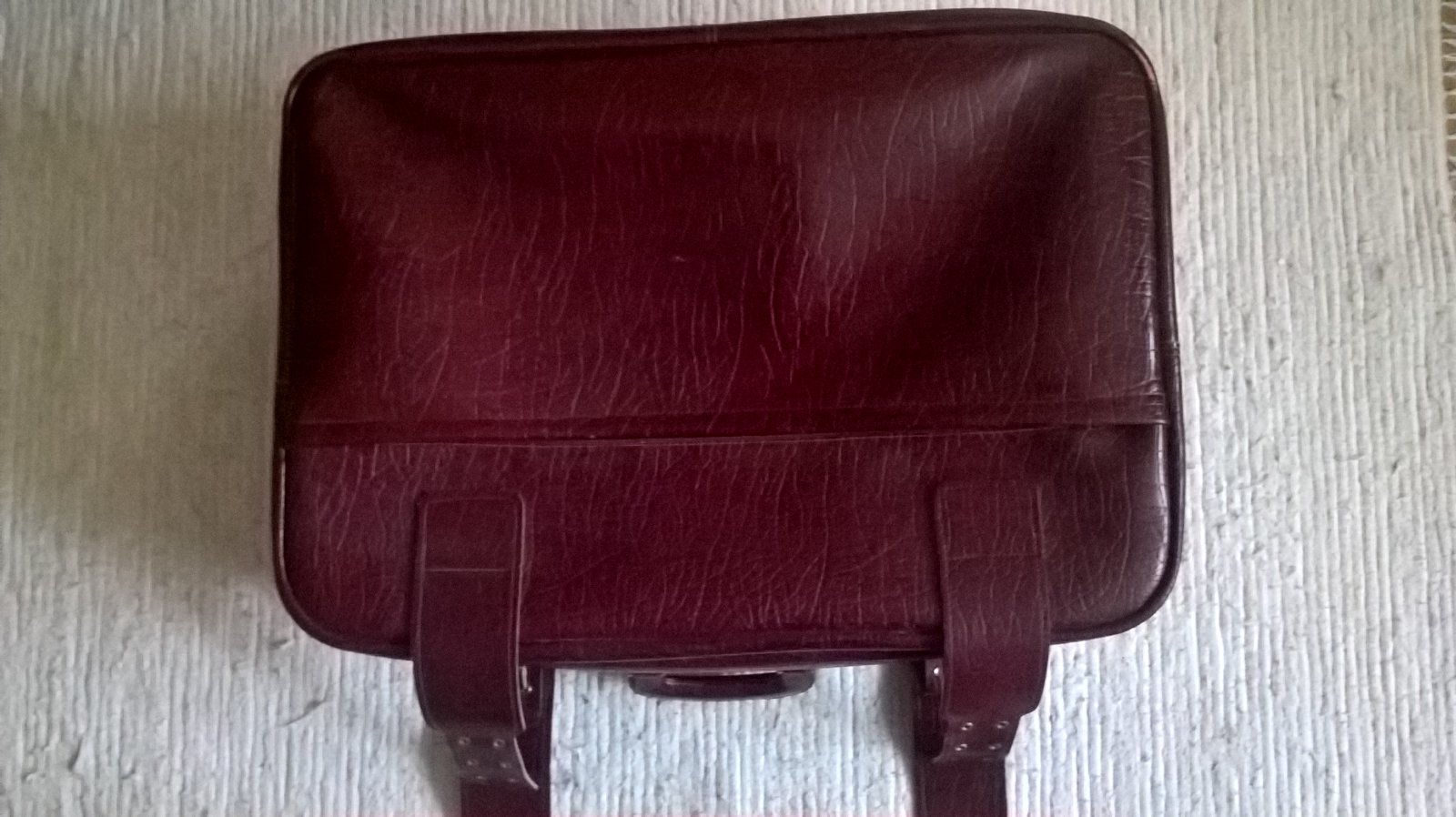 Starsi kufor bez koliesok, material=kozenka/latka,velky ulozny priestor,zvonka na boku este vacok na zips. Vsetko funguje.