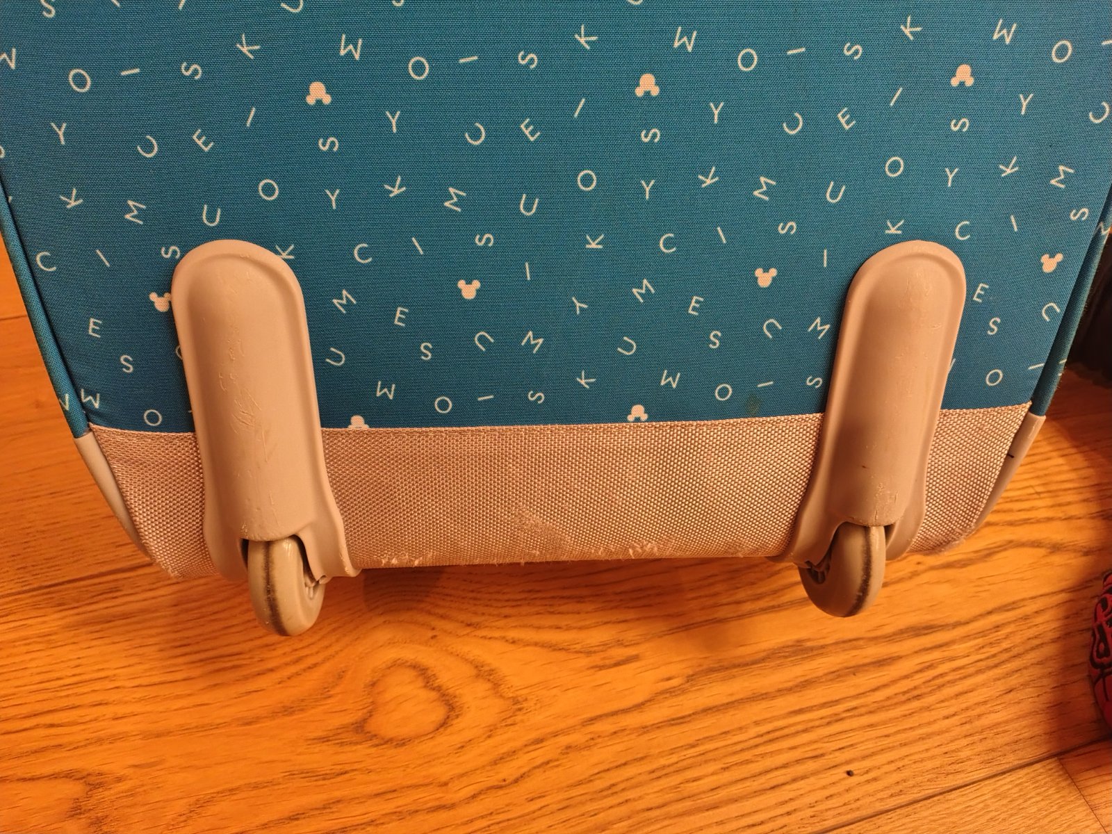 Kufor je vo velmi dobrom stave. Ma 4 kolieska a da zvacsit. Kolieska odporucam si vymenit, su zjazdene, ale stale funguju. Ako vidno na poslednej fotke, na jednom koliesku je odlomeny kusok plastu,...