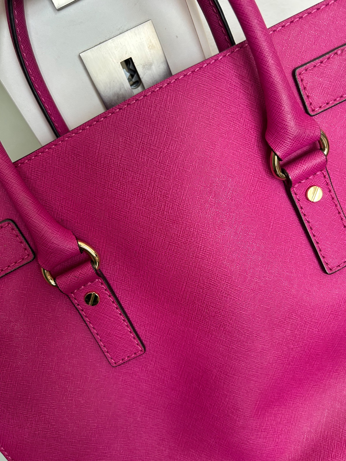 Top stav, malo nosená, objednávaná nová z USA, kvalitná koža safiano leather, nádherná sýto ružová farba, zlaté kovanie, nosenie vidno len na kove, bežné pri tomto modely, najväčšia veľkosť, rozmery 38x32, hĺbka 11cm
