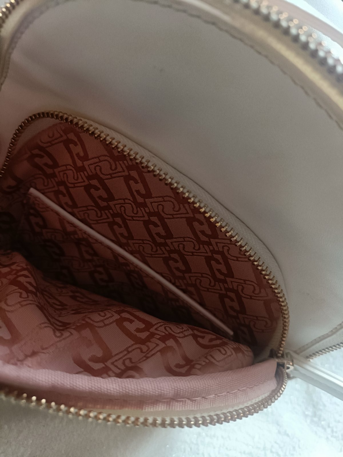 Biely praktický ruksačik originál zn.Liu Jo. Dá sa použiť aj ako kabelka na plece, takže 2 v 1. Bol používaný, nosený, vidieť malé známky nosenia na tých hviezdičkách a guličkách, ale prehliadnuteľne pri nosení. Je ešte plne využiteľný. V prípade potreby pošlem aj viac foto.