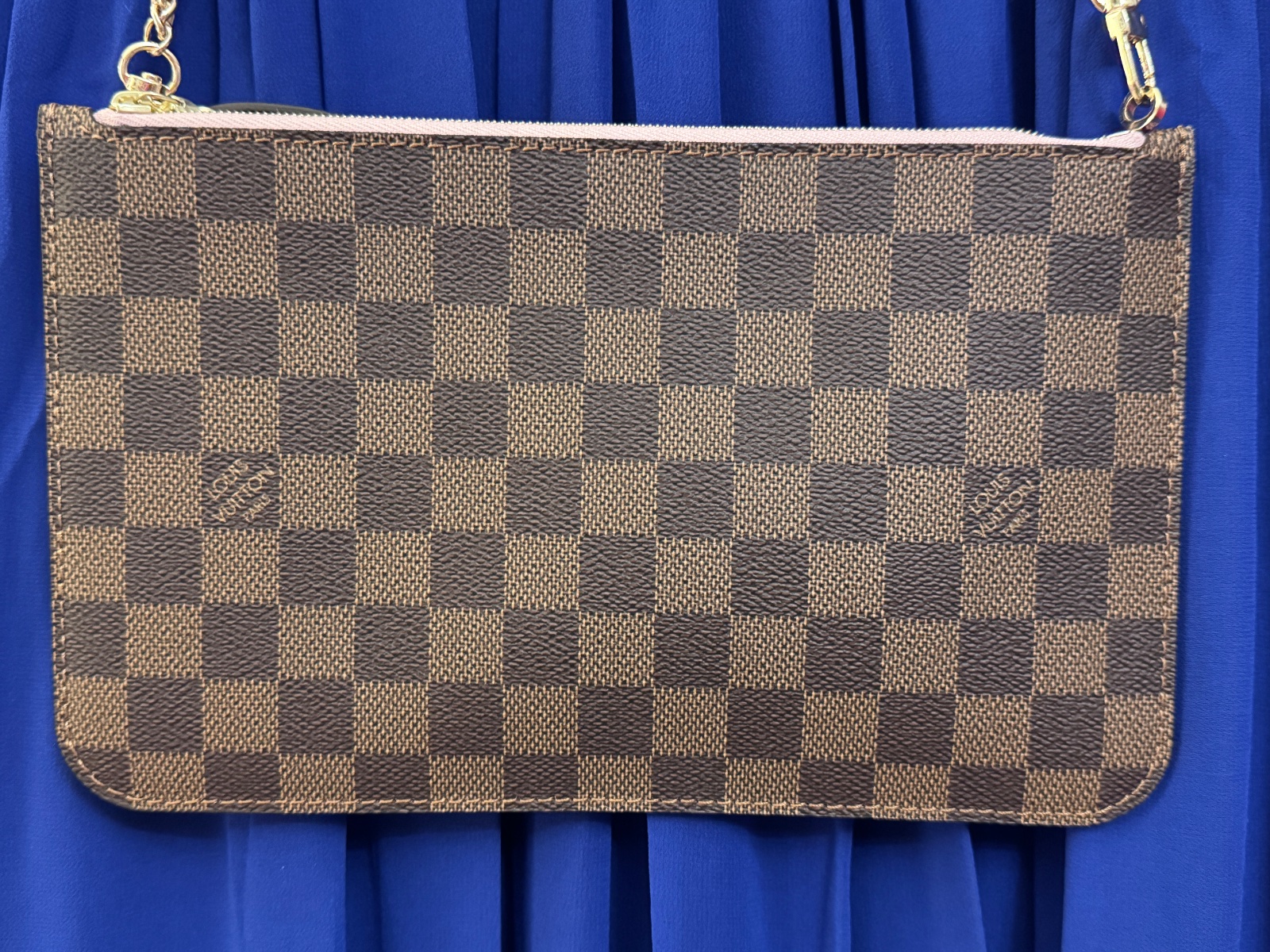 Predám pochettku z kabelky Neverfull damiere ebene s ružovým vnútrom , dá sa nosiť ako kabelka do ruky , taštička alebo Vám prikladám zdarma novú retiazočku s očkom (nie sú produktami Louis Vuitton) , aby ste ju mohli nosiť aj ako crossbody , poprípade večernú kabelku . Kabelka je nová , nikdy nebola použitá . Kabelka má už čip , to znamená , že už nemá sériové číslo vo vnútri , ale čip. Prikladám Vám aj kópiu účtenky .