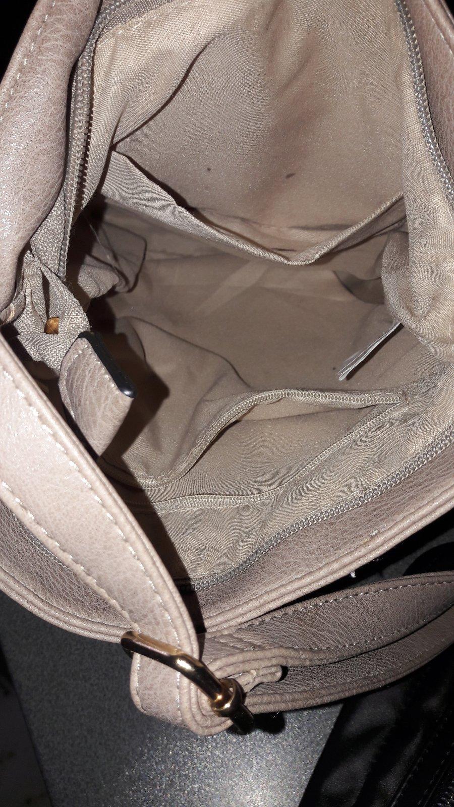 Nenosená, preto posúvam,ako nová,bez závad, tmavohnedá koža s béžovou látkou a strieborným zipsom, cena 20€+poštovné