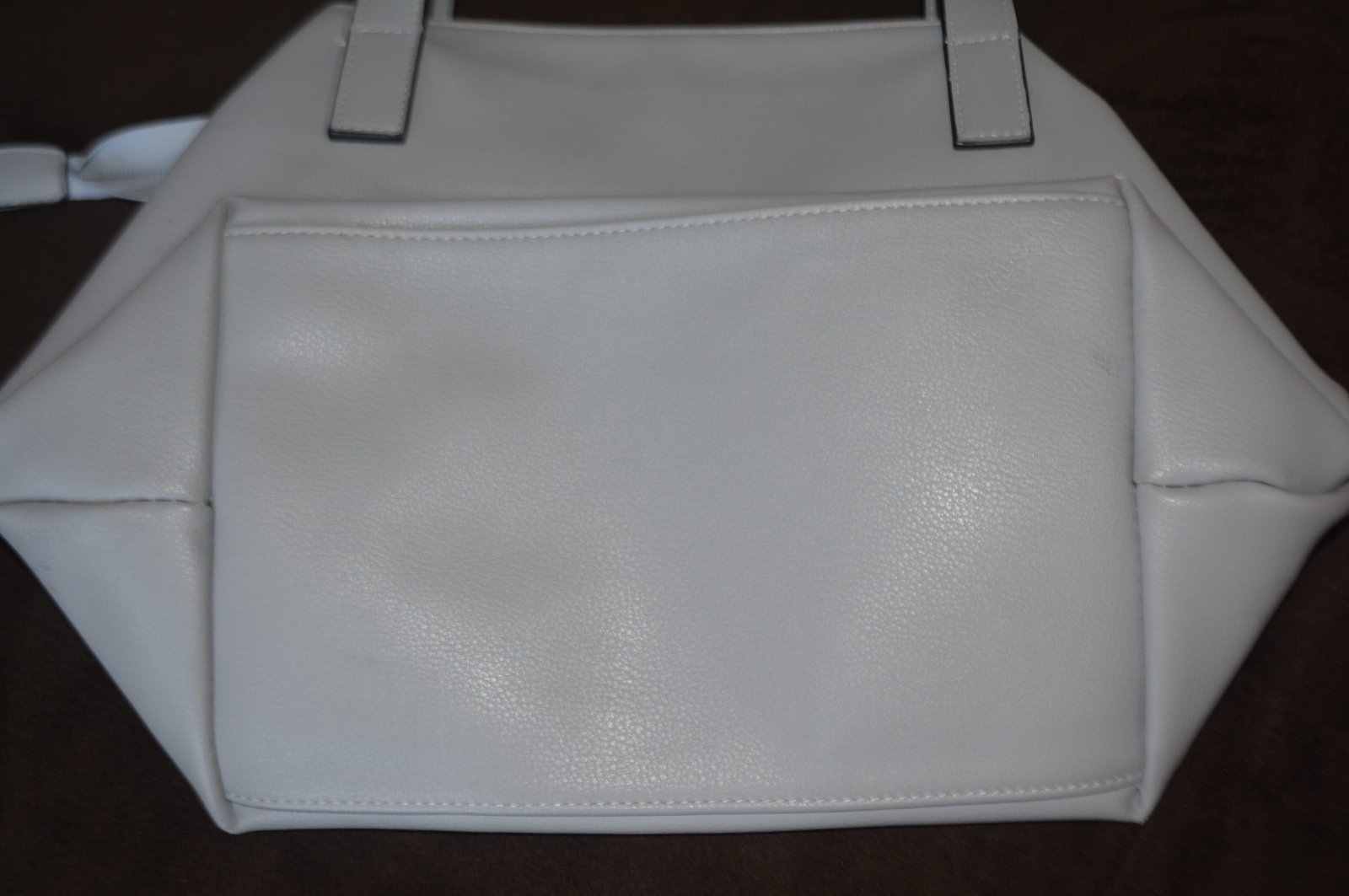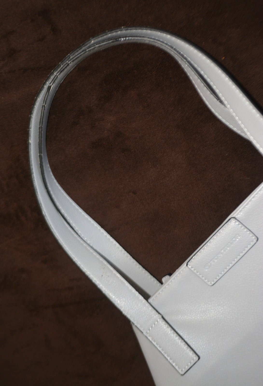 Kabelka je ľahučká, nosená - obľúbená. Je to koženková kabelka ktorá sa nelúpe, rúčky sú obšité takou čiernou tenučkou paspulkou, tá je popraskaná - ináč rúčky sú úplne v poriadku - pozrite všetky fotky.