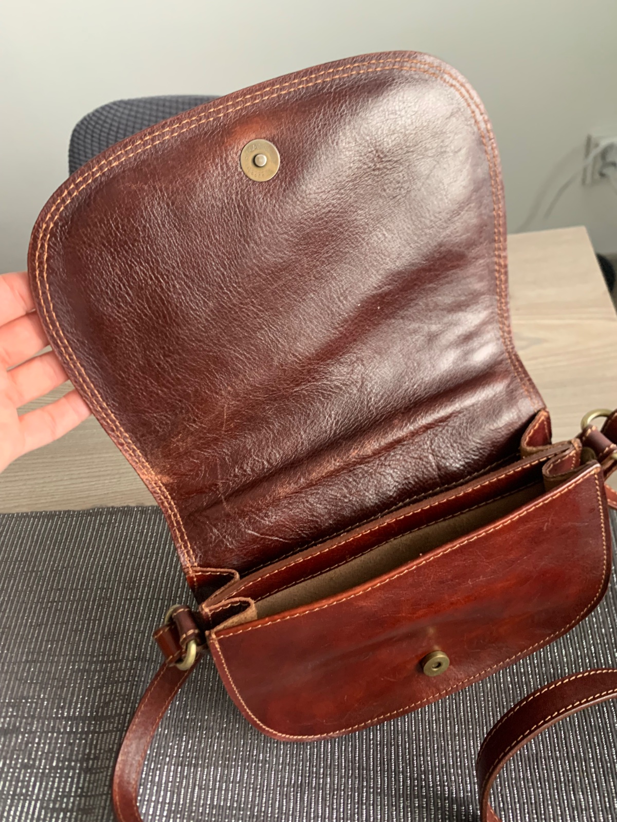 Všetky kabelky Marco Mazzini sa vyrábajú v miestnych remeselných dielňach v Taliansku. Vďaka ručnej výrobe je každý kus jedinečný vďaka štruktúre kože a jedinečnému procesu farbenia a konečnej úpravy. Nerovnomerná štruktúra, jemné záhyby a farebné nerovnosti sú prirodzené. Potvrdzujú pravosť výrobku Vzhľadom na remeselnú výrobu z prírodnej kože sa odtieň a vôňa môžu v jednotlivých šaržiach a sezónach mierne líšiť.
