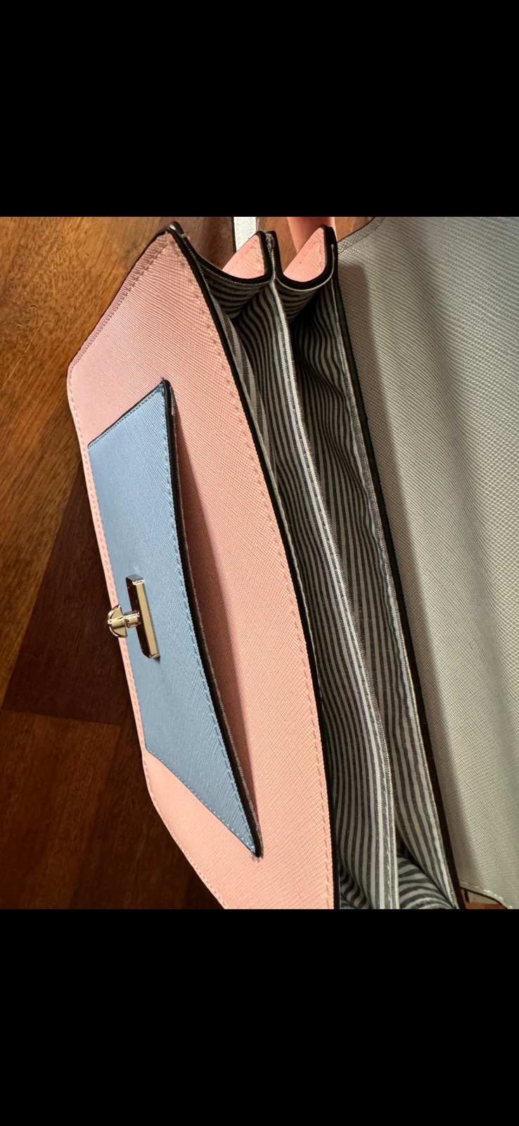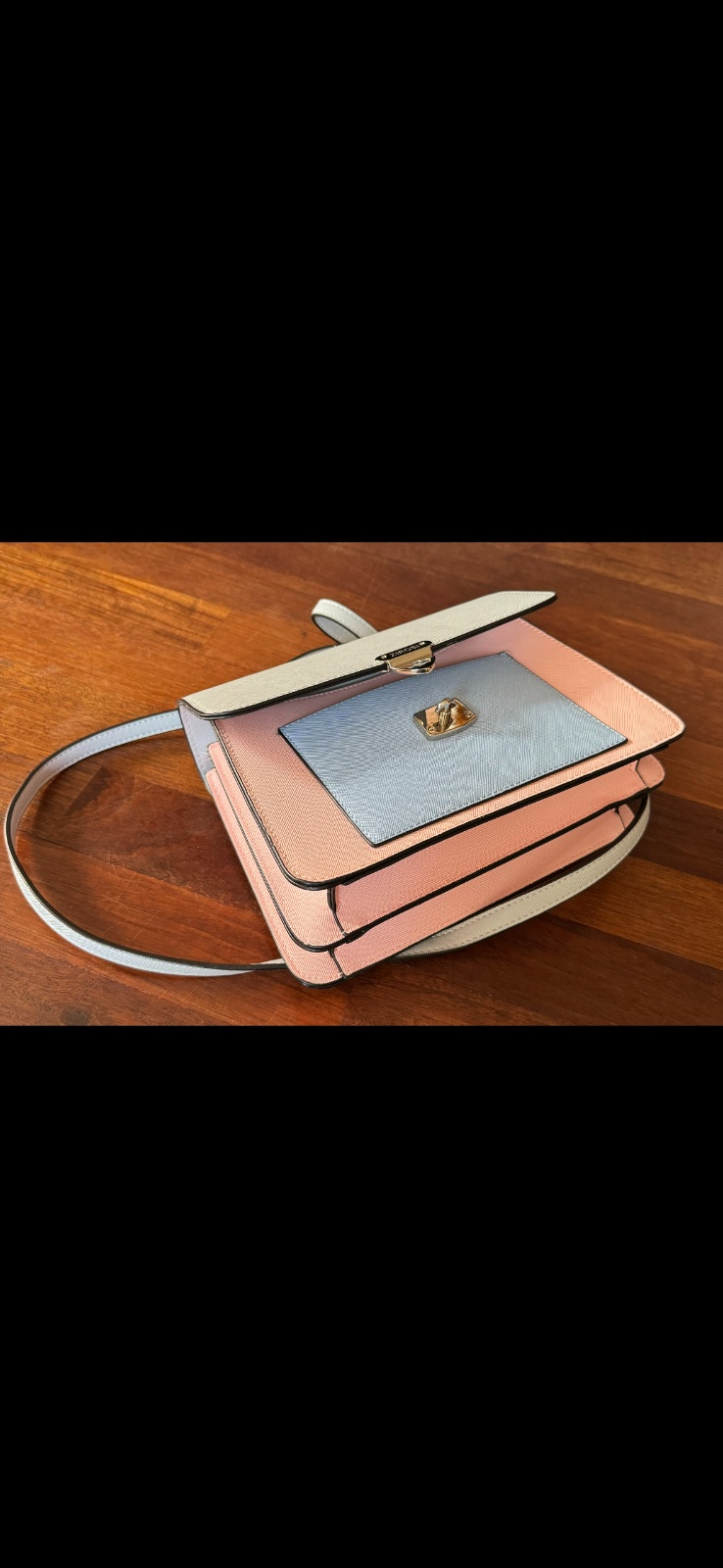 Predám párkrát nosenú koženú kabelku. Súčasťou balenia je ochranné vrecko a 2 remienky /kratší a dlhší/. Vo vnútri je 1 vrecko na zips a na karty.