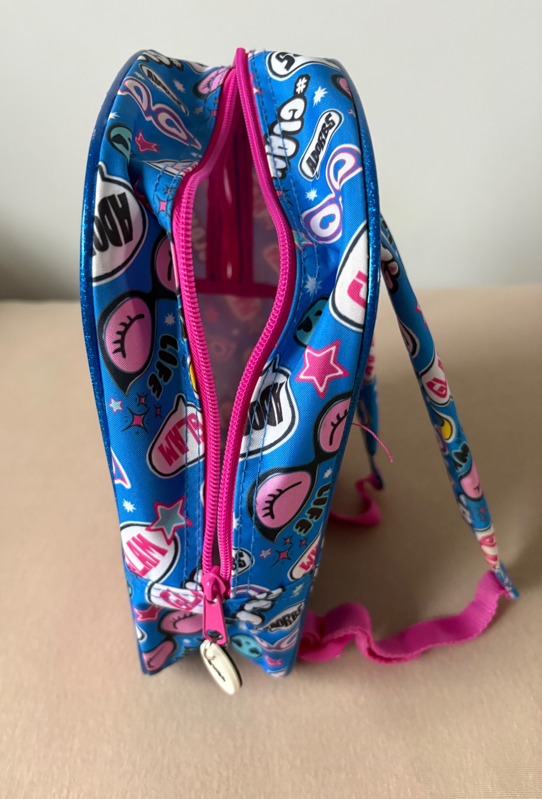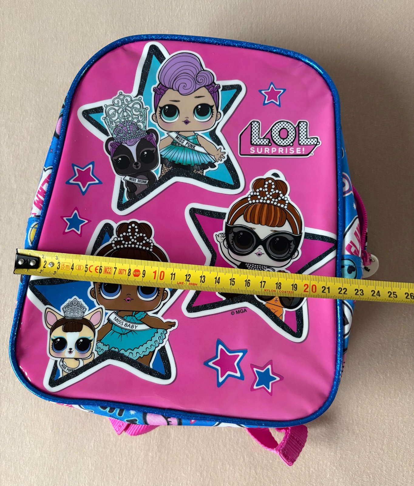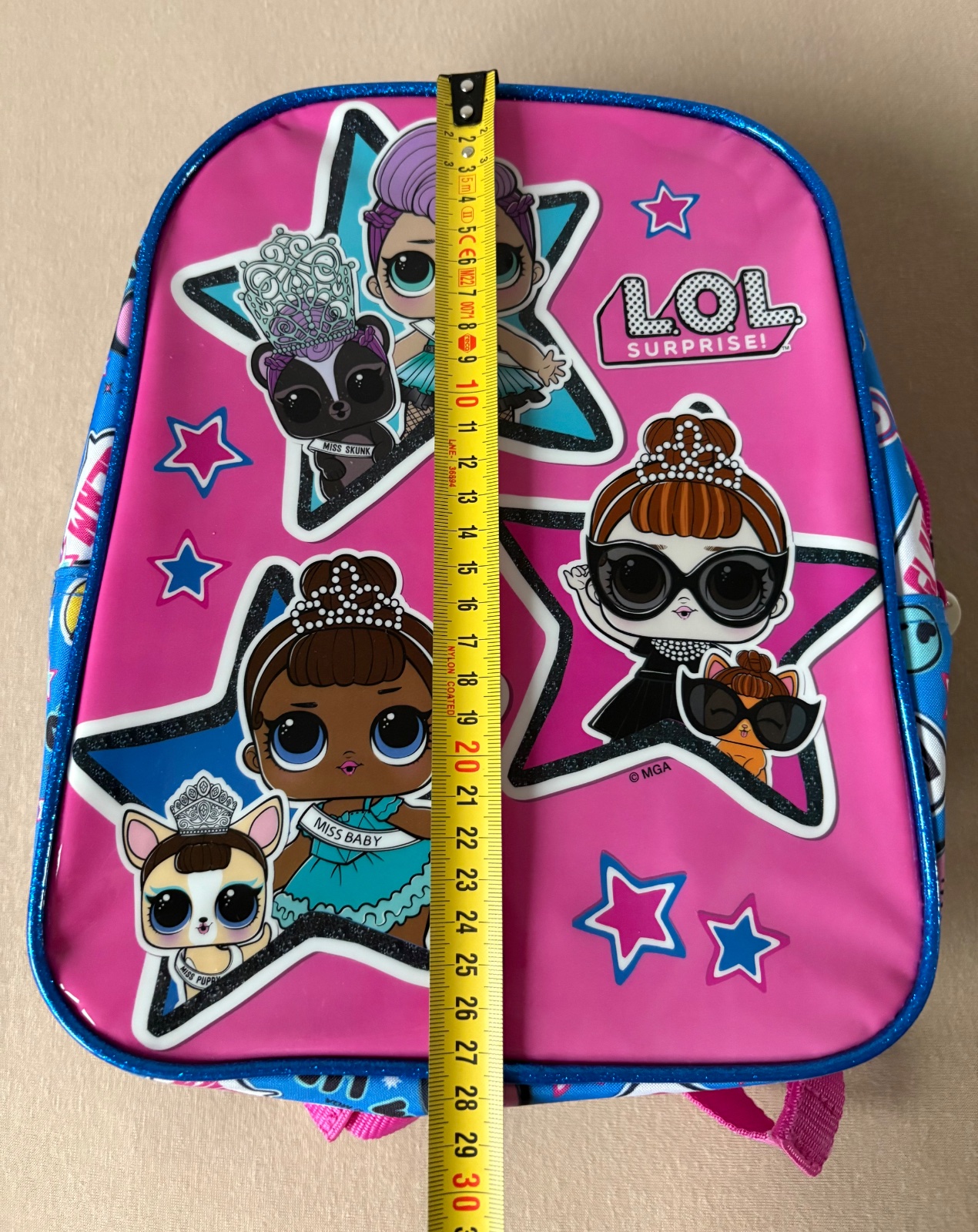 Predám nový ruksak s dievčatkom. Výška 38,5 cm, šírka na spodku 29 cm, hĺbka 17 cm. Má dve priehradky , v tej väčšej ešte jedna malá. Rúčka navrchu, nastaviteľné traky a po bokoch vrecka na fľašu. ...