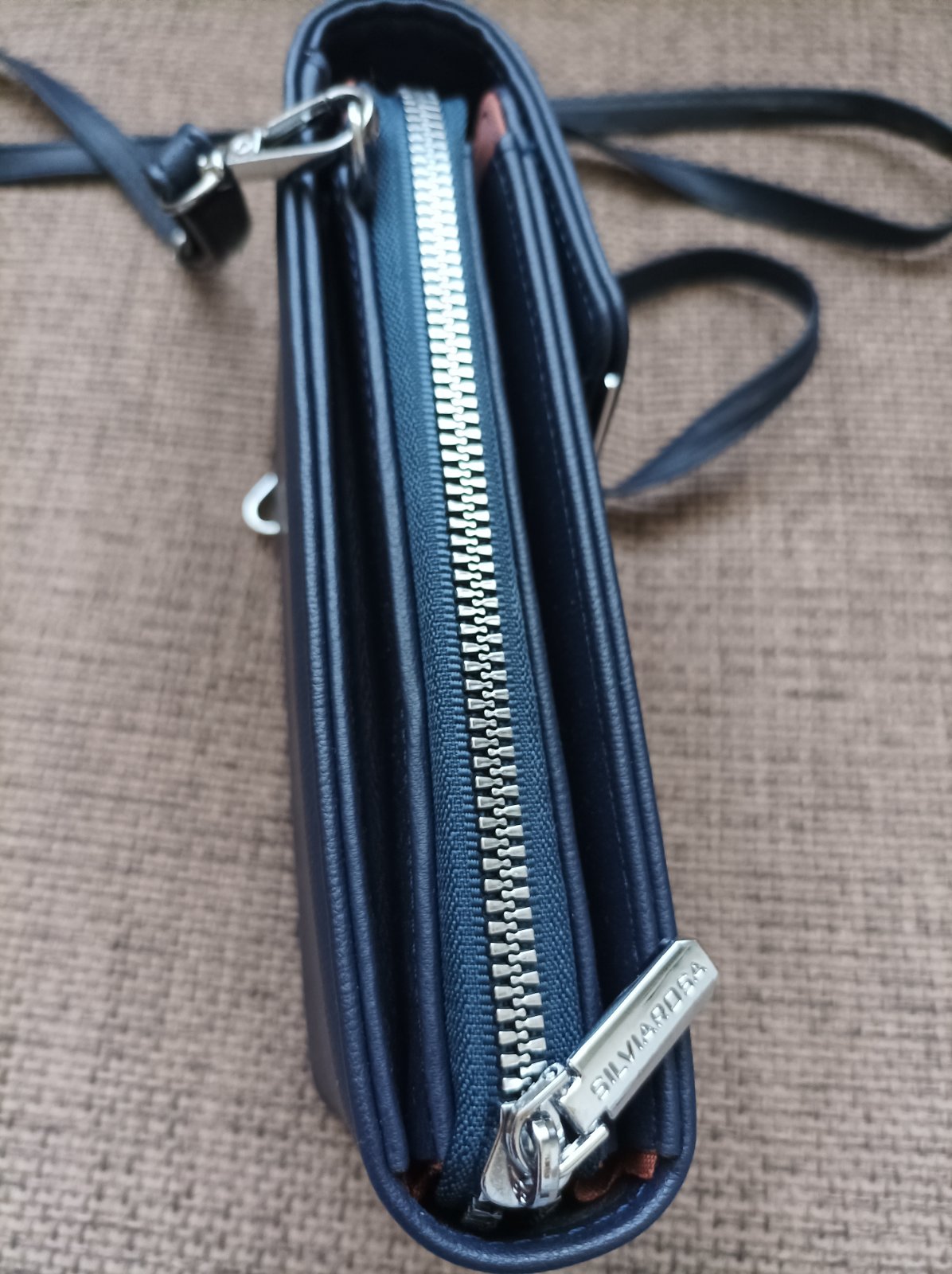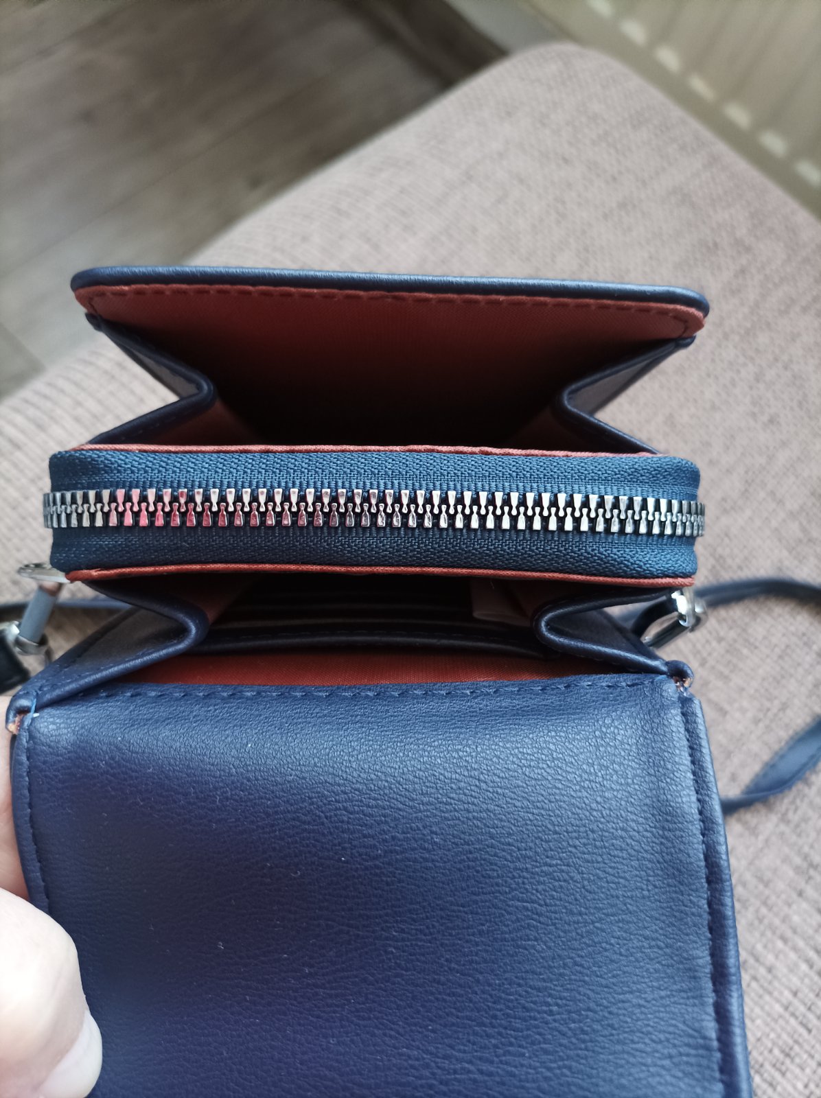 min. užívaný veľmi praktický pomocník,2 kapsy so zipsom / na doklady,peniaze,karty/,stred umývateľný,bočné vrecká na telefón,hrebeň,kozmetiku a pod.,top stav,na boku cvočky,čím sa dá veľkosť regulo...