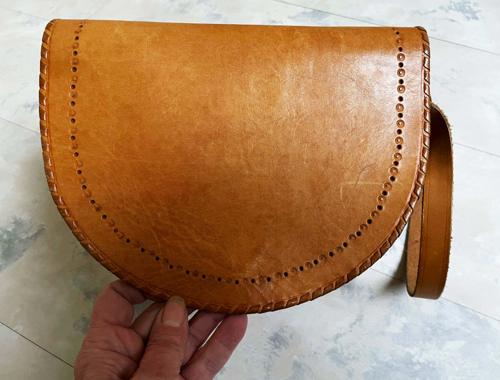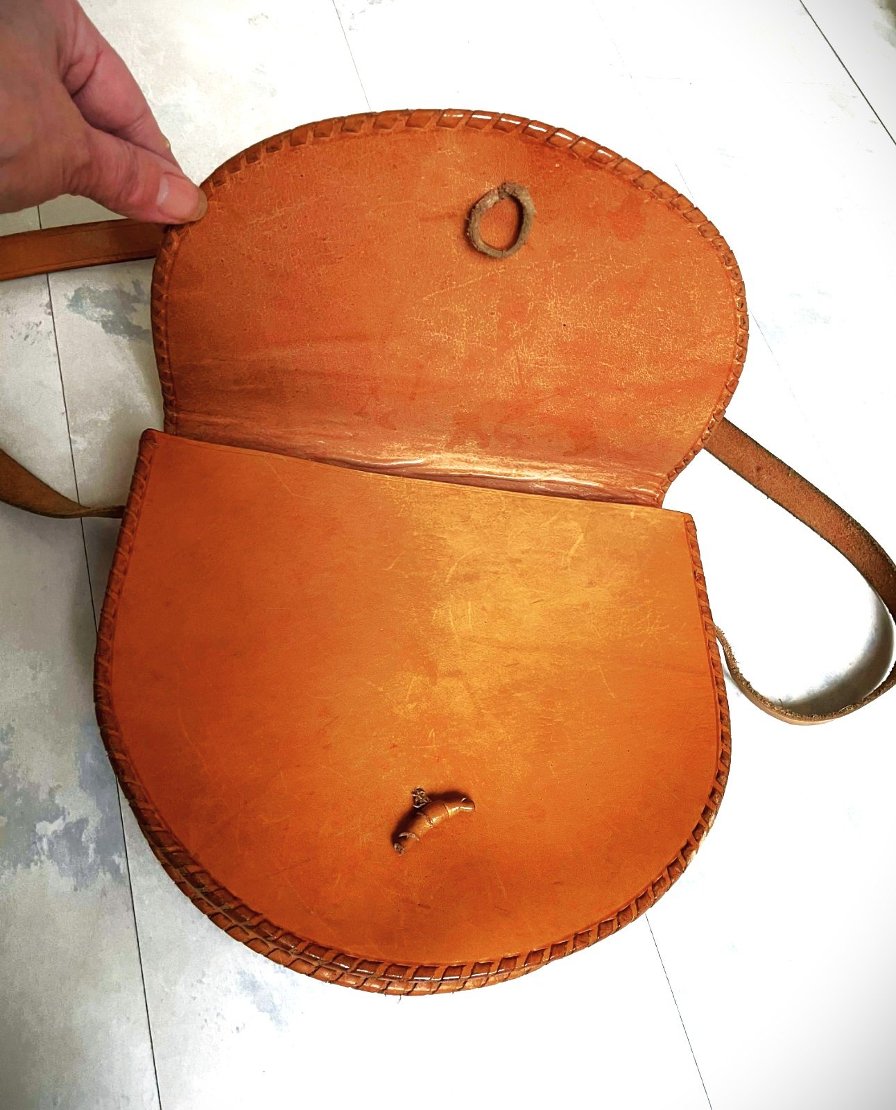 málo nosená ručne robená kožená brašňa z pravej kože, ktorá je výrobkom UĽUV-u,ide o tradičnú slovenskú remeselnú prácu z pevnej, prírodnej hovädzej kože
