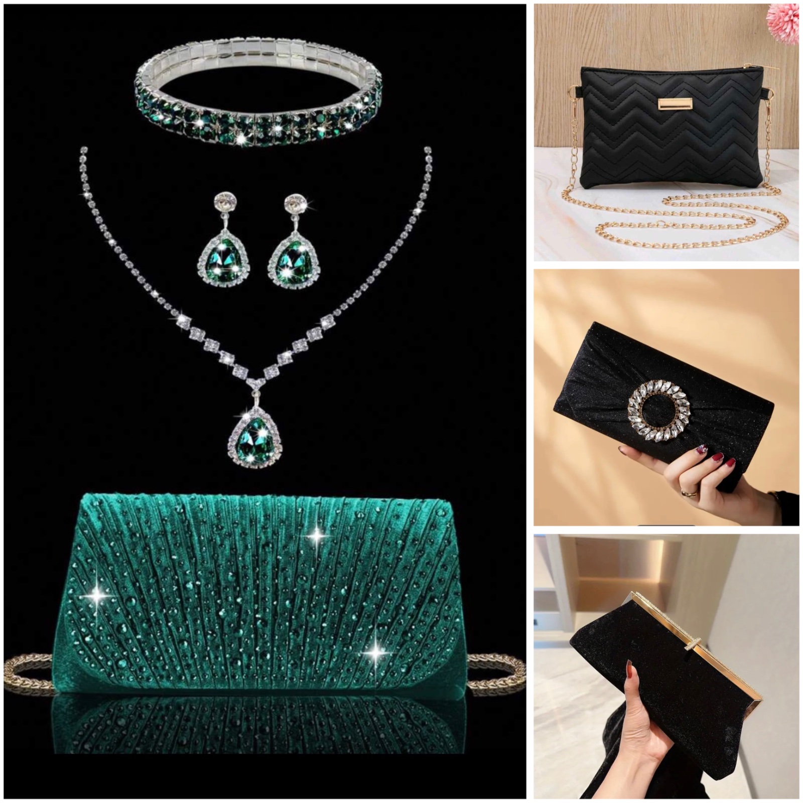 Suprava smaragdova kabelka, náušnice, náramok a náhrdelník s retiazkou cena 17,00€
