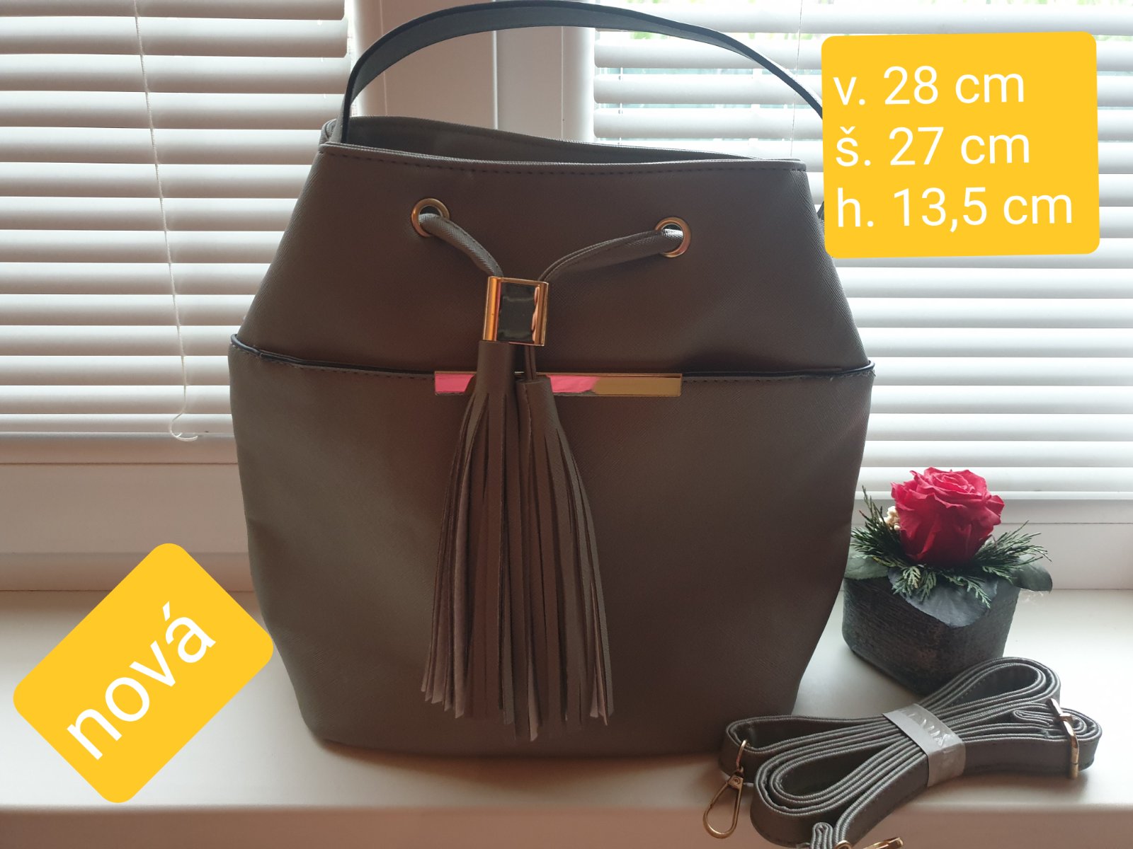 Nová šedá kabelka v tvare vreca.