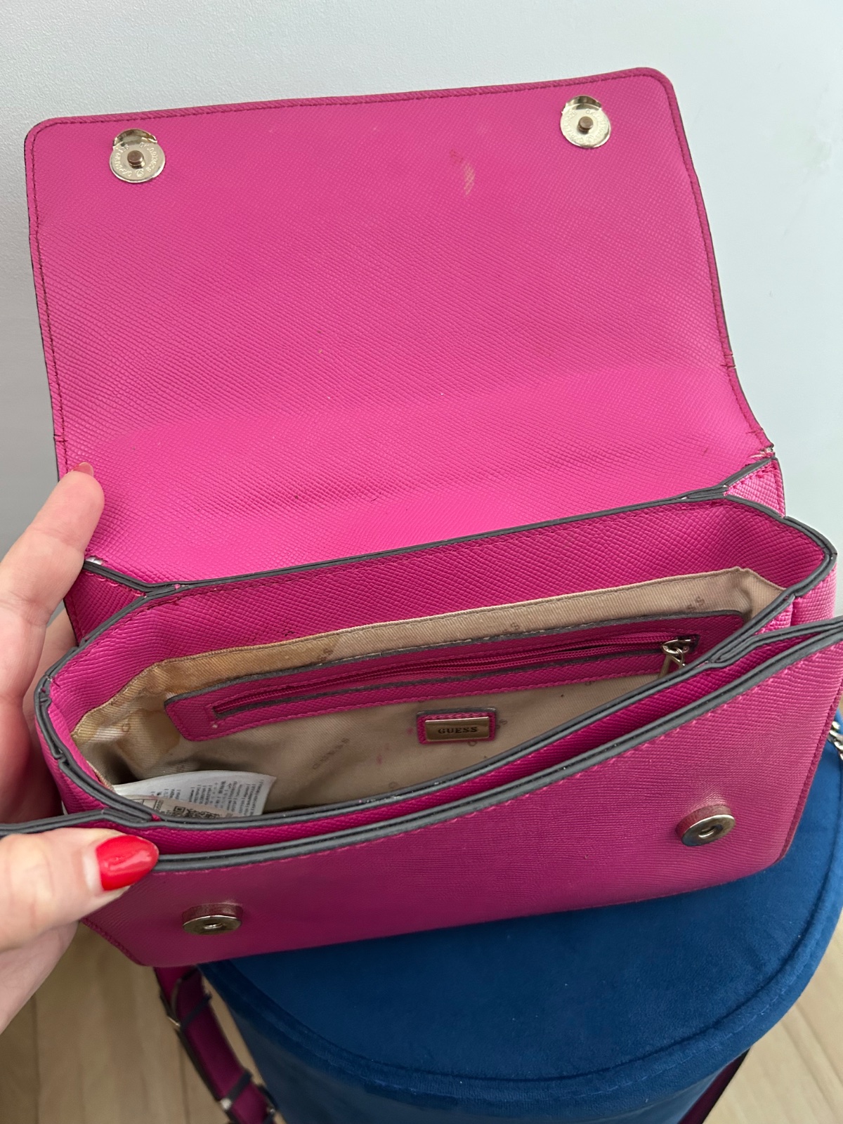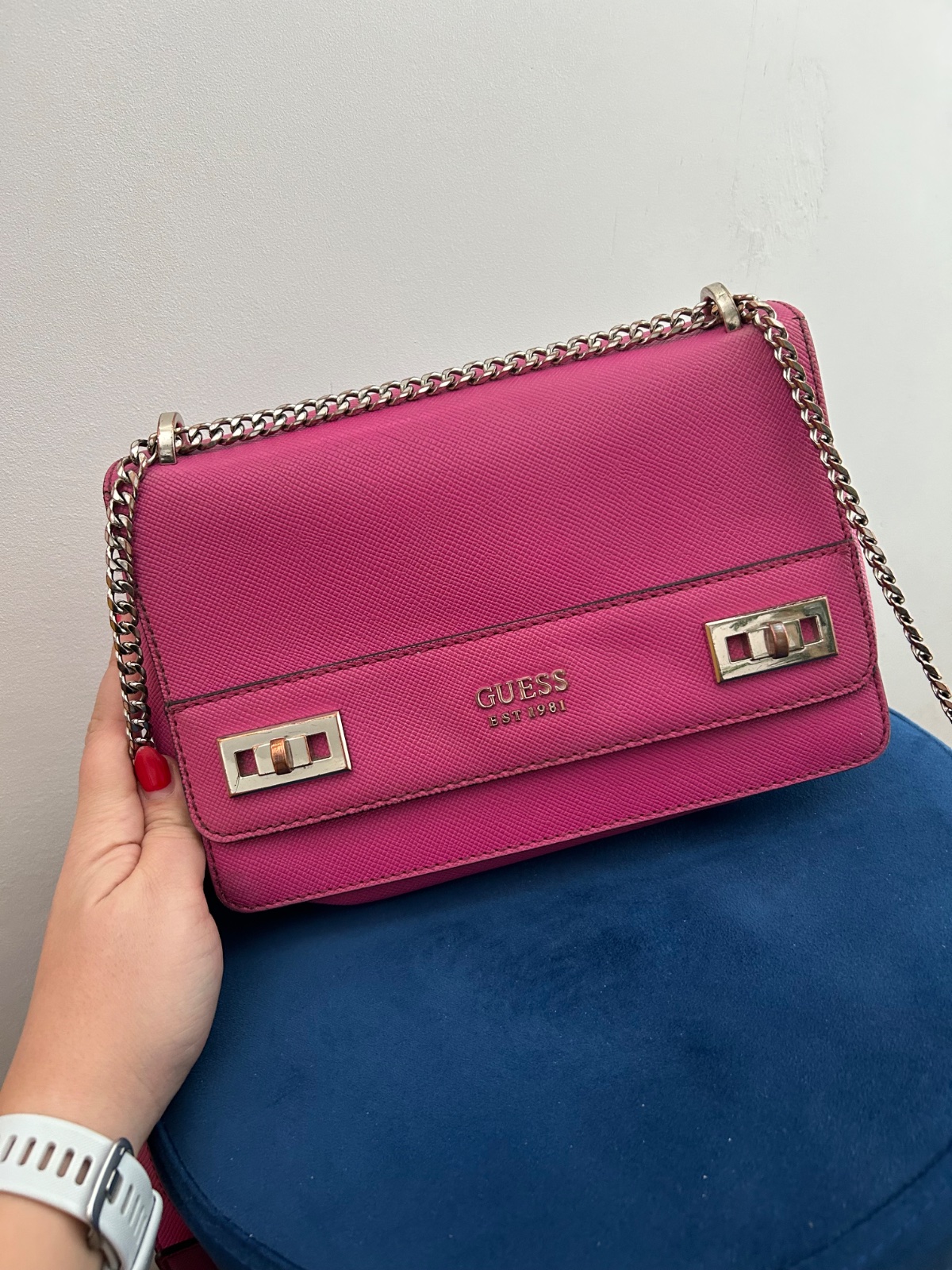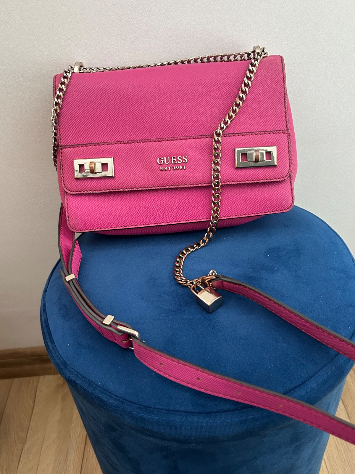 Krásna veľká cyklamenova kabelka,originál Guess kupovaná v Dubaji. Pôvodná cena veľmi vysoká.Kabelka bola nosená čo je aj vidno.Má poškodenia,ktoré ale opraví šikovná krajčírka.Este urobí parádu 😊 ...