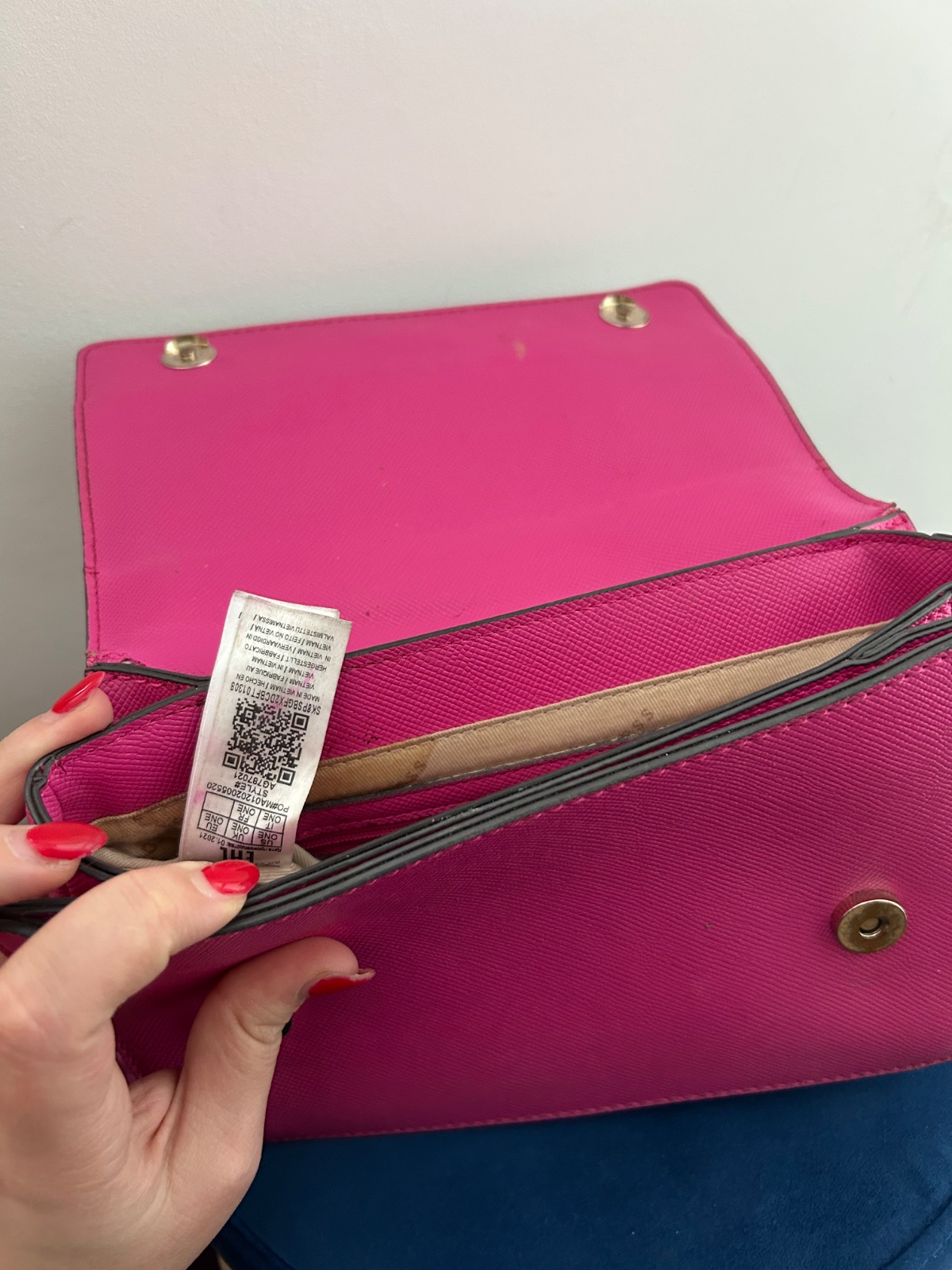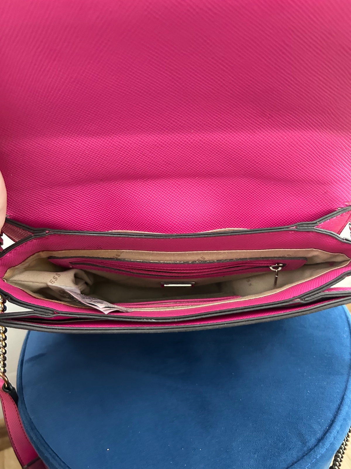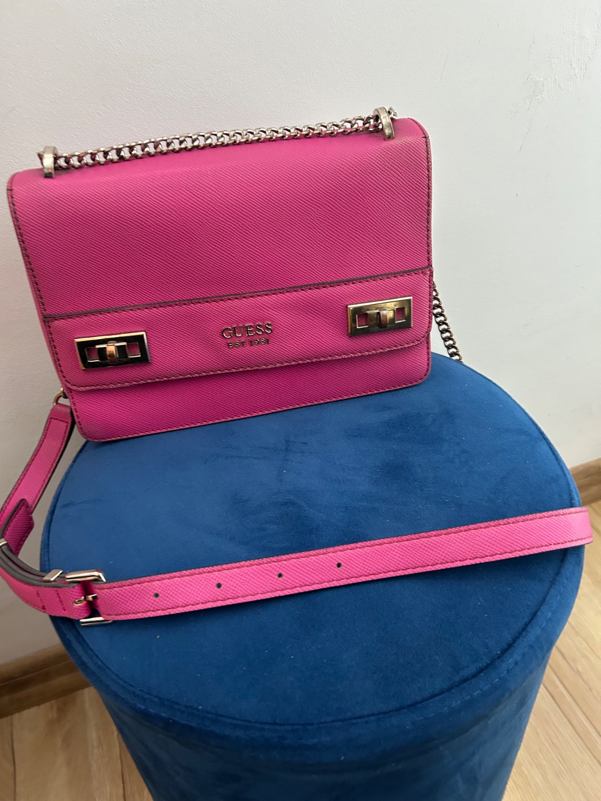 Krásna veľká cyklamenova kabelka,originál Guess kupovaná v Dubaji. Pôvodná cena veľmi vysoká.Kabelka bola nosená čo je aj vidno.Má poškodenia,ktoré ale opraví šikovná krajčírka.Este urobí parádu 😊 ...