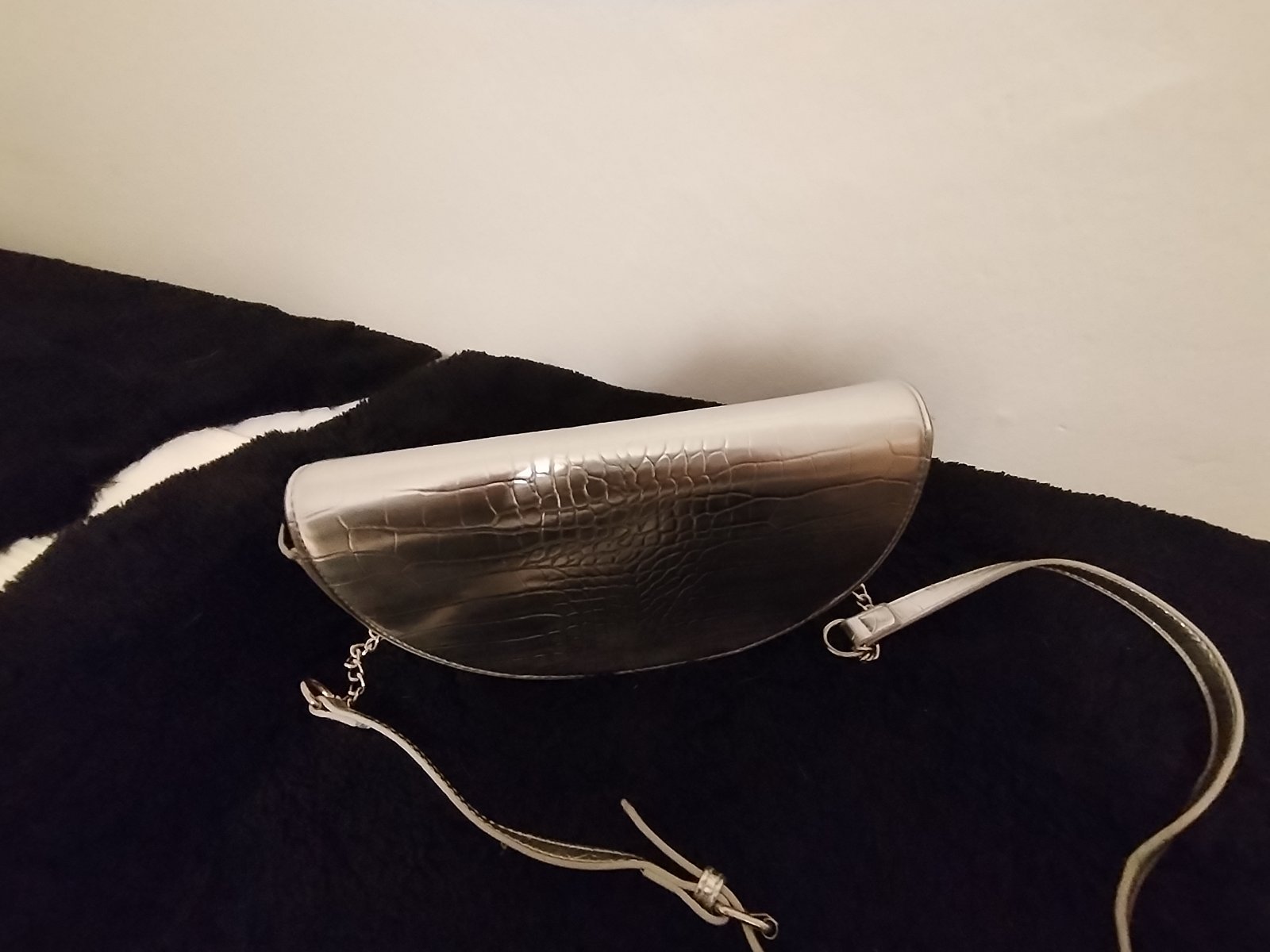 Krásna nová strieborná kabelka, crossbody.