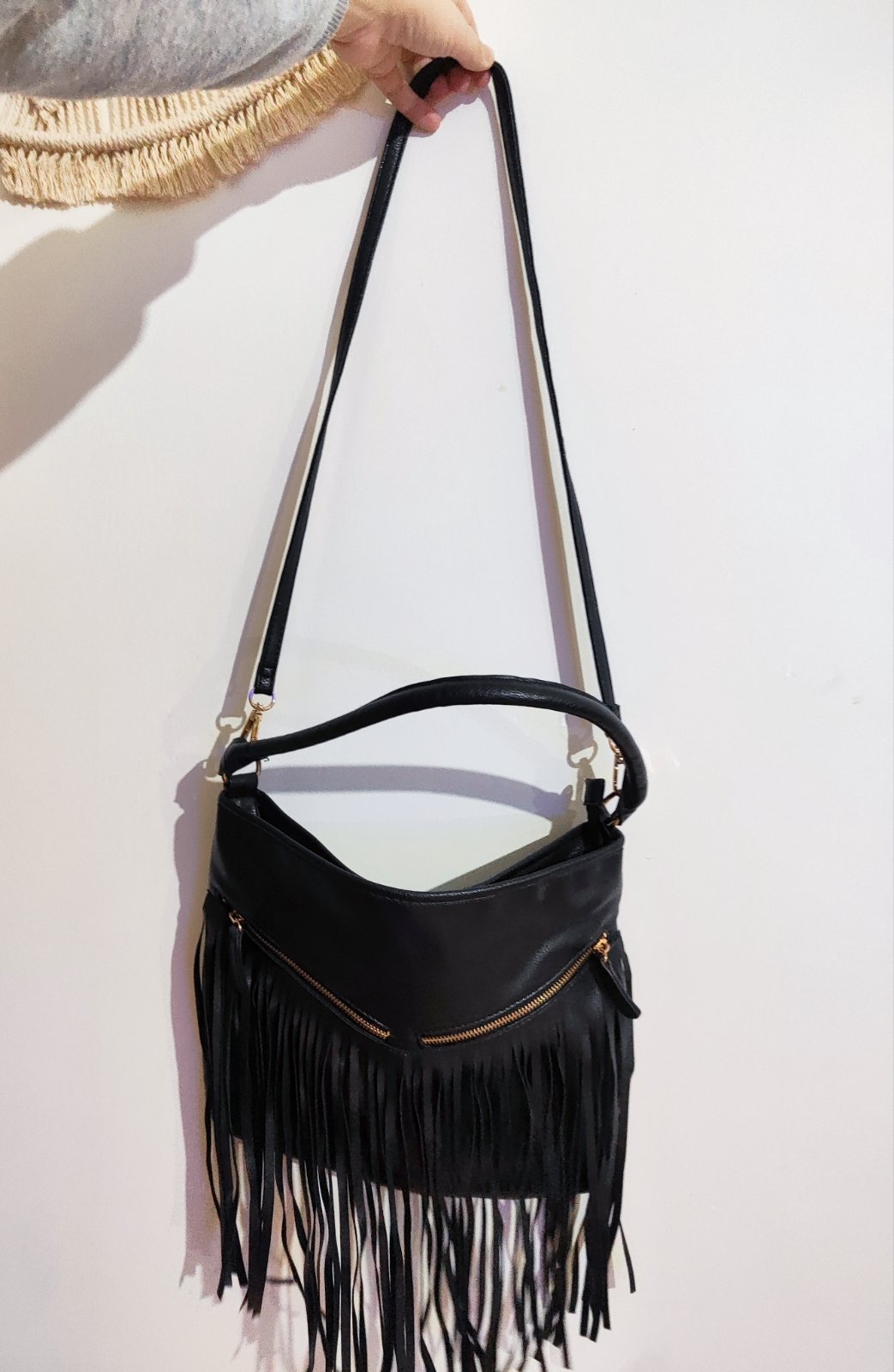 Nosená nie veľmi popruh je vnútri popraskaný. Pri nosení nevidno všetko nafotené.