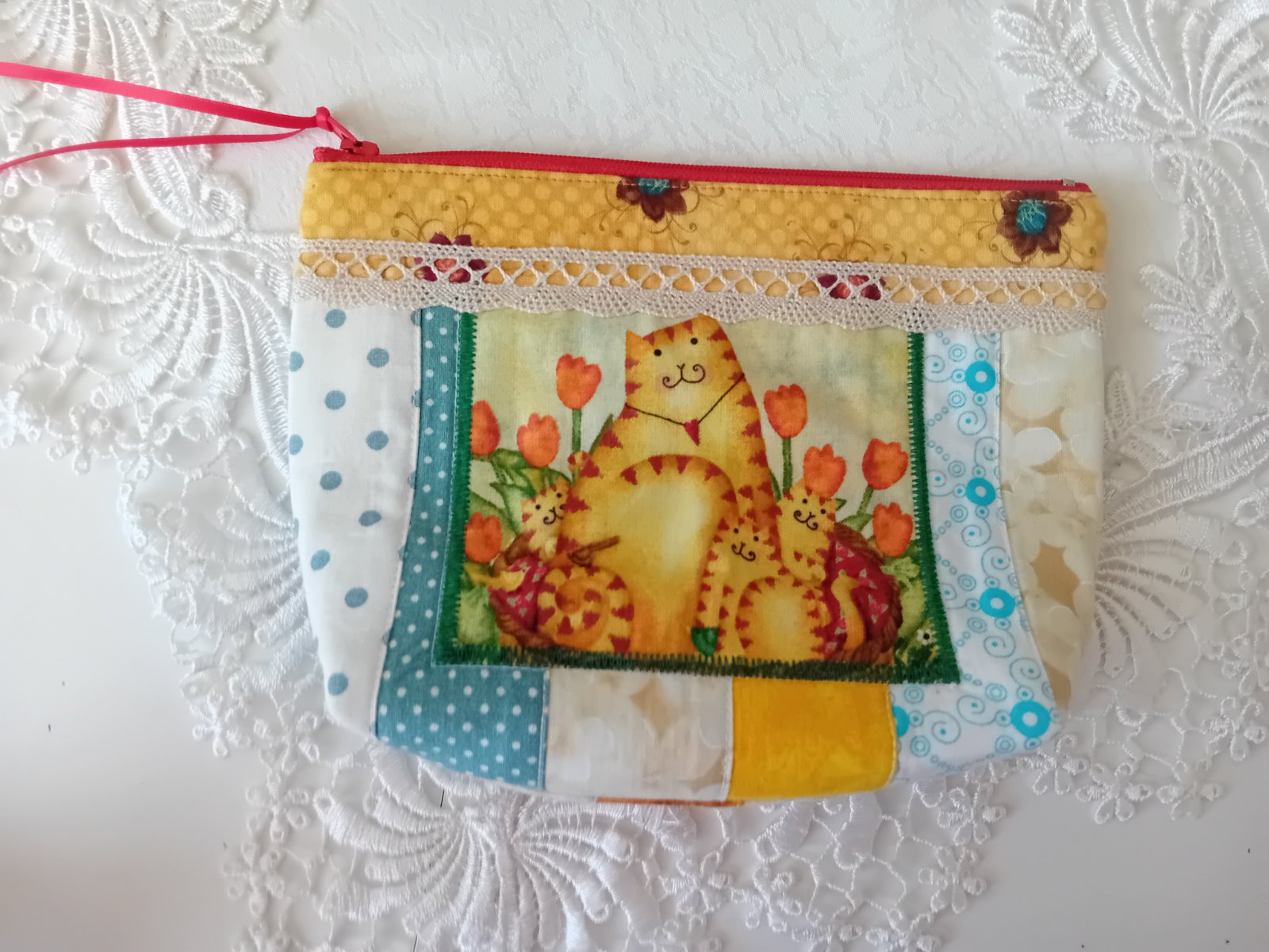 Kozmetická taštička / taštička na poklady - MAČIČKY: 19cm šírka x 13,5cm výška 4,5cm šírka spodnej časti.