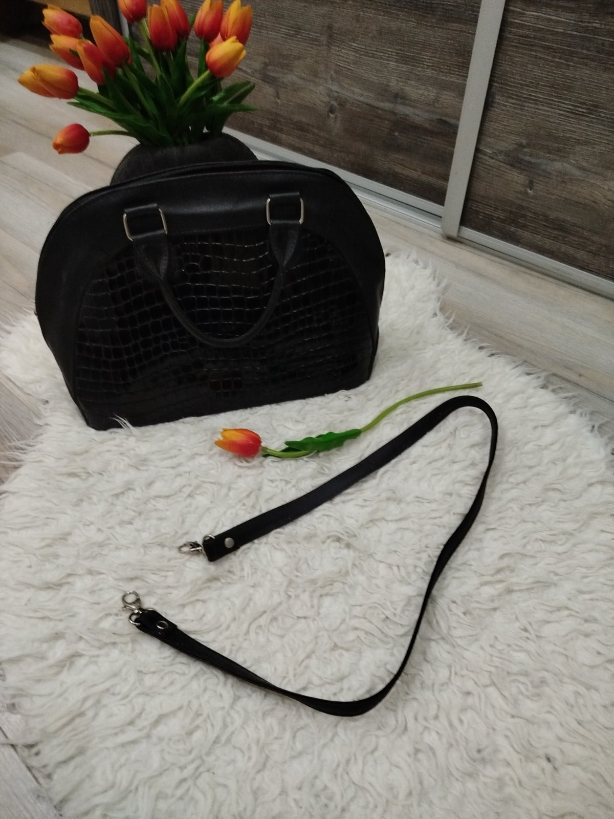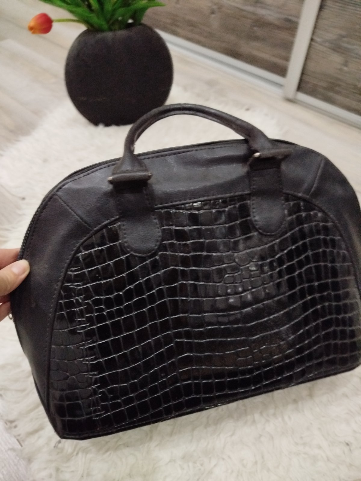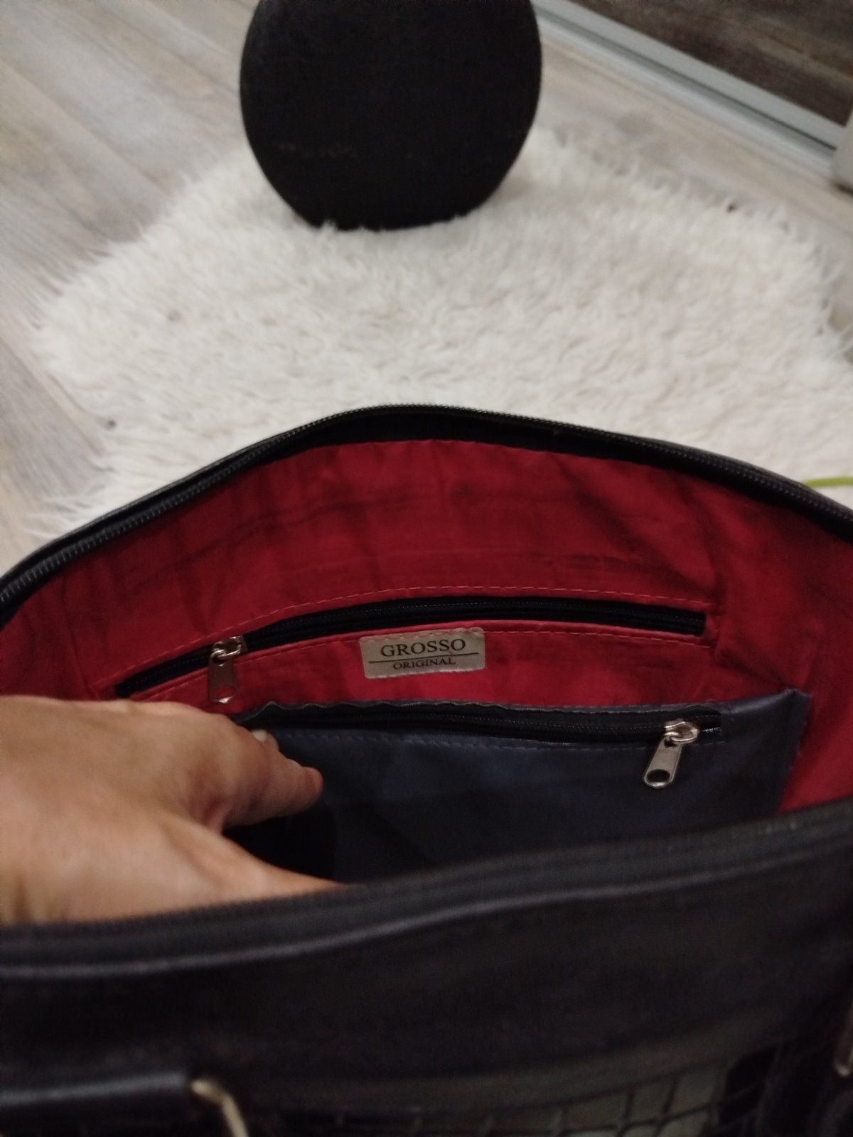 Nosená do práce, vo dobrom stave akurát jedna chybička-rúčky popíjali, inak je ok, vnútro červené, má aj retiazky na plece