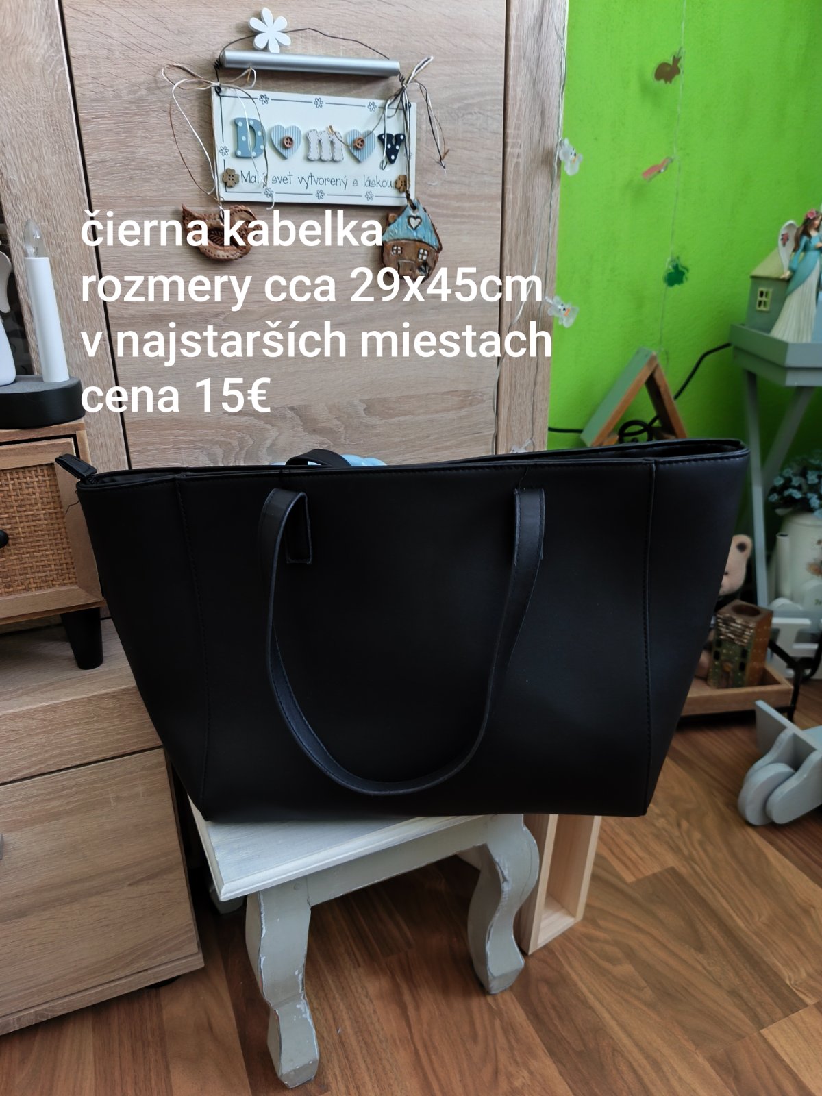 Dámska čierna kabelka, rozmery cca 29x45cm merané v najstarších miestach, top stav.
