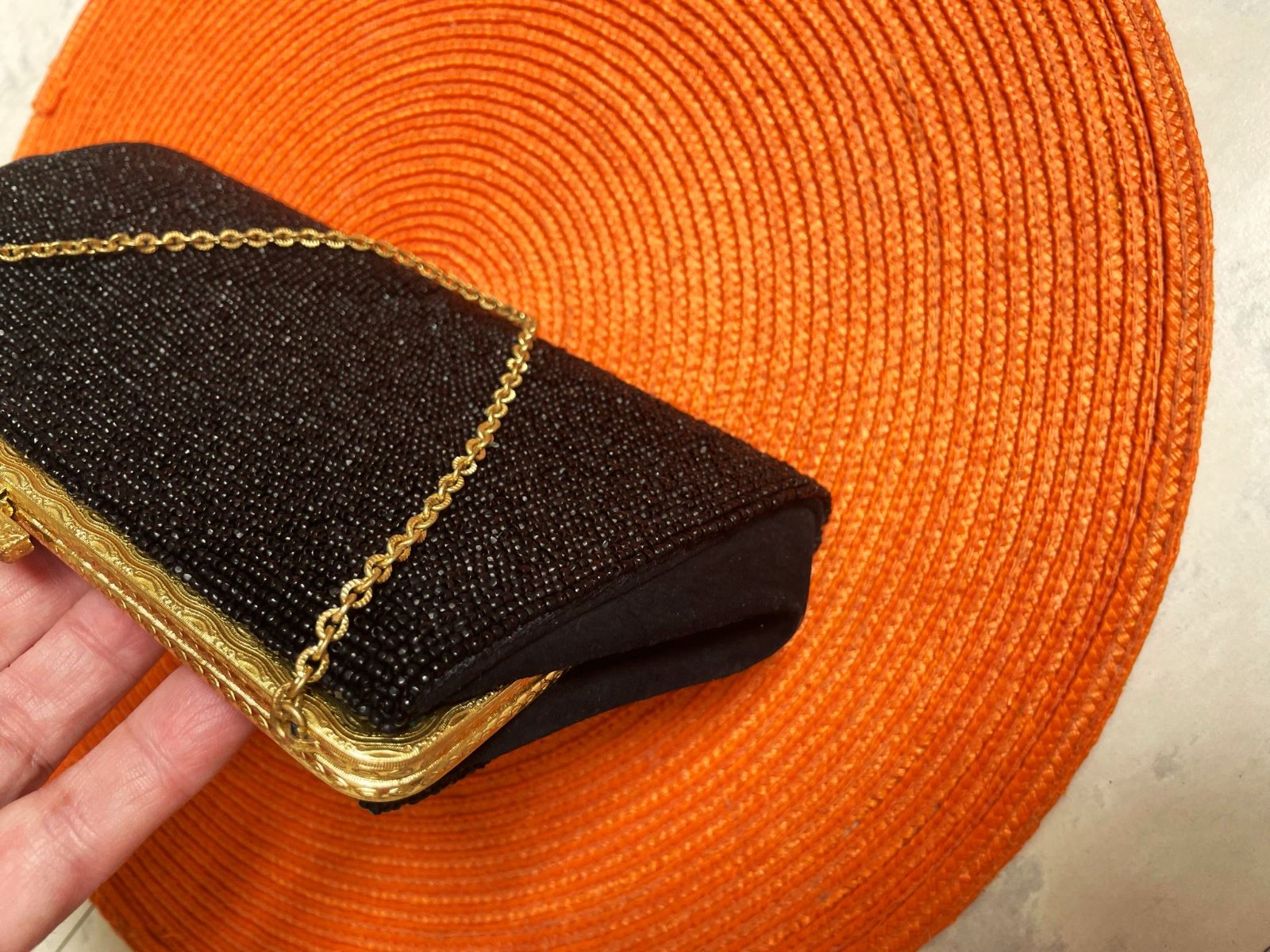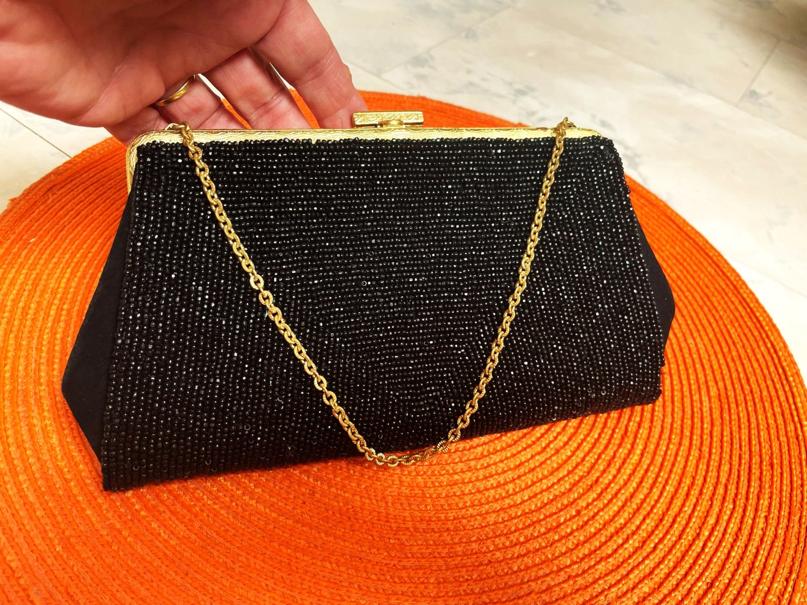 luxusná nadčasová,večne aktuálna vkusná malá kabelka,hand -made,husto vyšívaná drobnými korálkami,v špičkovej kvalite ,made in Czechoslovakia