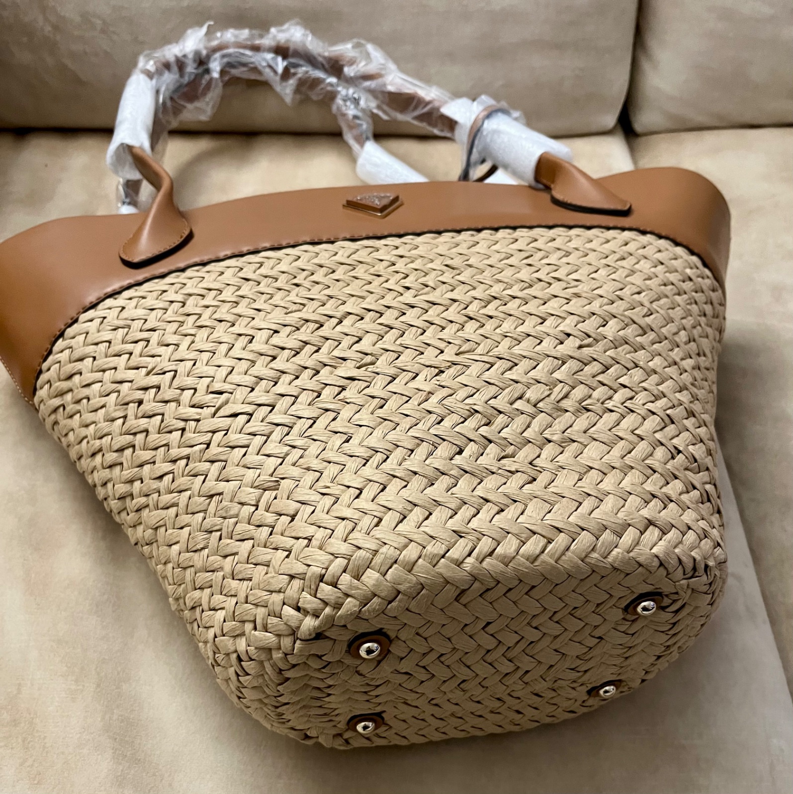 Pale gold hardware.