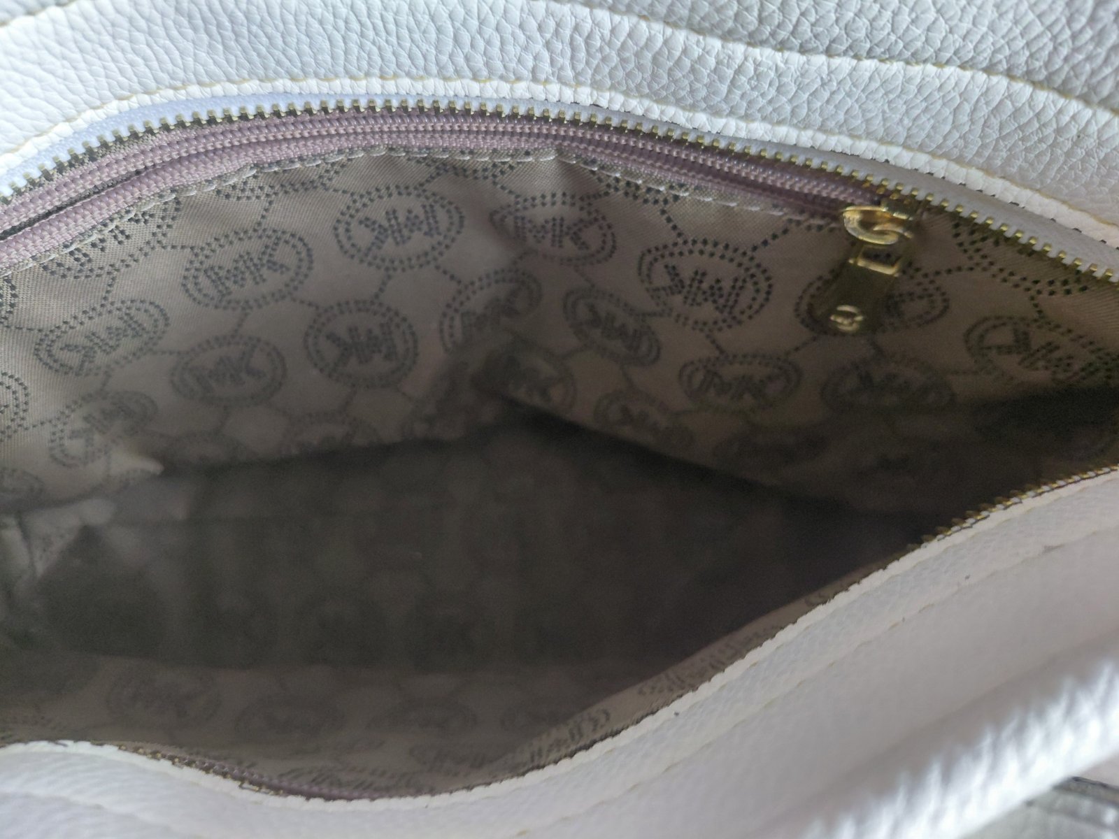 Michael Kors shopper kabelka veľmi praktický priestranný kúsok pohodlné nosenie na ramene farba: biela so strieborným kovaním materiál: koža šírka na spodku 28 cm, šírka na vrchu 38 cm, výška 37 cm
