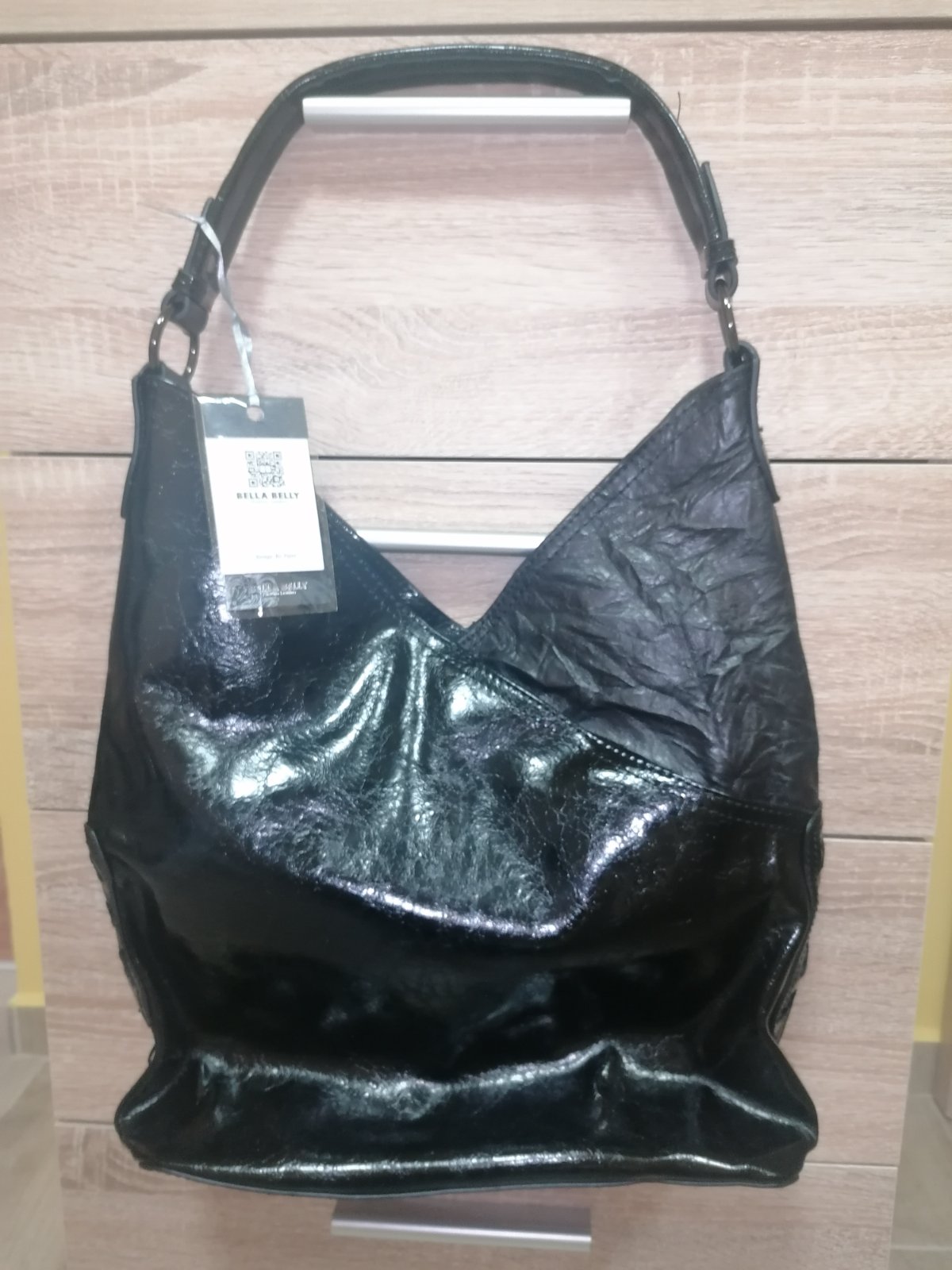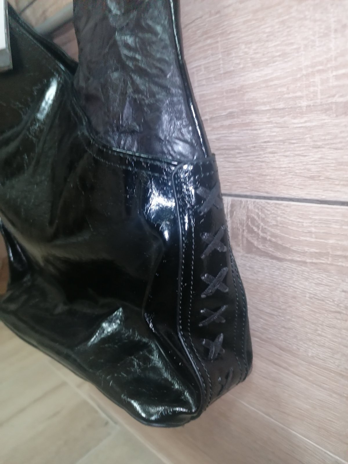Čierna lakovaná kabelka kombinovaná s čiernou krajkou. Veľkosť 15x12x5cm.(šírka výška, hĺbka).
