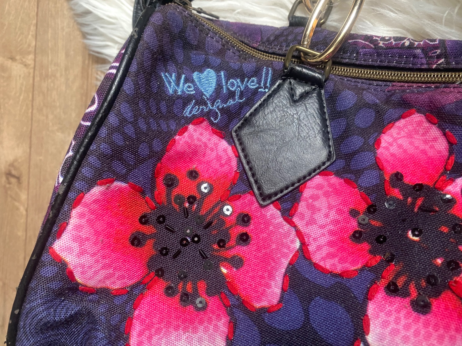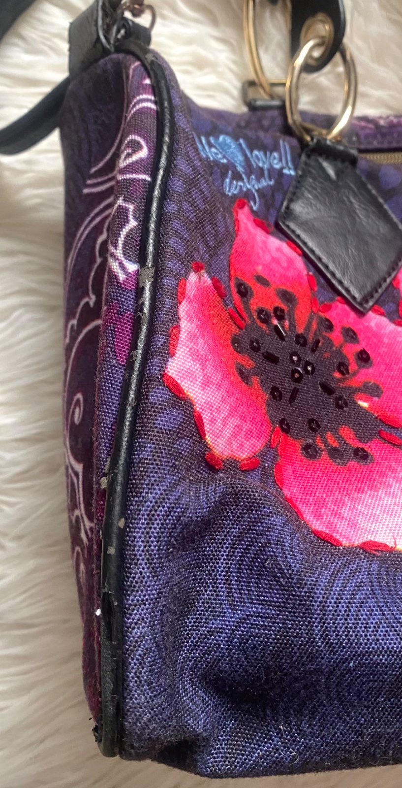 Predám málo používanú crossbody kabelku desigual, veľmi dobrý stav, akurát na jednom mieste malé ošuchnutie, je odfotené na poslednej fotke