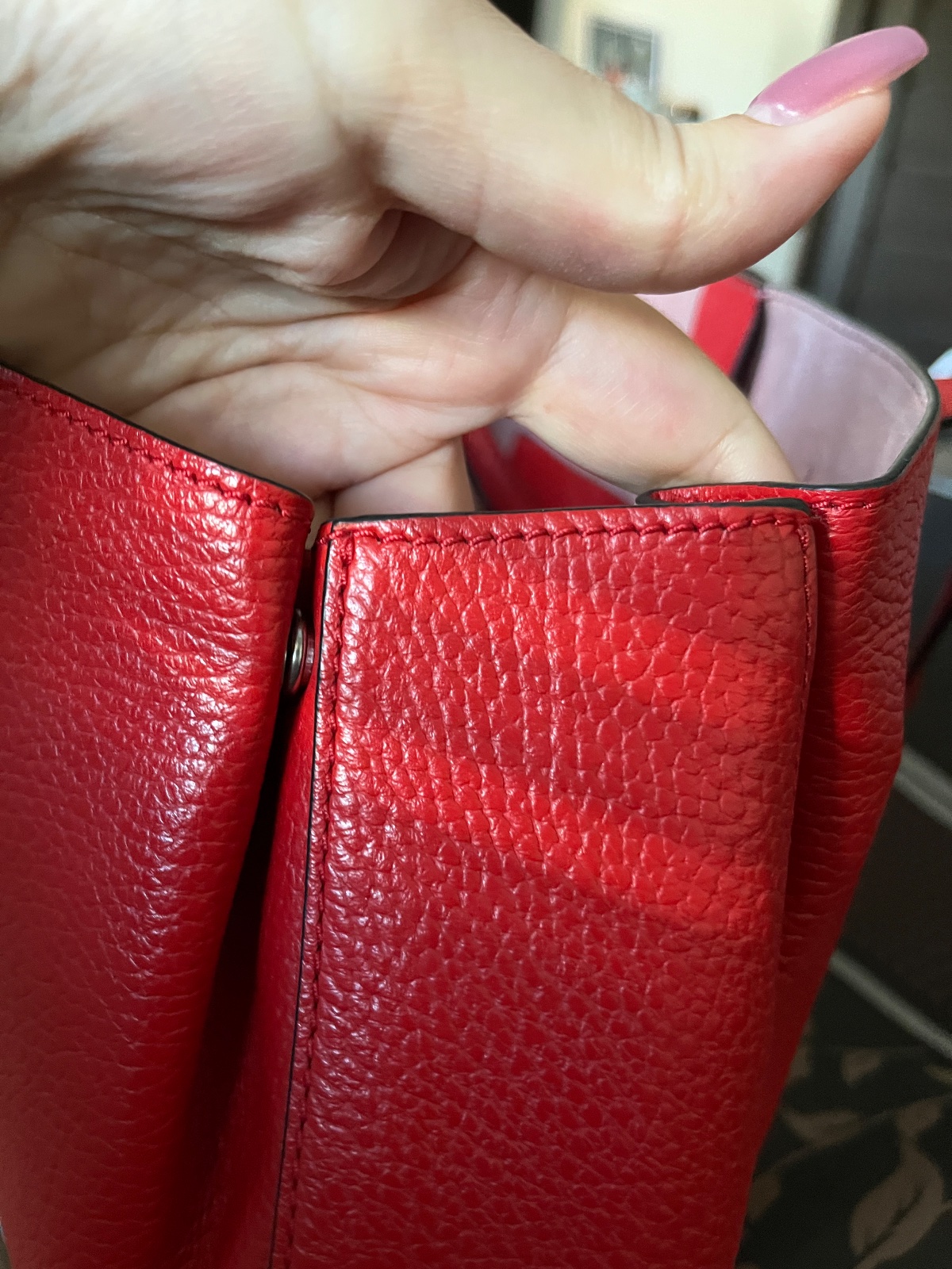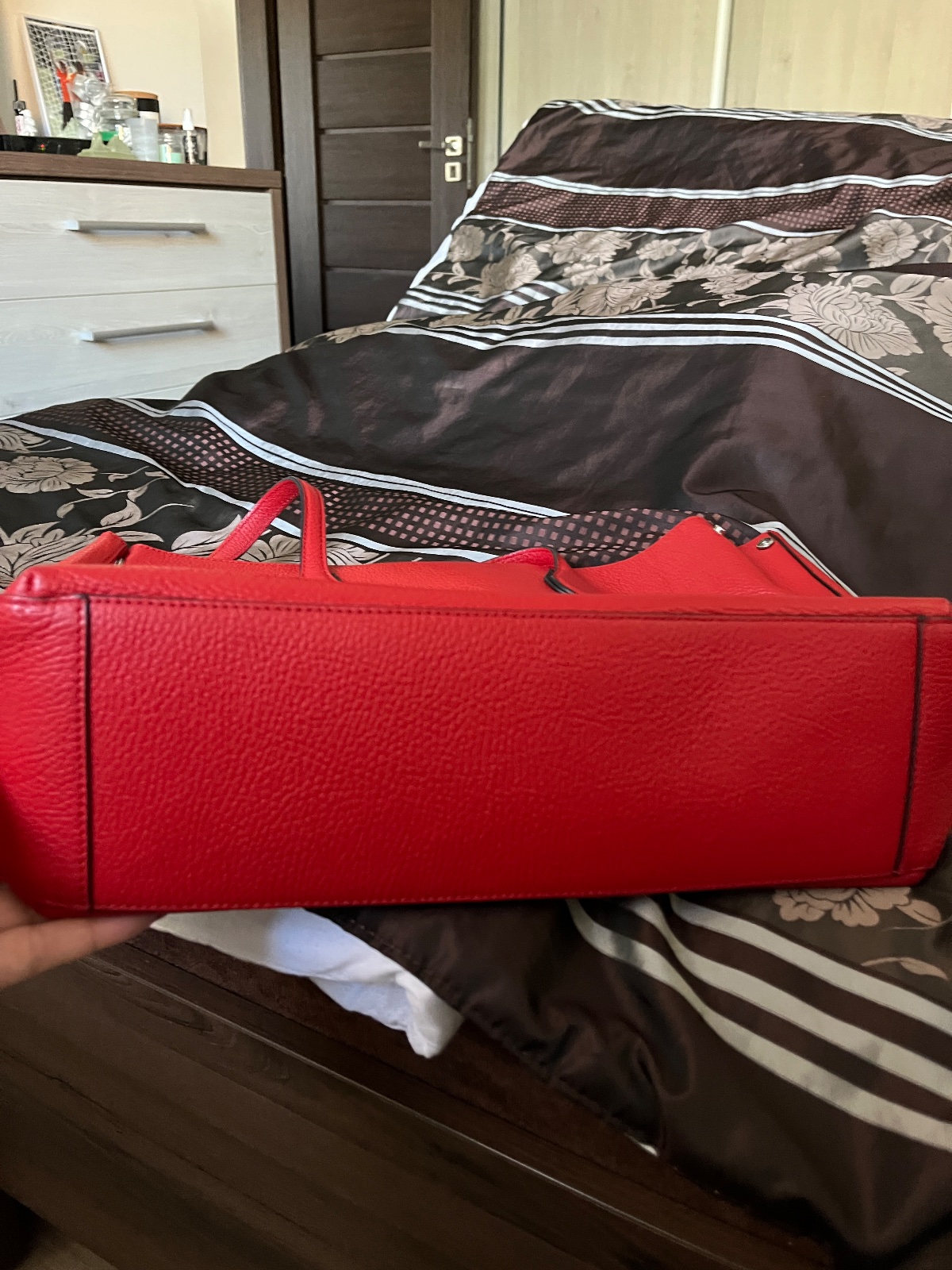 V super stave, iba z vnutra ma male skvrny.Da sa zvacsit, zmensit.Krasna cervena farba. Je bez dustbagu. V ponuke aj dalsie coccinelle kabelky