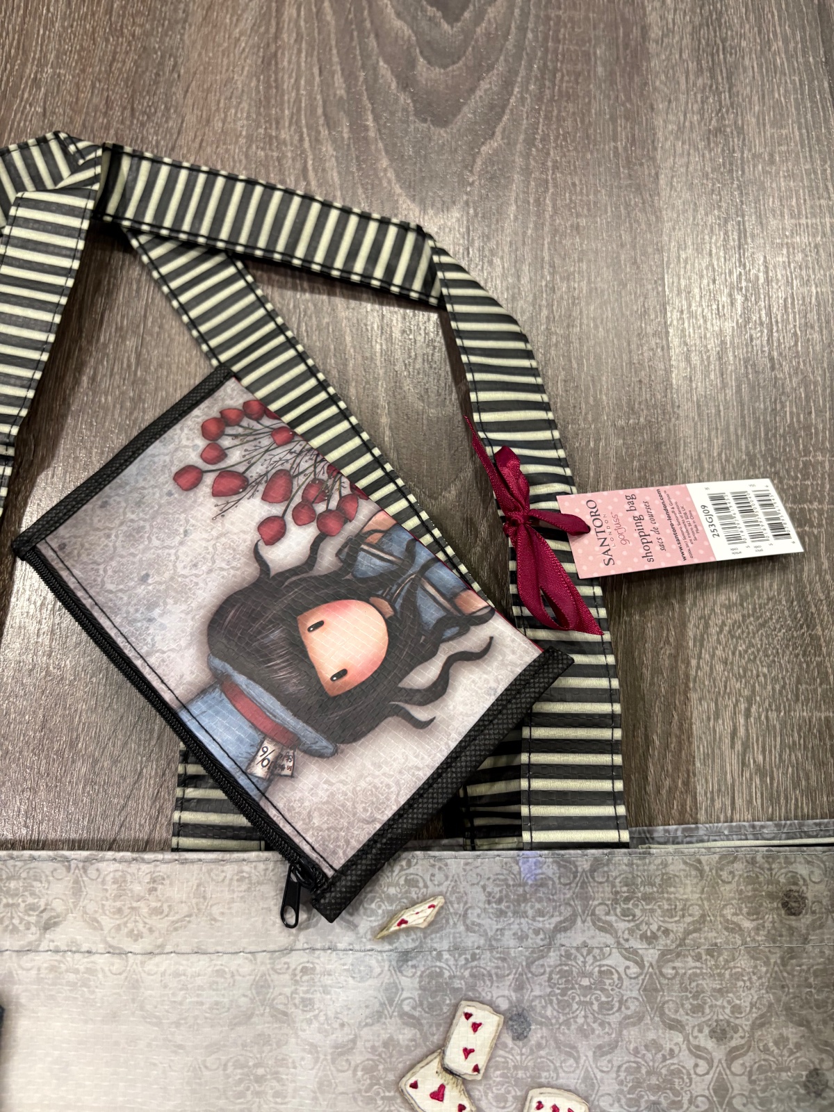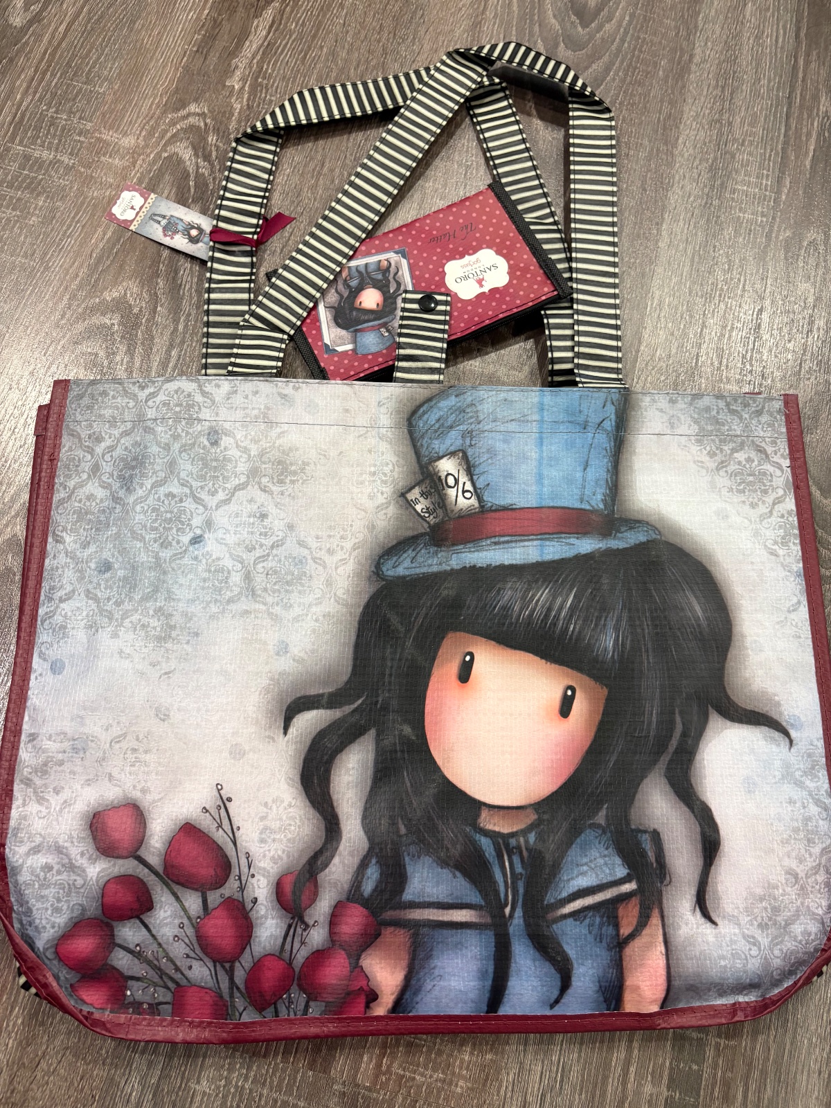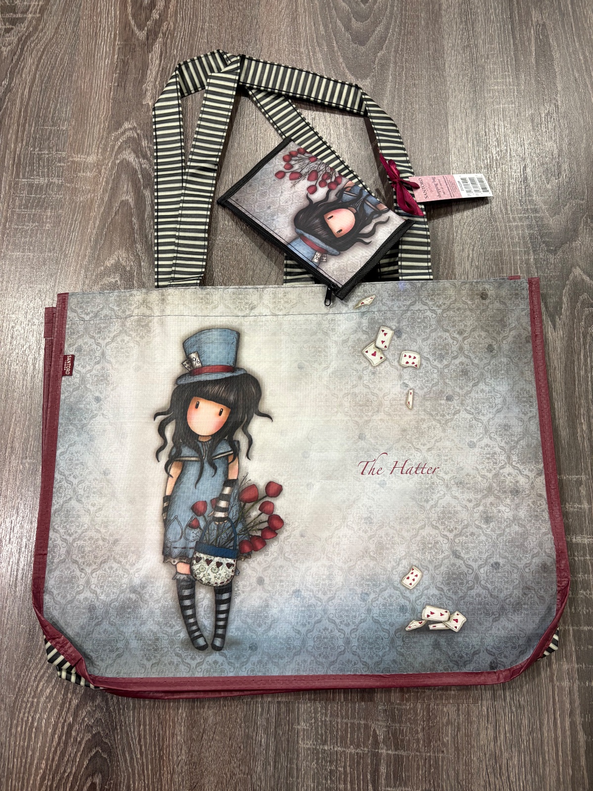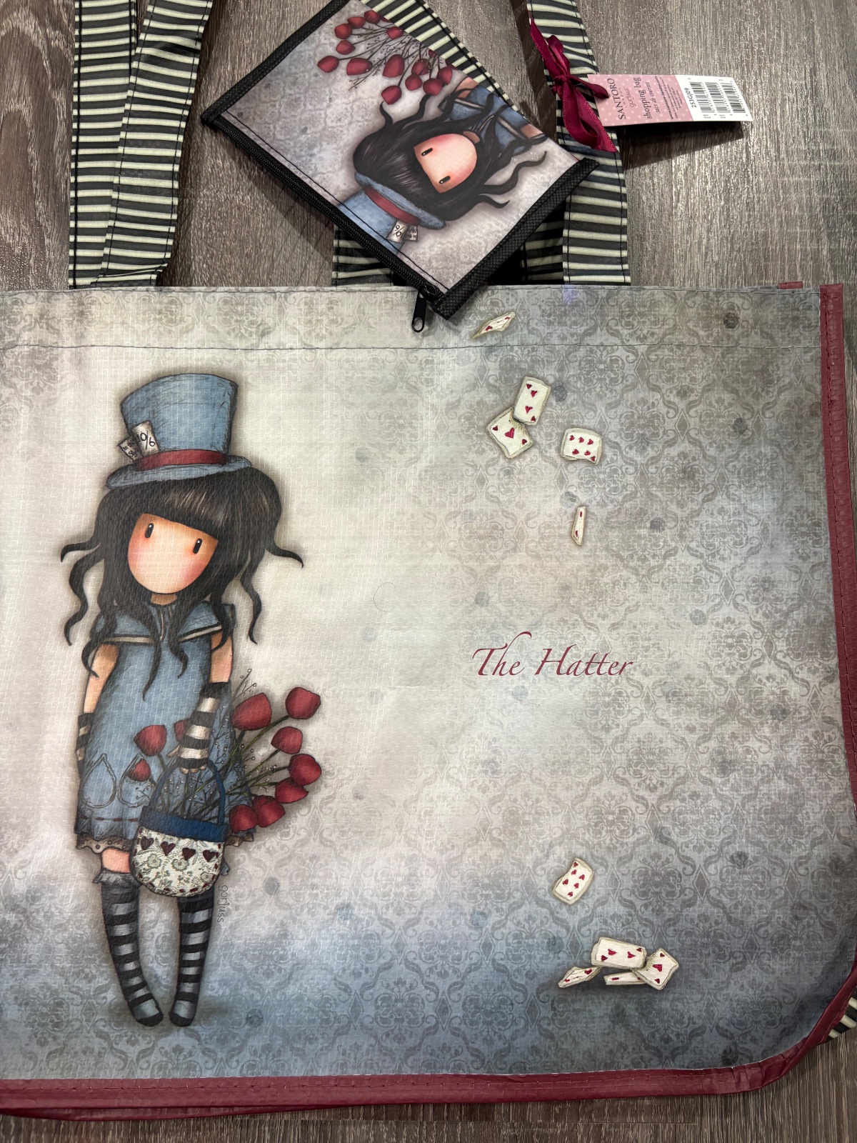 Praktická a priestranná nákupná taška s motívom The Hatter z kolekcie Gorjuss od Santoro London. Vnútri nájdete nápaditú kapsičku s rovnakým motívom, do ktorej si môžete uschovať mince, bankovky alebo iné drobnosti.