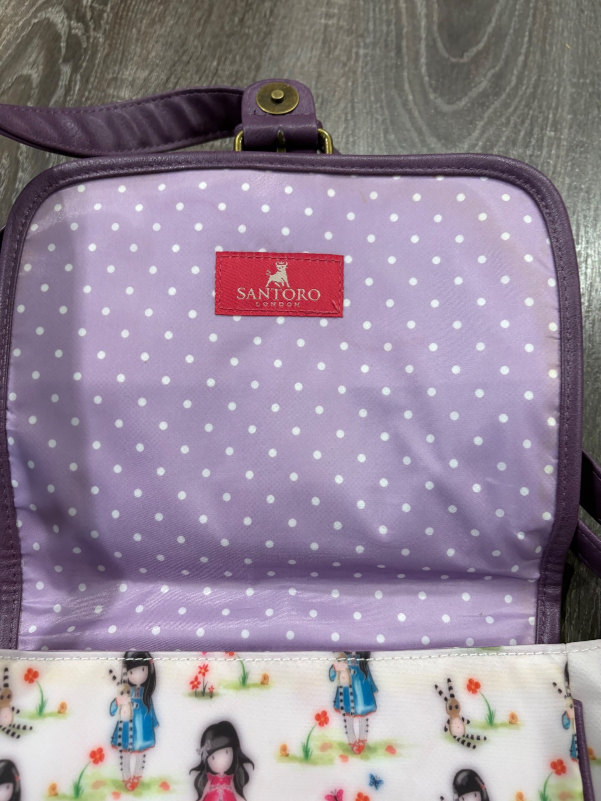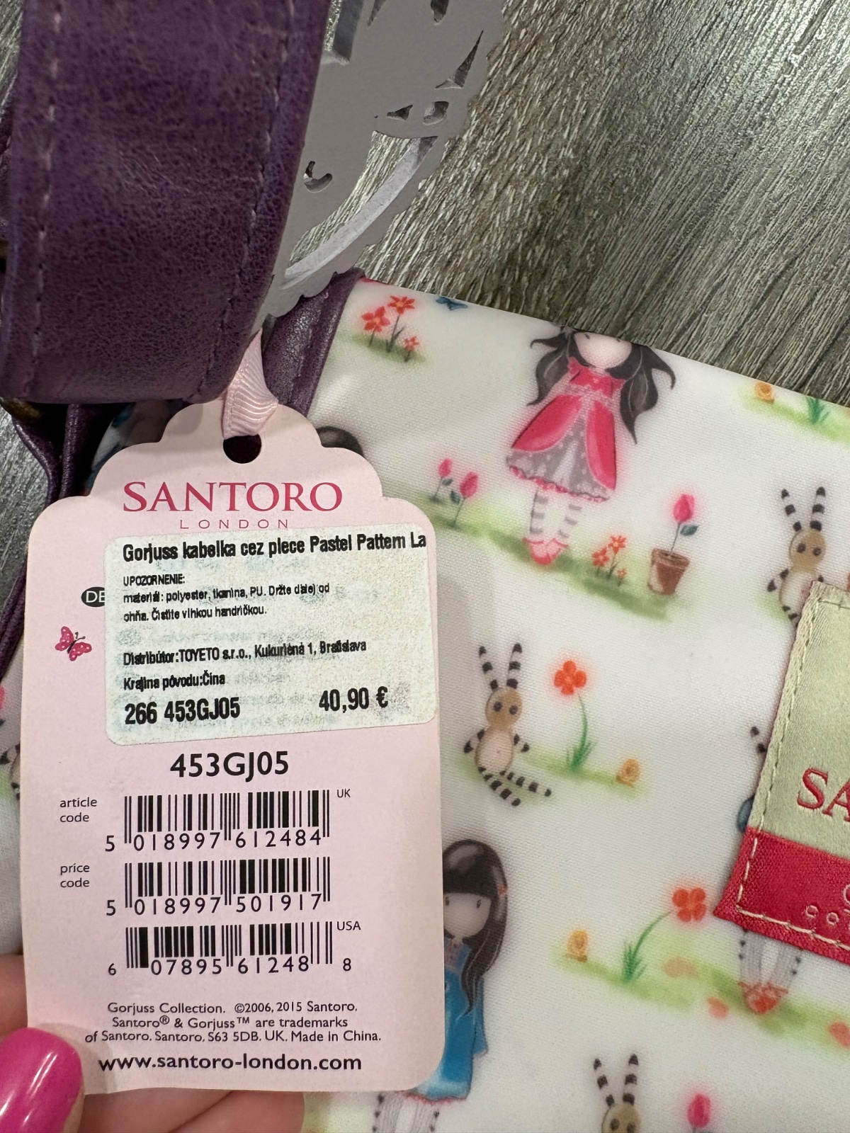 6p8k.Nádherná menšia kabelka Ladybird Pastel z kolekcie Gorjuss značky Santoro London. Vo vnútri tejto tašky cez rameno nájdete kapsu na zips (napr. na peňaženku) a otvorenú kapsičku na telefón. Popruh je nastaviteľný. Zapínanie má kabelka na magnetický patent s falošnou prackou. Kabelku zdobí odnímateľný plstený prívesok na stužke.