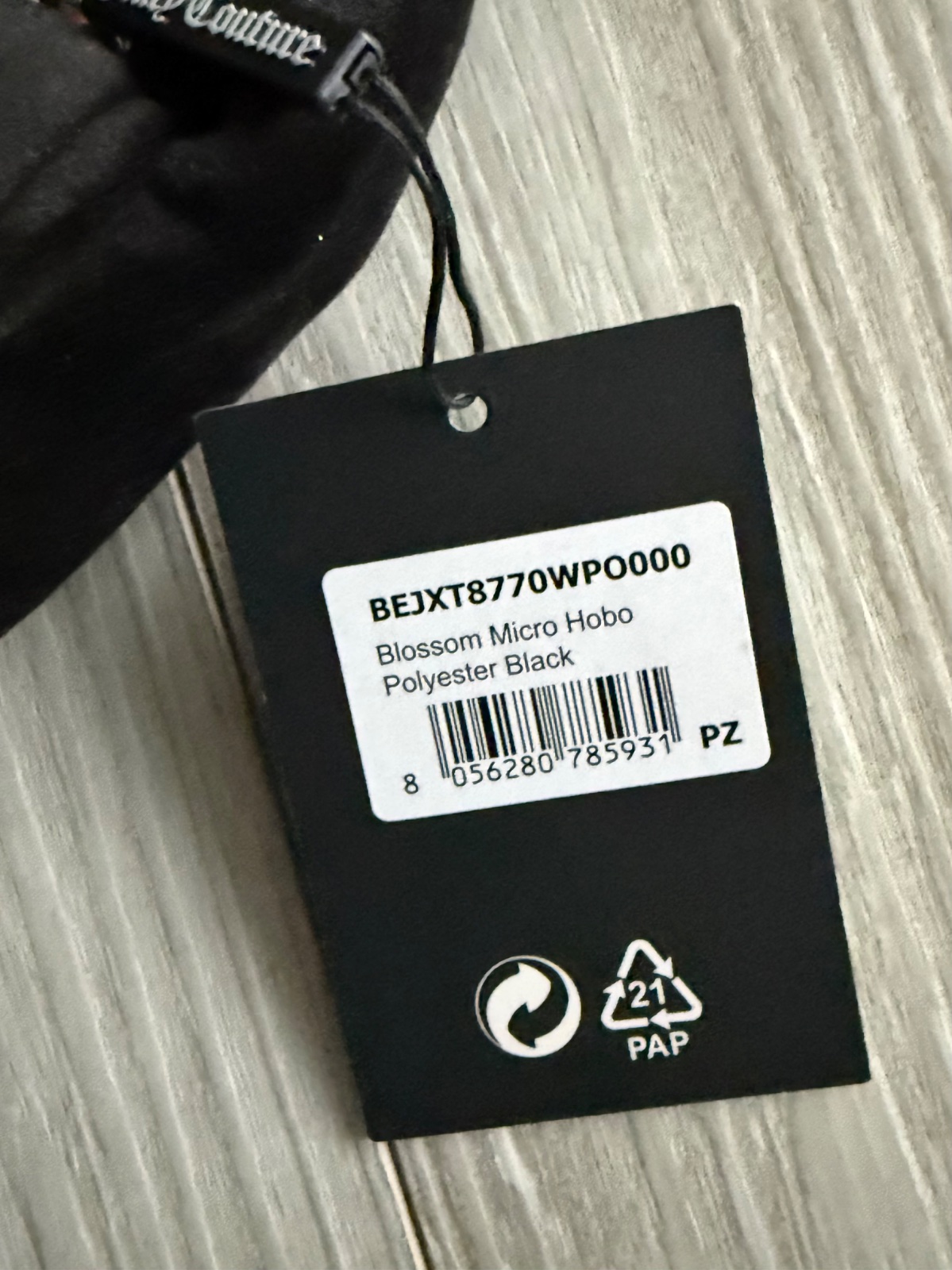 Krásna malá zamatová kabelka Juicy Couture. Čierna farba, strieborné detaily. Nová s visačkou. PC:120,-€