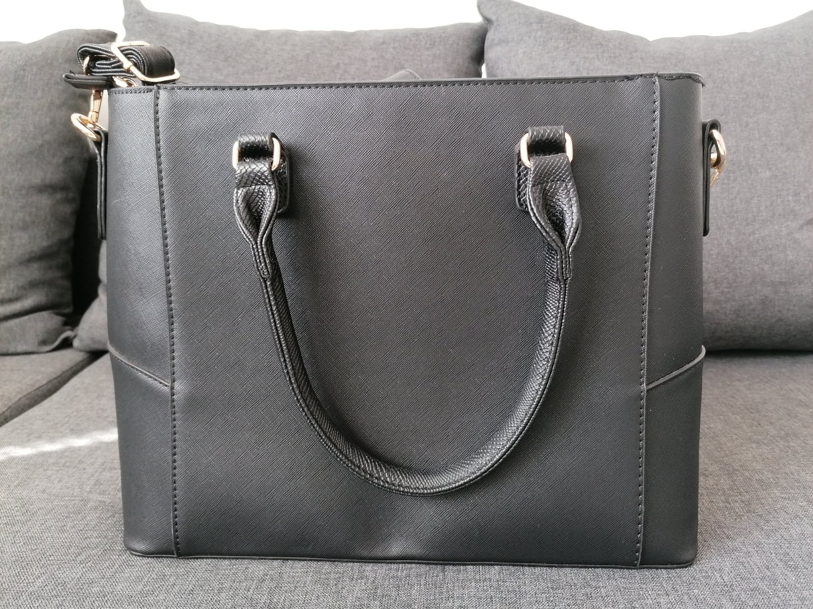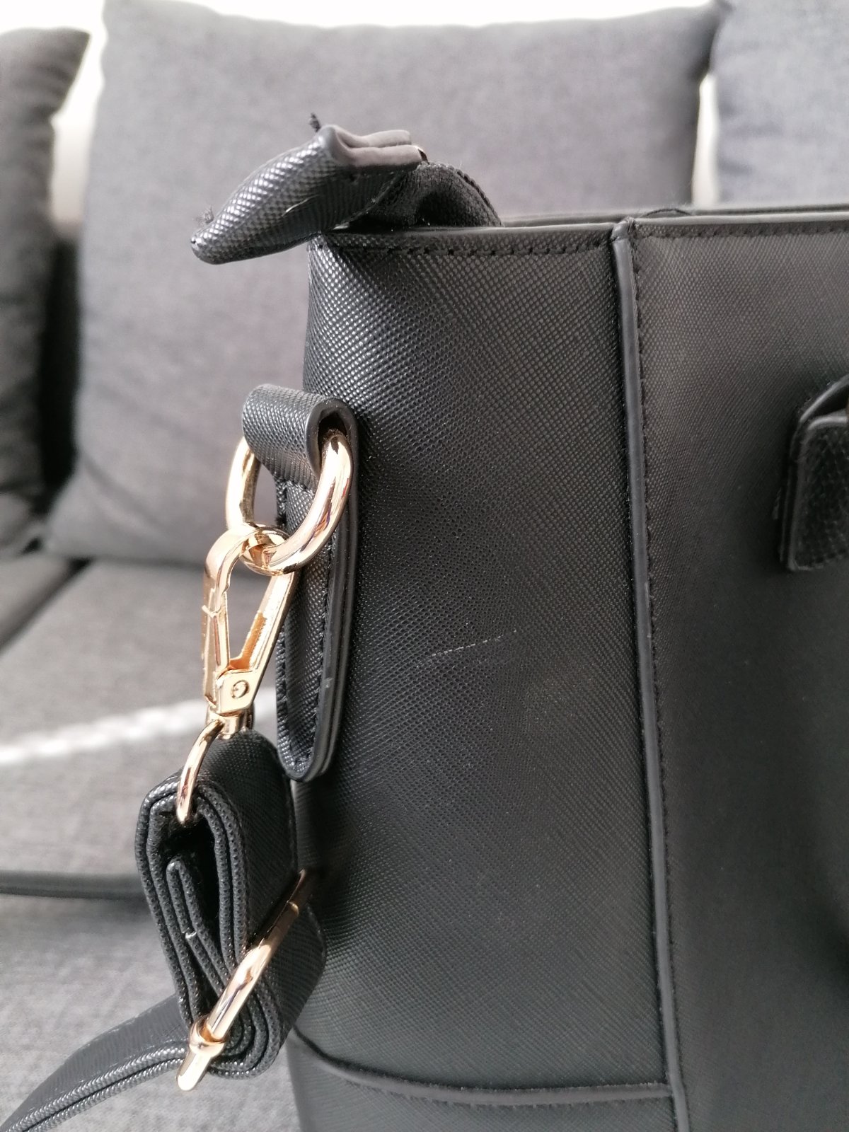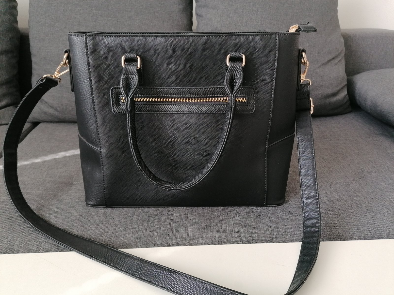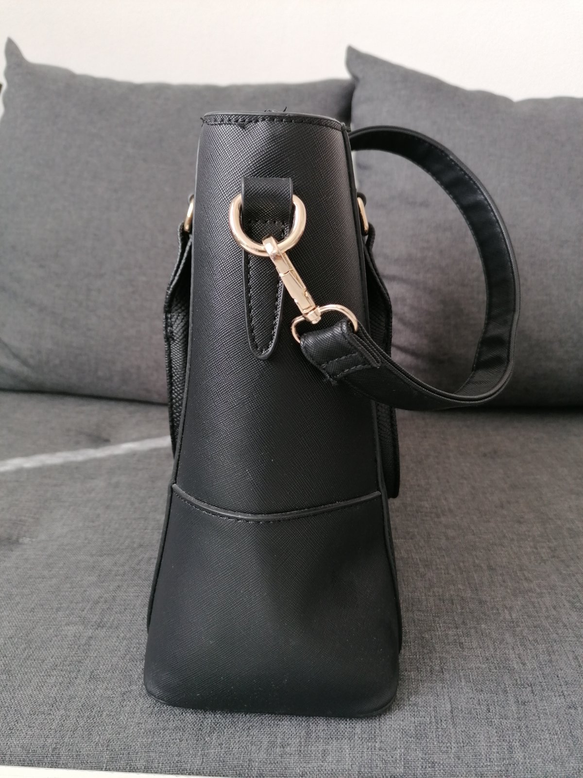 Predám damsku veľkú kabelku používanú minimálne, má drobnú chybičku - škrabanec, ktorý takmer nevidno. Rozmery 35,5x28x36cm (dĺžka spodnej časti x výška x dĺžka vrchnej časti). Pútko je nastaviteľné. Cena 20 eur plus poštovné.