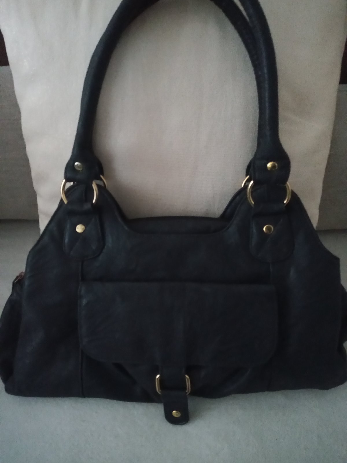 Pekná priestranná kabelka do ruky aj na rameno, málo používaná, veľmi dobrý a poużiteľný stav, jedine niektoré nity trošičku šuchnuté, inak bez chýb, dno ani ramienka neošúchané, rozmery cca 37x23x10 cm.