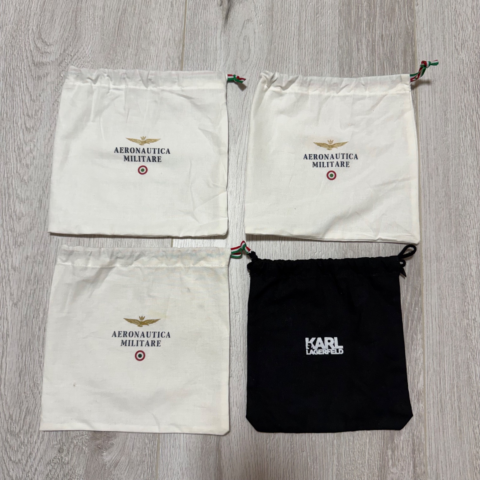 Predám malé vrecúška Aeronautica Militare (20 x 20 cm) a Karl Lagerfeld (17,5 x 18,5 cm).
