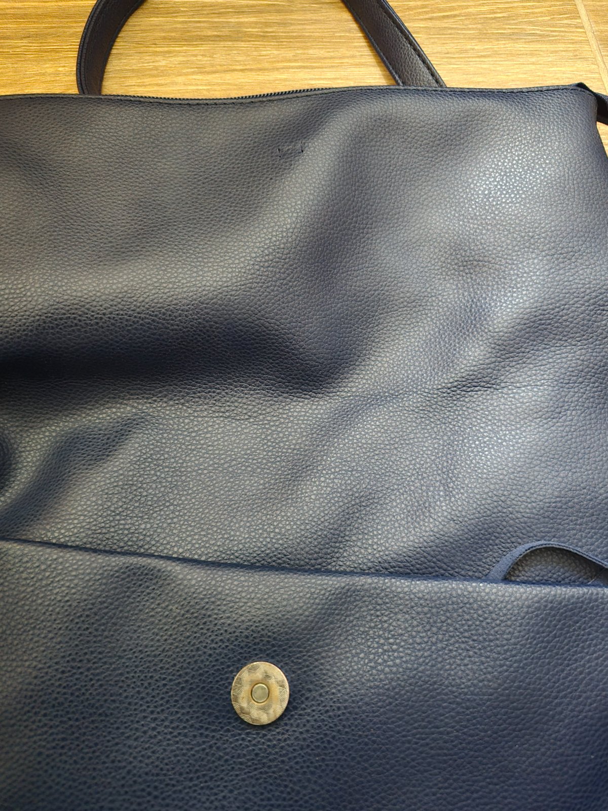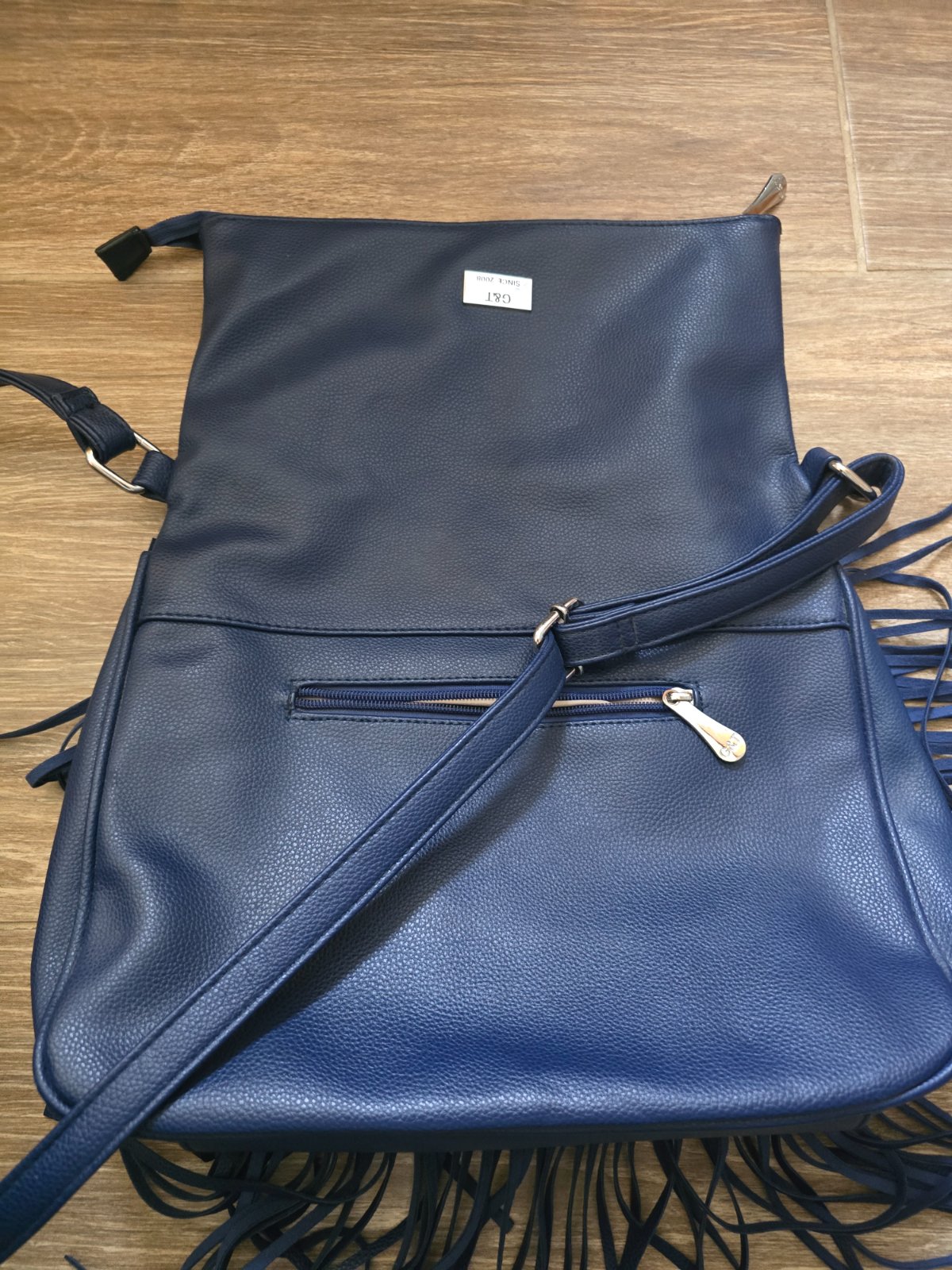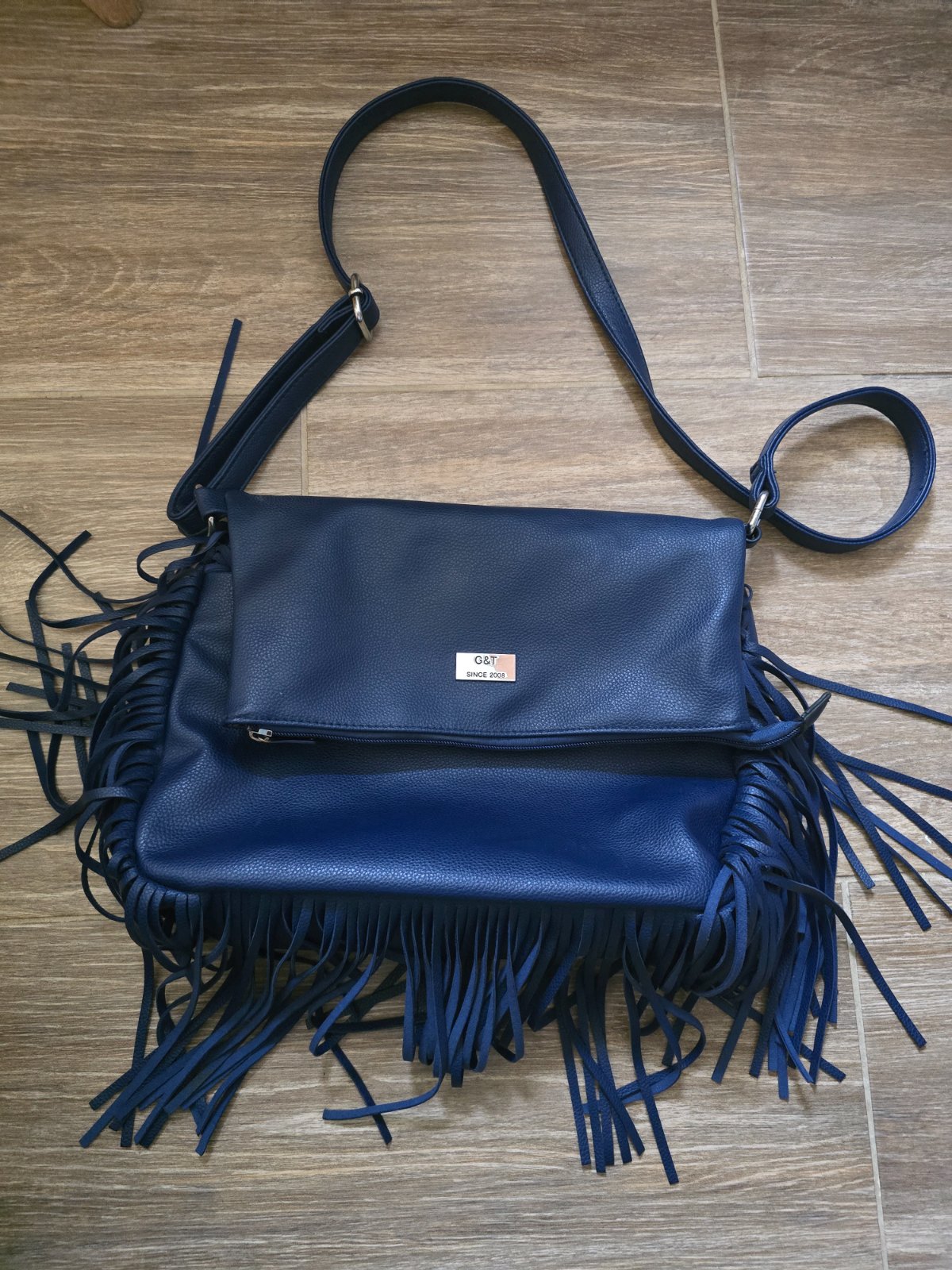Kabelka z brúsenej koze tmavomodra ma aj crosbody popruh , talianska