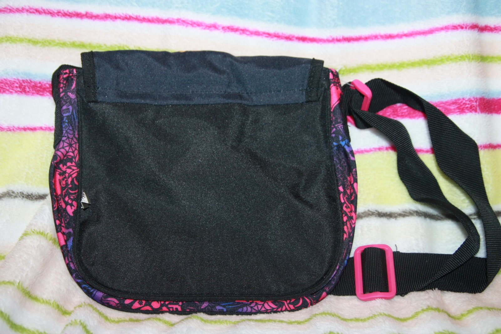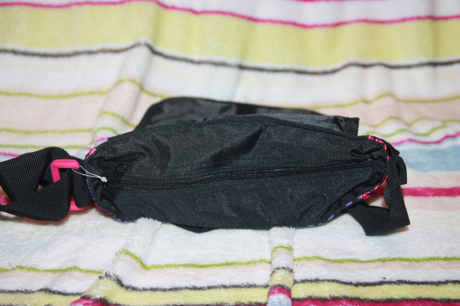 Super stav. Rozmery cca 21x20x6cm. Zapinanie na zips a suchy zips. Vnutri vrecko na mobil.