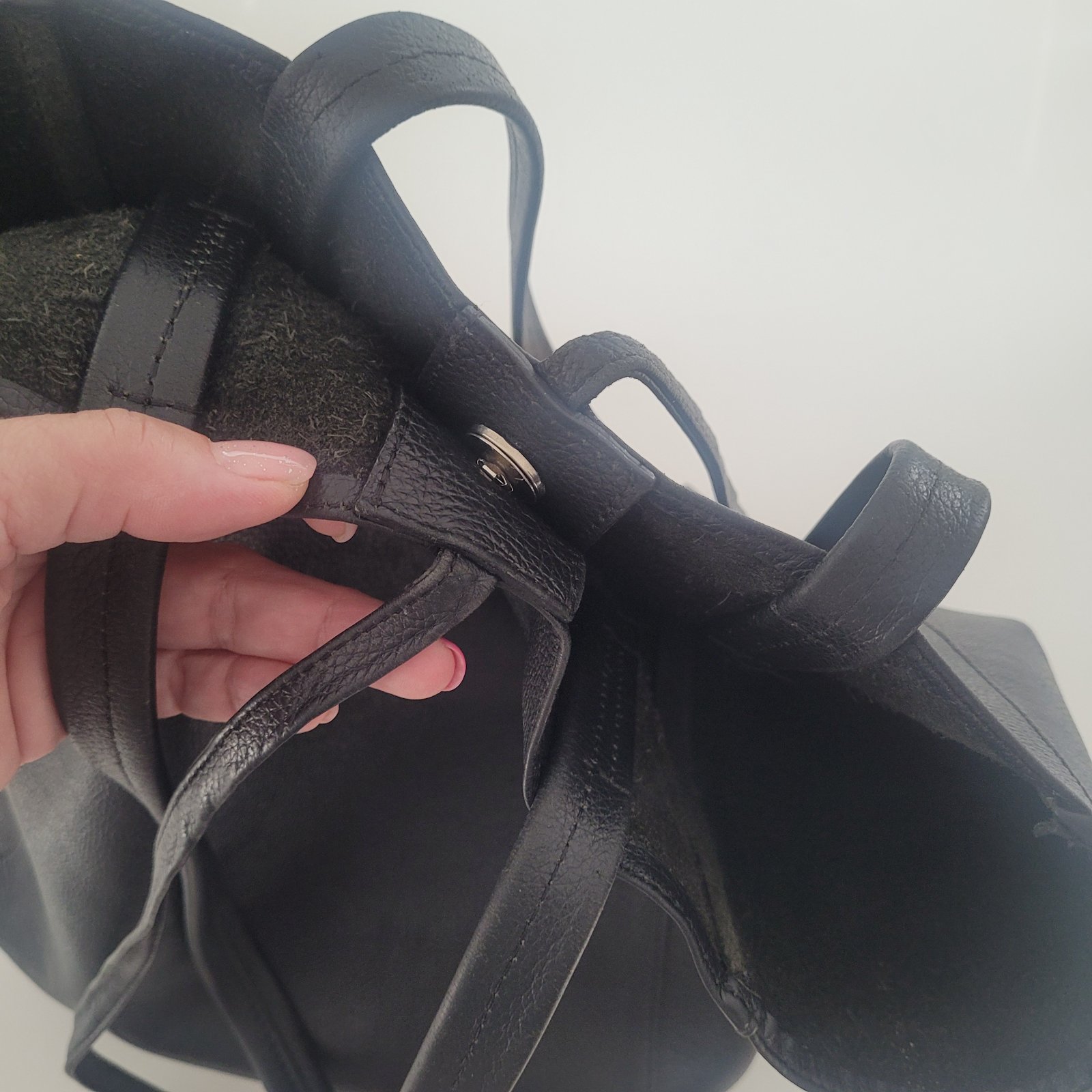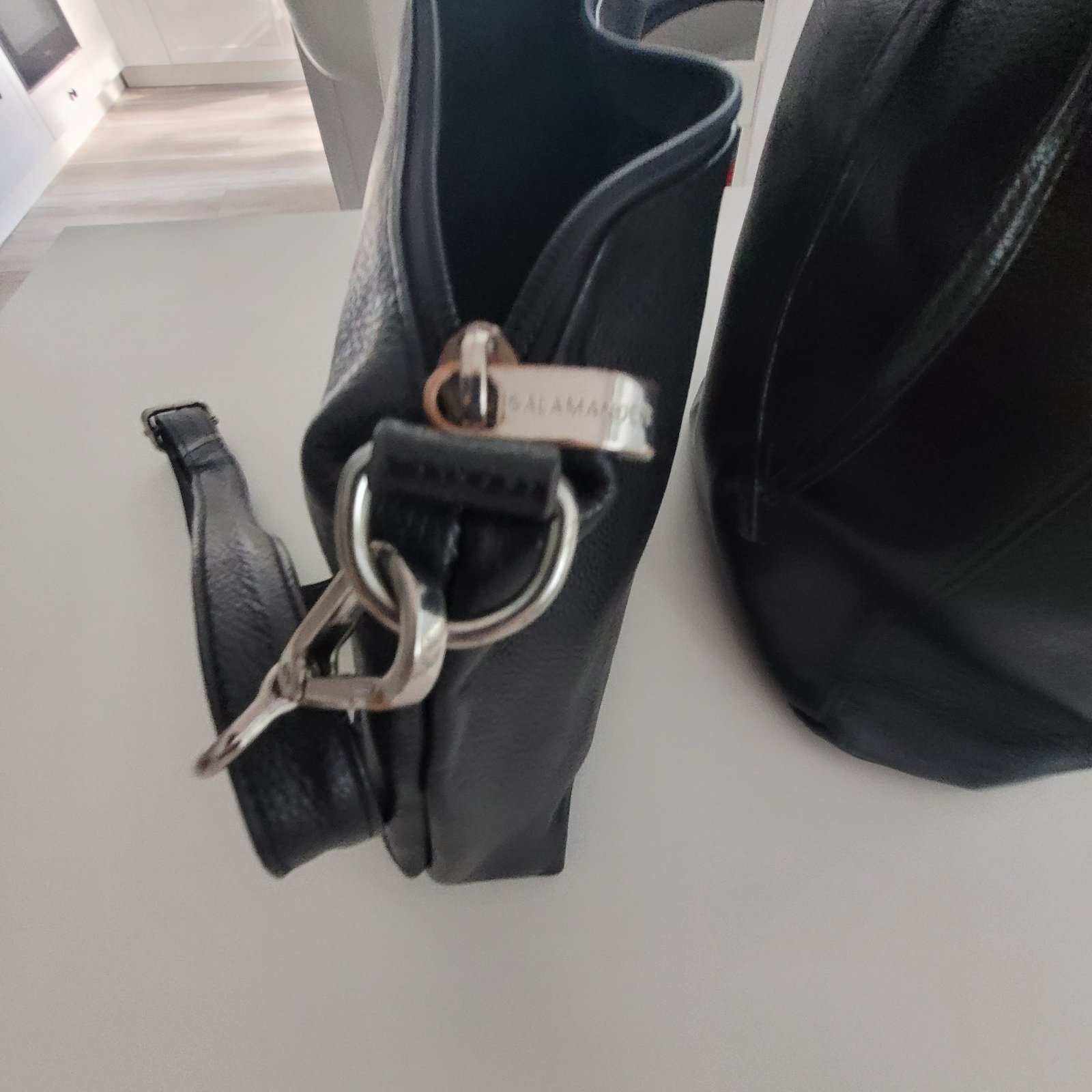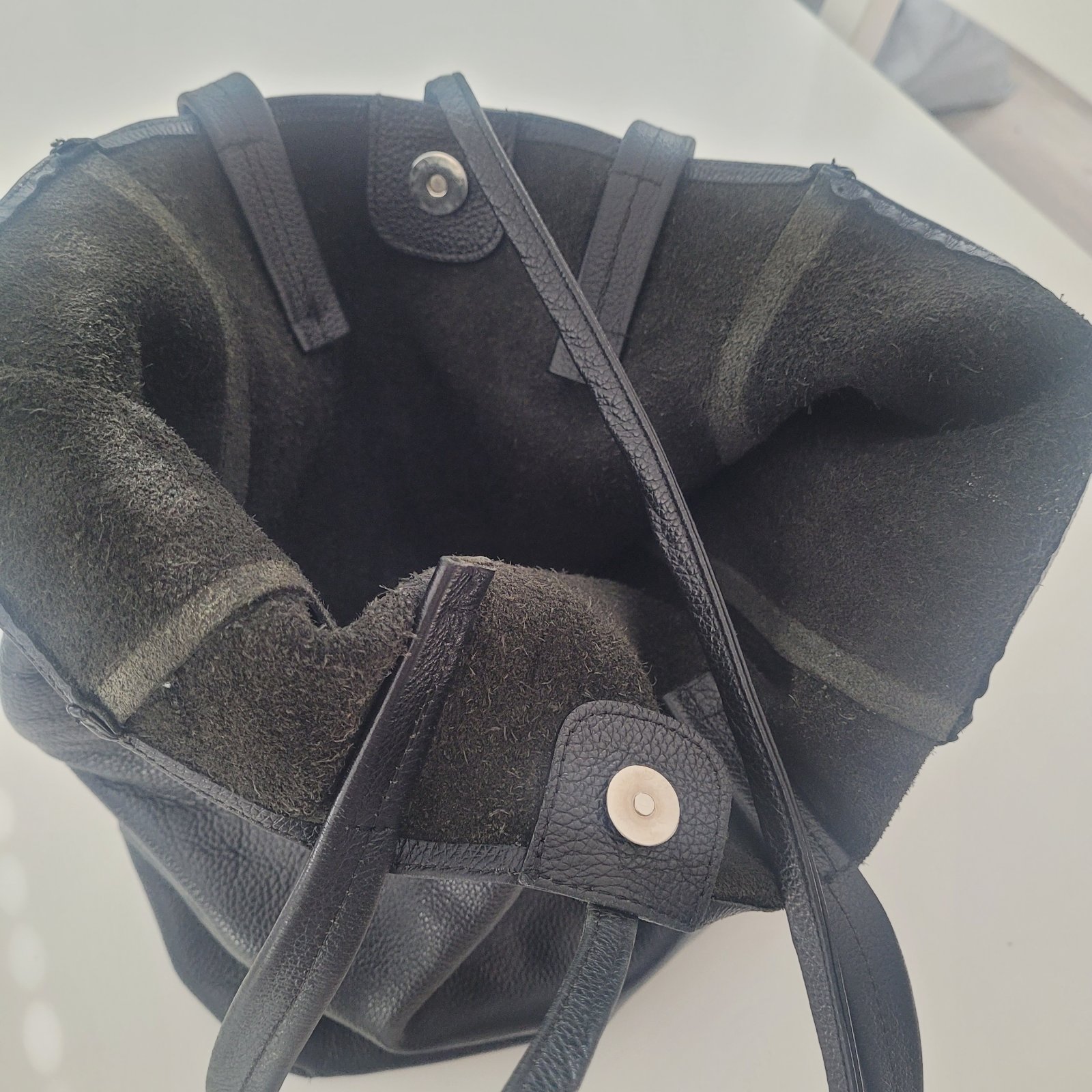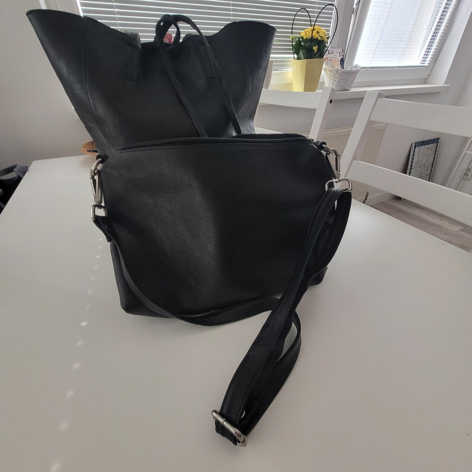 Veľmi zachovaná kožená kabelka, ako "vak", v nej je ešte tá malá taška, ktorá sa dá nosiť samostatne. Nosila som ju stále a vyzerá fantasticky, je naozaj odolná.