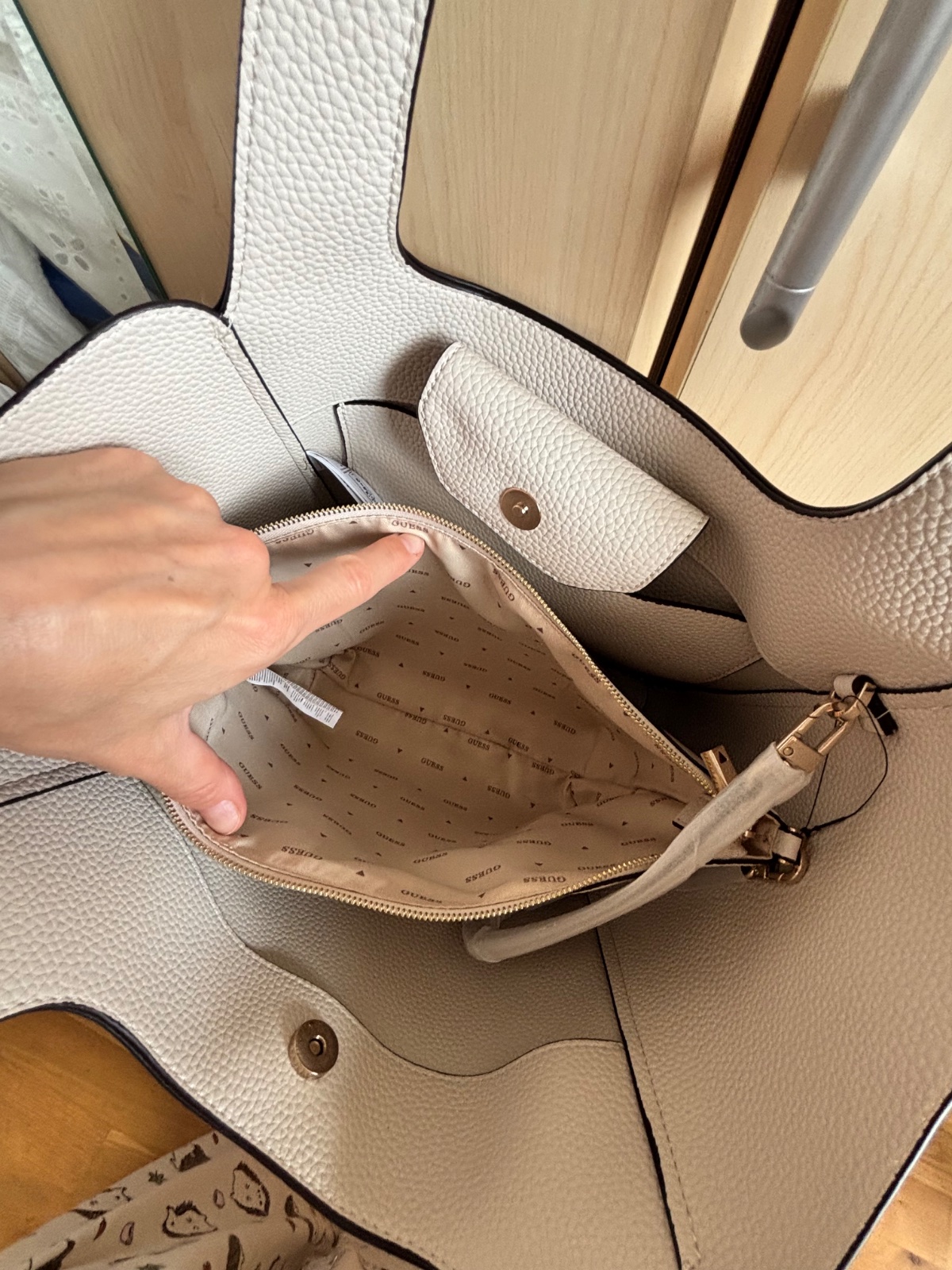 Krásna veľká kabelka Guess, raz vzatá. Farba bone. PC 155€. Osobný odber v Ba možný.