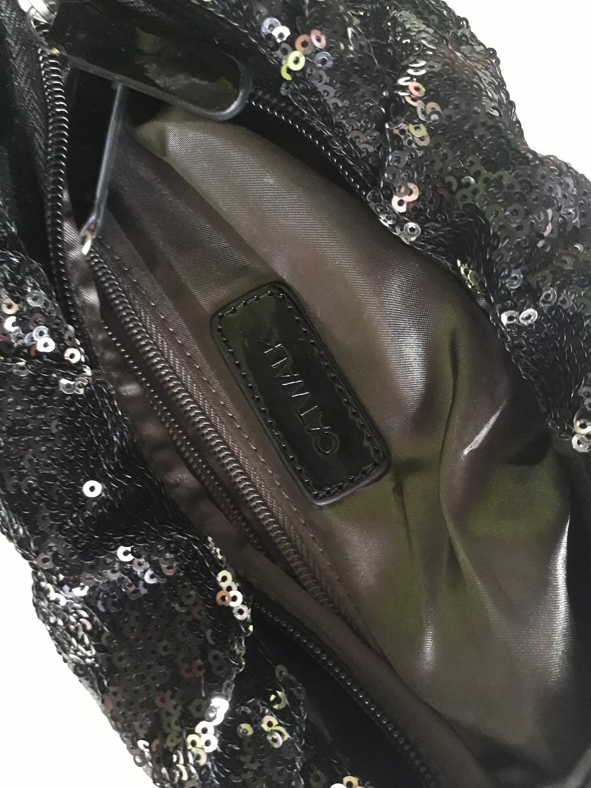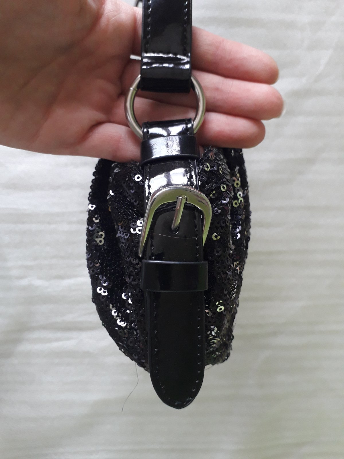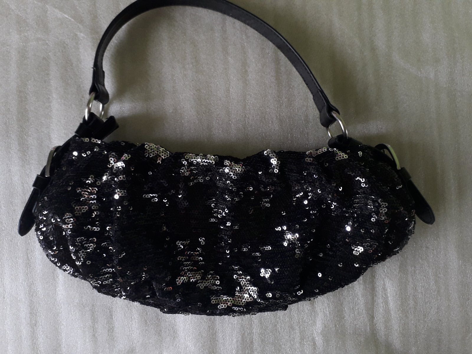 Elegantná kabelka s maličkými čiernymi flitrami, ktoré sa prevracajú na strieborné. Prevracajú sa aj pri najmenšom dotyku, takže je zakaždým pekný, lesklý a hlavne iný efekt.