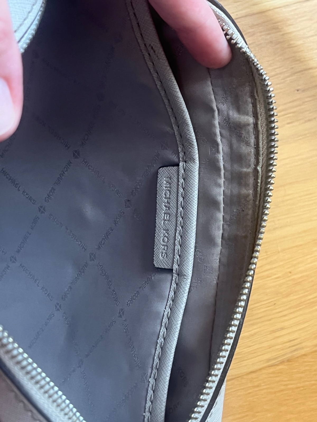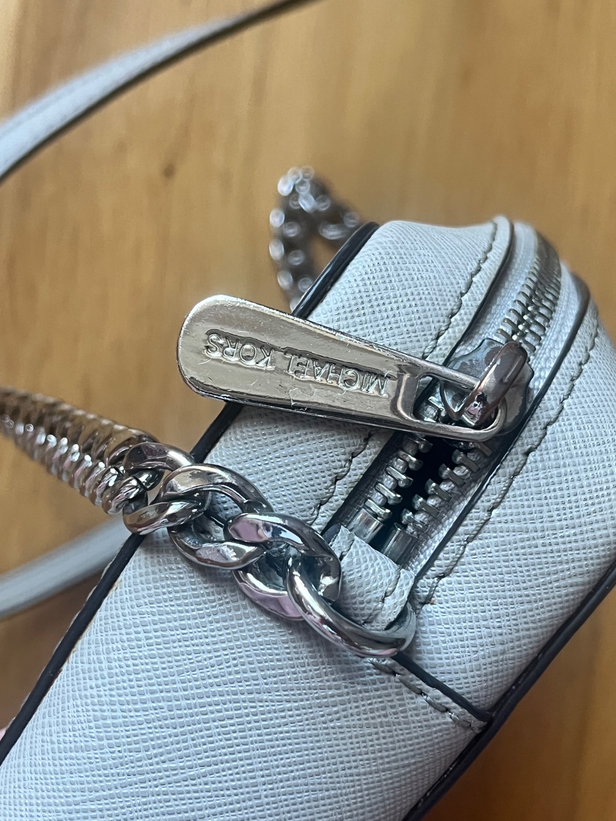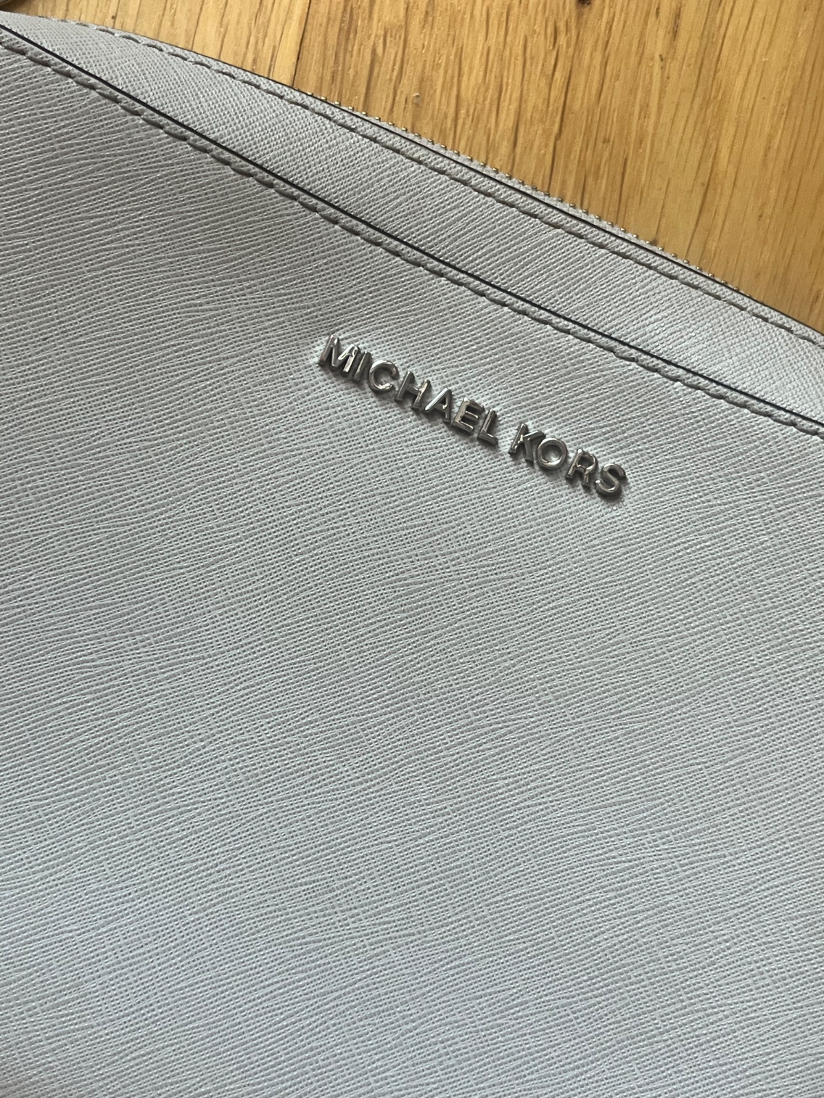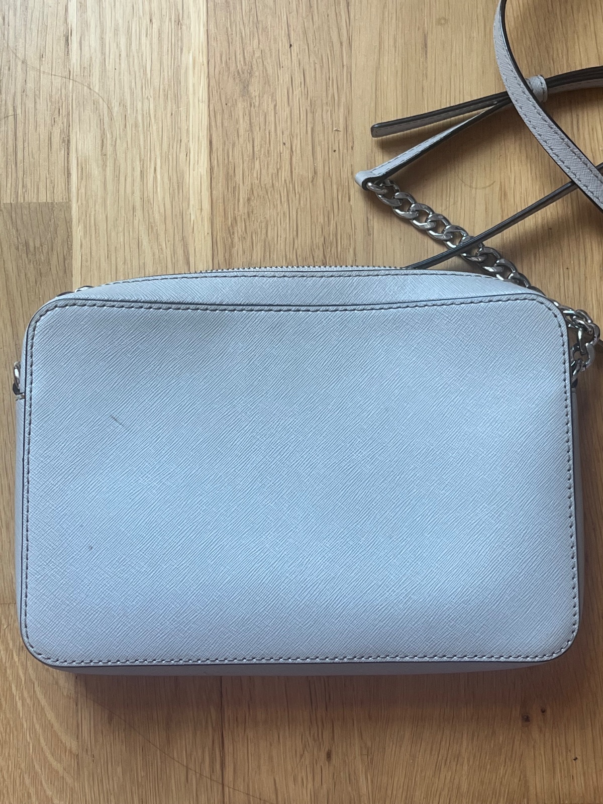 Crossbody kabelka Michael Kors, kožená, v peknom nosenom stave (vidno na kovových čatiach). Farba stone, šedá kameninová. Osobný odber možný v Ba.