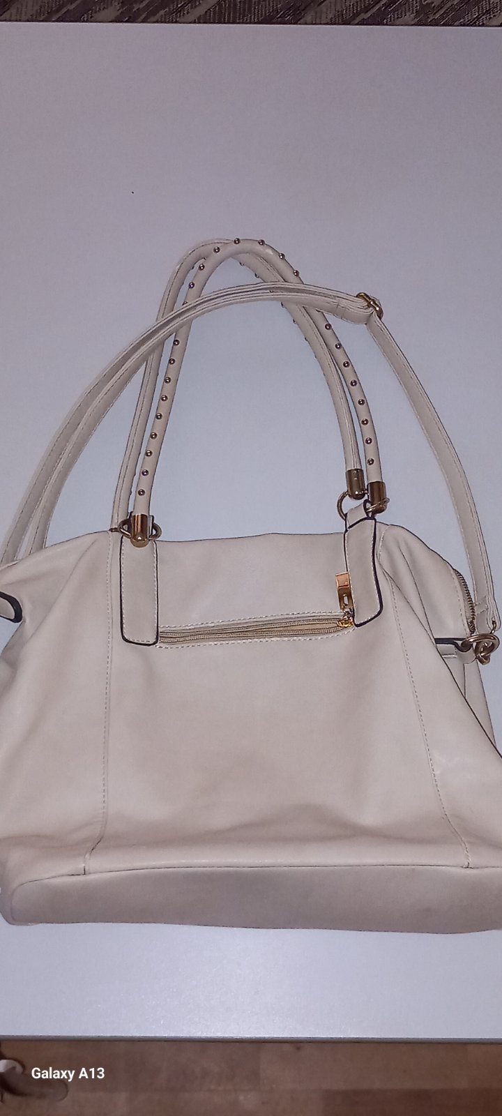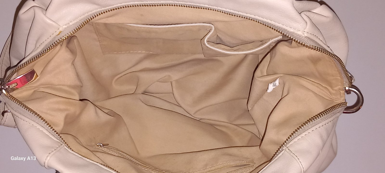 Kabelka vzdu vrecko so zipsom a vnútro podšívka a dve vrecká. Jedno dvojvrstvové a druhe na zips. Rozmery sú výška kabelky 31 cm a šírka kabelky je 41cm a výška aj s uchom je 57cm. Cena je 9 euro plus postovne