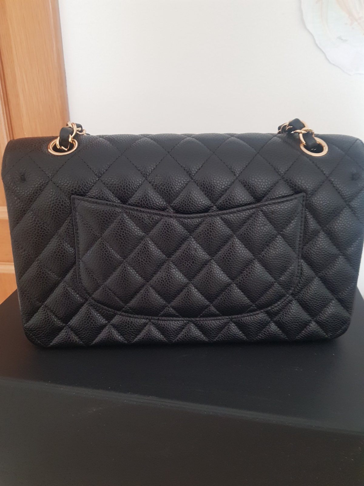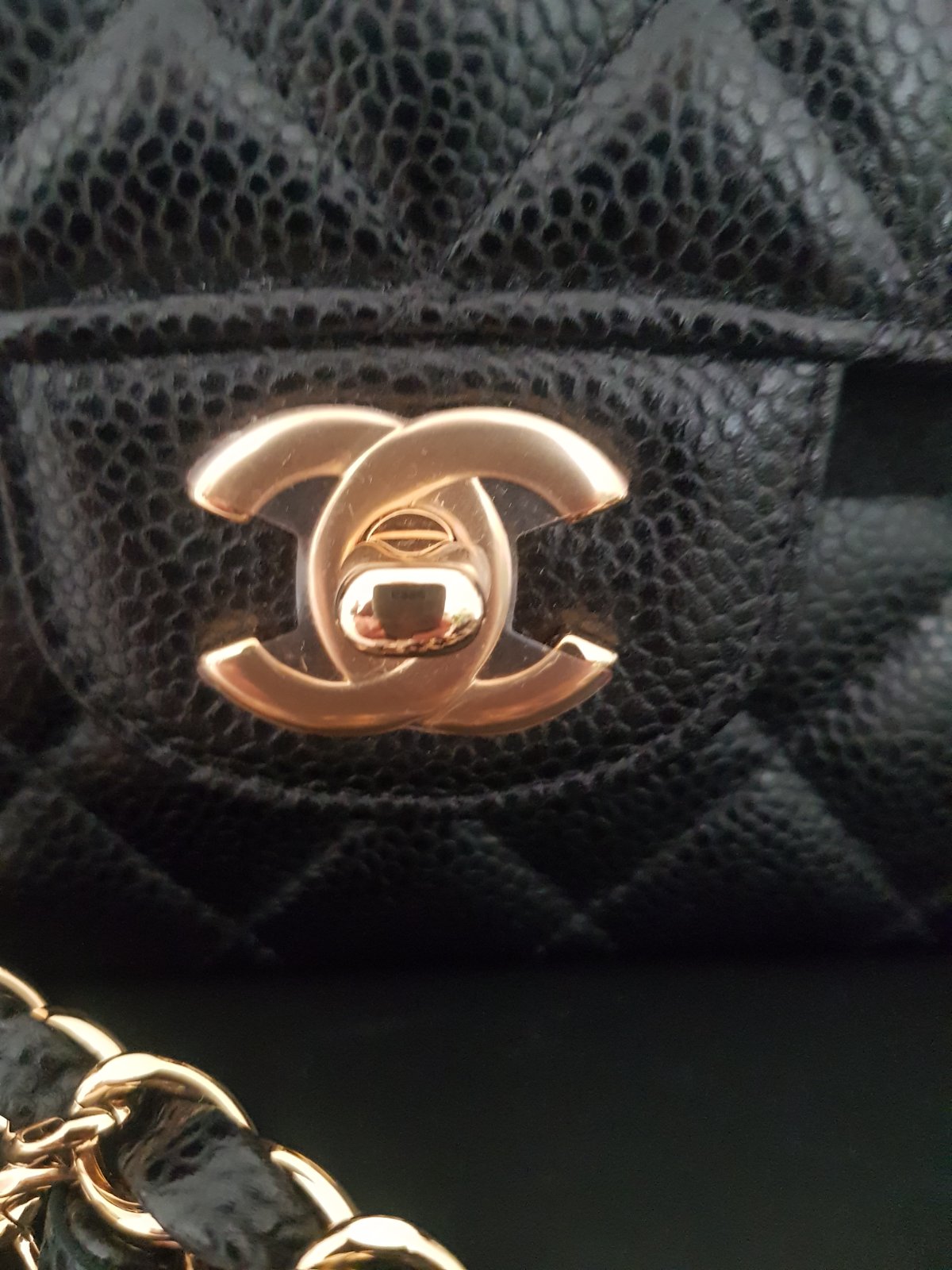 Nenosena iba skladovana kabelka v povodnom baleni vratane dokladu o kupe.Prevedenie caviar koza so zlatym HW.